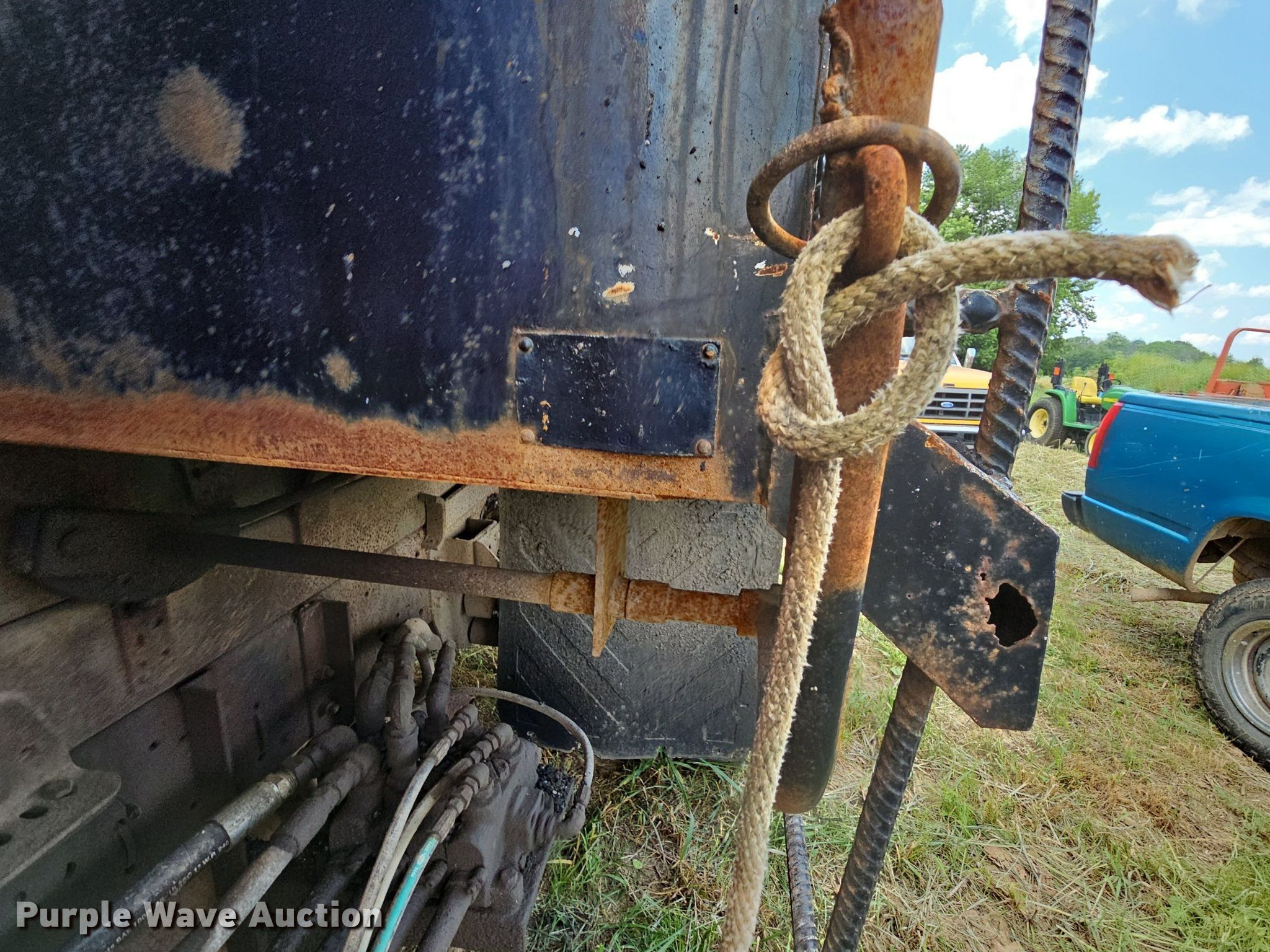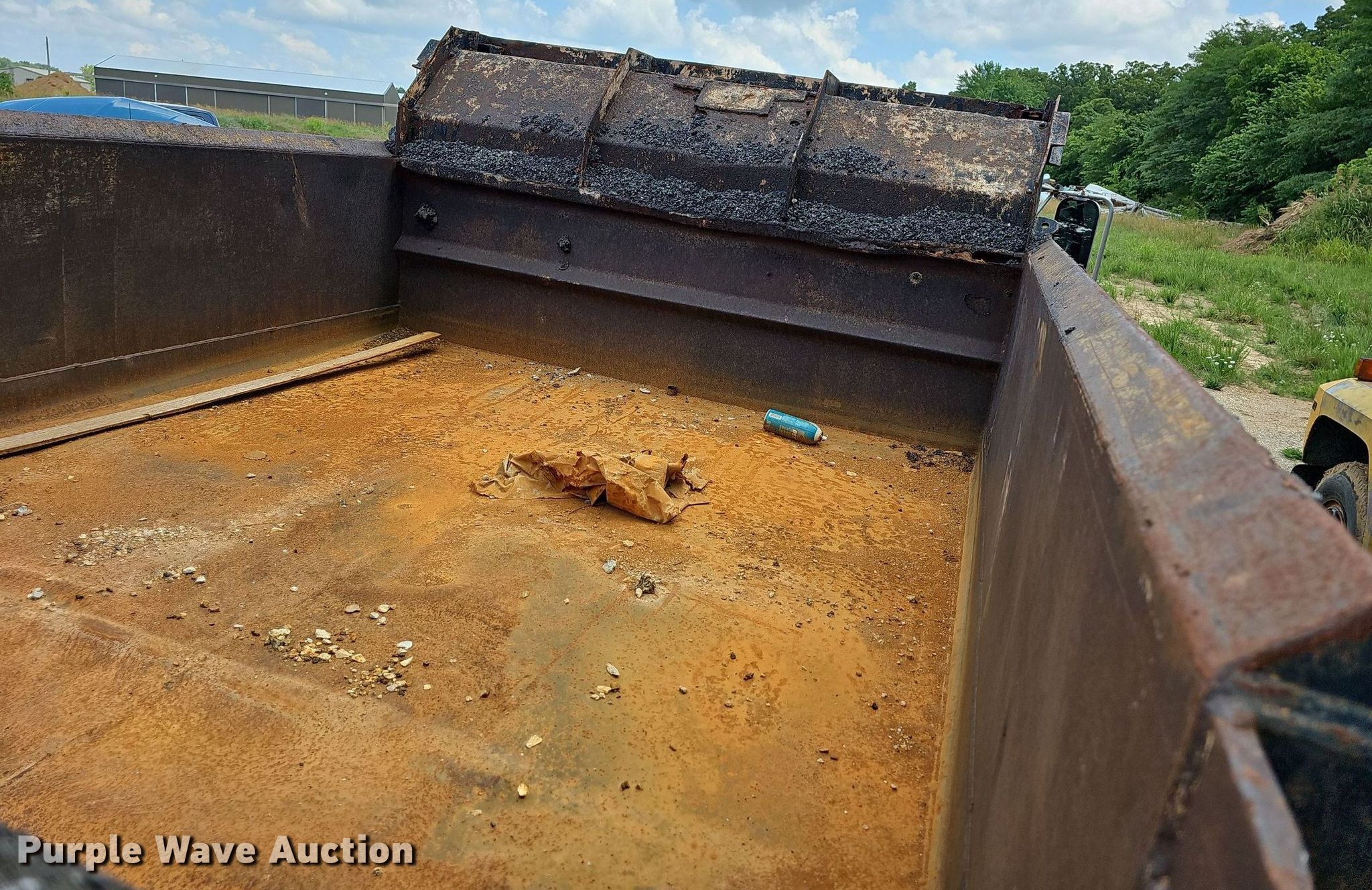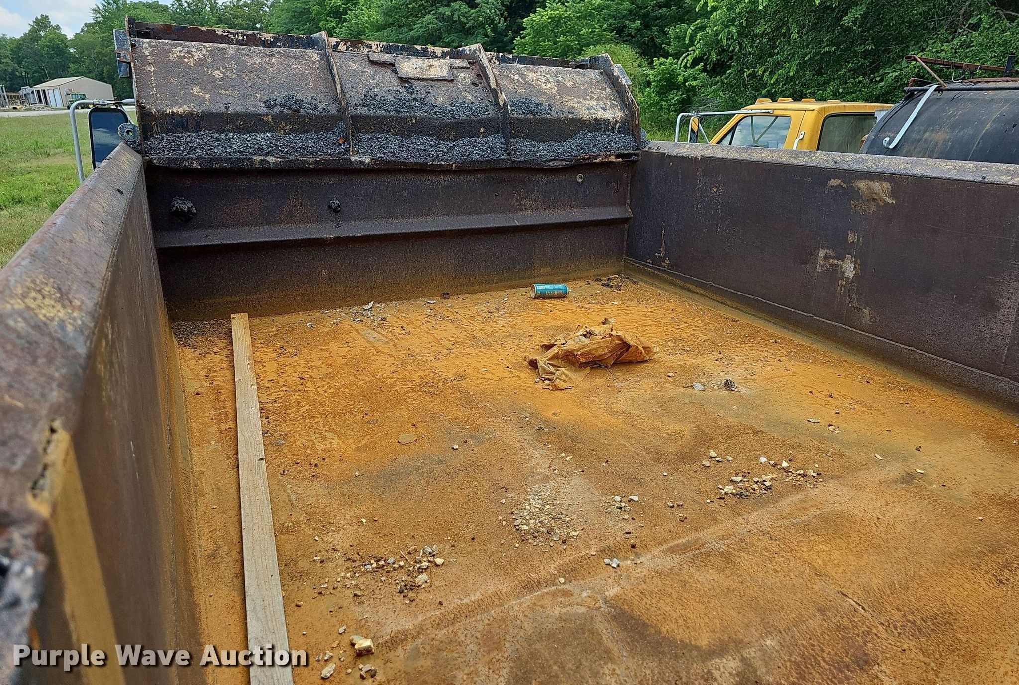 1990 Ford F800 dump truck. Miles: 117,258 on odometer, VIN: 1FDPK84A9LVA32541. Engine Displacement: 7.8L, Cylinders: 6, Fuel type: Diesel. Transmission Automatic. Chassis Axles: Single, Suspension: Spring, Brakes: Air, PTO, GVWR: 27,000 lbs, Wheelbase: 141". Interior Heat. Features Dump bed 9' L x 8' W, Bed type: Steel, Ram: Single , End gate: Manual. Tires Front: 11R22.5 , Rear: 10R22.5. Notes Non-operational unit. Missouri title. Title distribution may be delayed up to 14 days from verification of funds. City of Willow Springs. 900 West Main Street. Willow Springs, MO 65793
