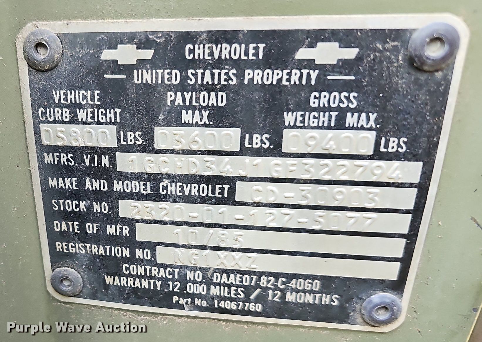 Purple Wave is selling a used 3/4 or 1 Ton Pickup or Van in Missouri. This item is a 1986 Chevrolet D30 pickup truck with the following: Miles: 58,184 on odometer, VIN: 1GCHD34J1GF322794