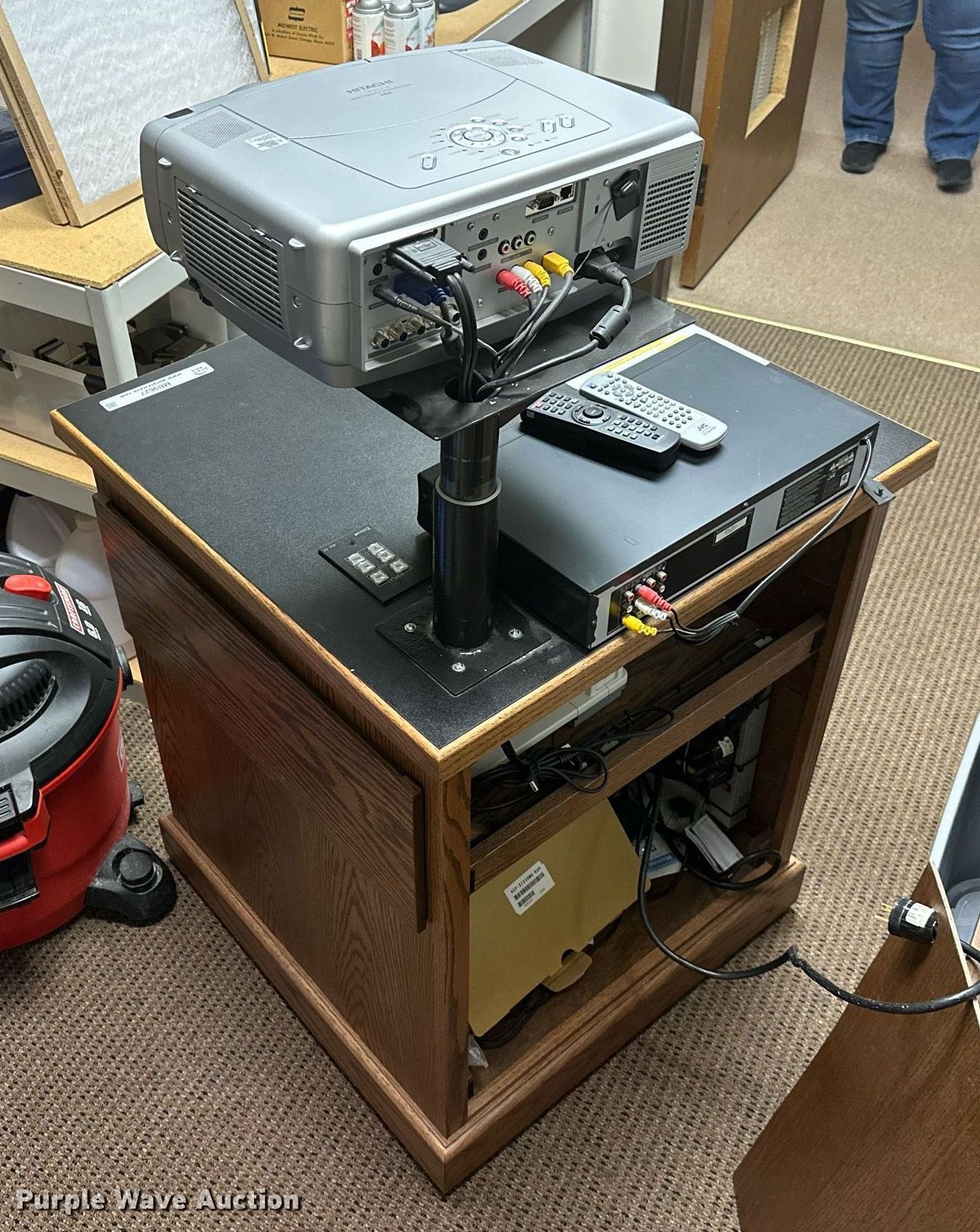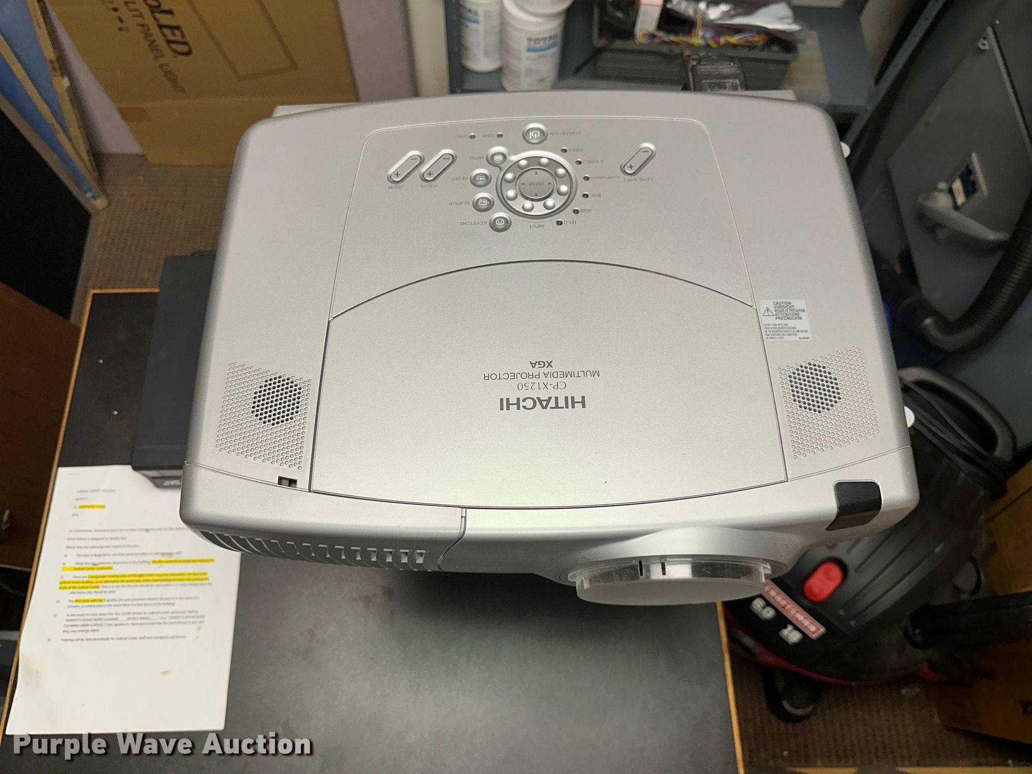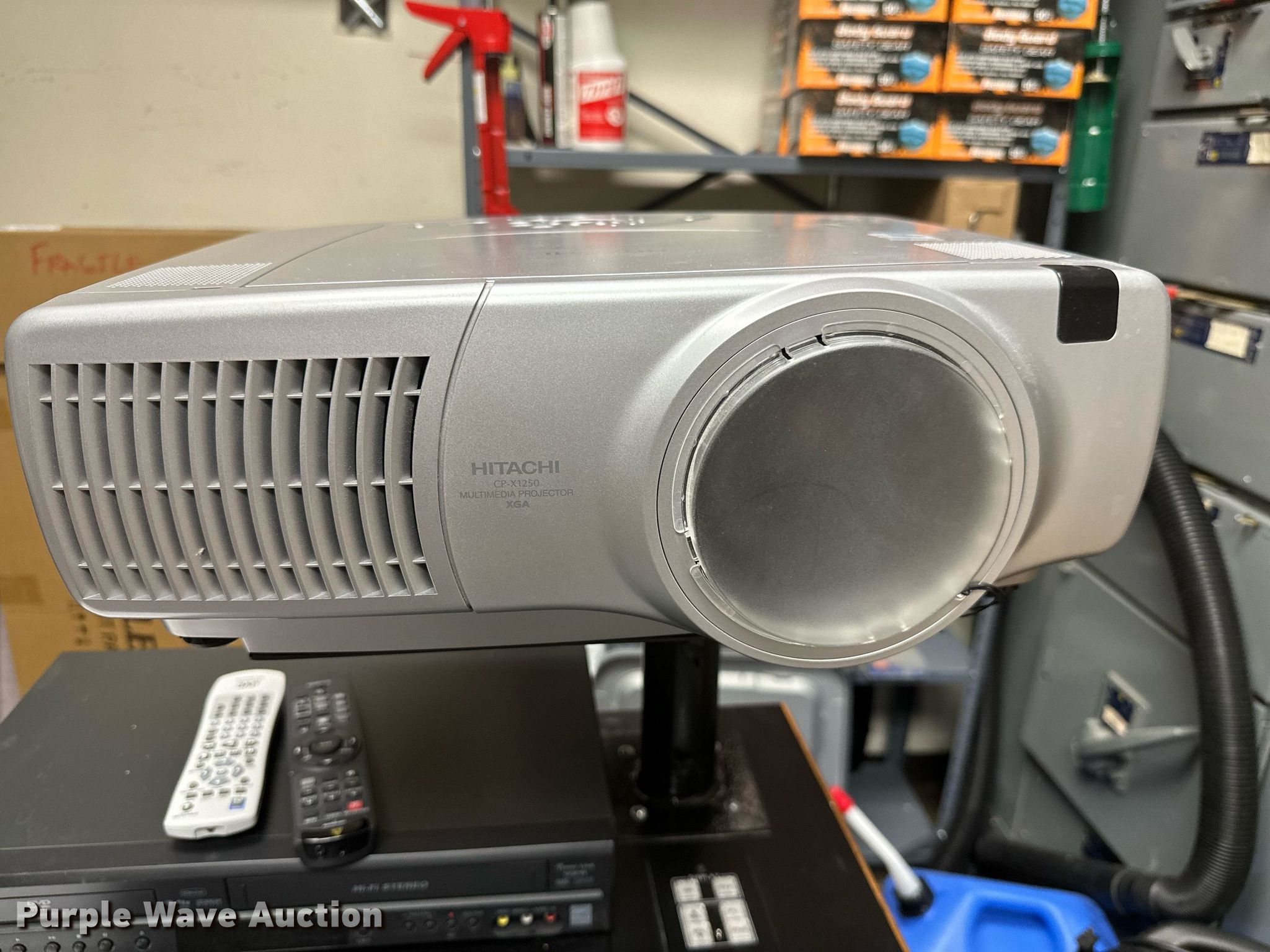 Purple Wave is selling a used Electronics in Kansas. This item is a Electronics with the following: Hitachi CP-1250 multimedia projector, JVC DVD/VCR combo player, IBM typewriter, Overhead projector