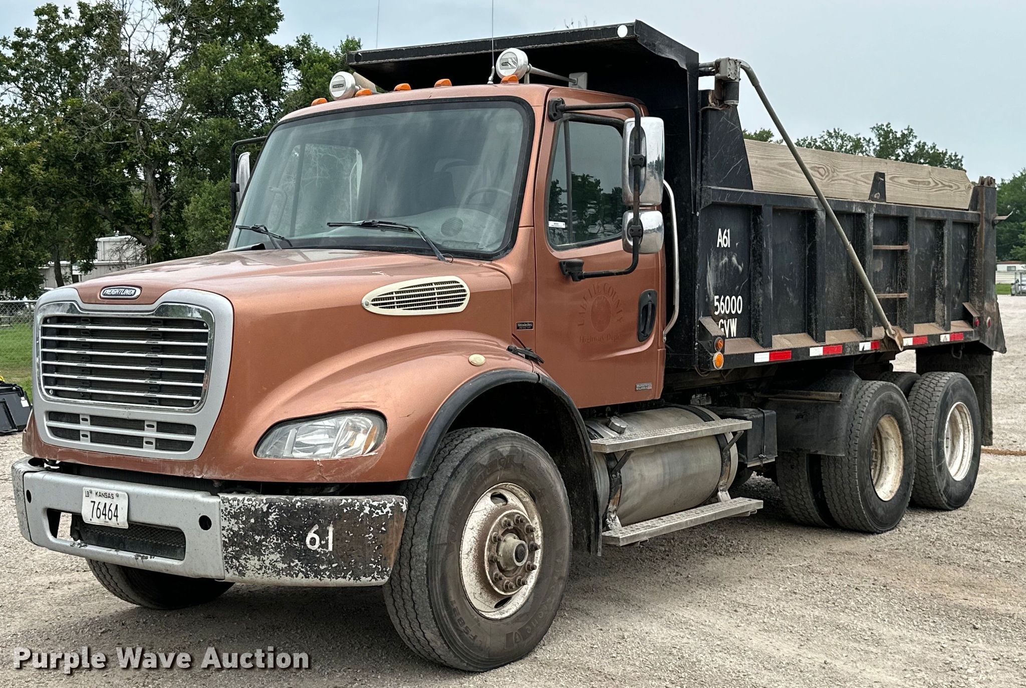 Purple Wave is selling a used Construction Dump Truck in Kansas. This item is a 2011 Freightliner Business Class M2 dump truck with the following: Miles: 402,103 on odometer, VIN: 1FVHC5CV1BDAW2461