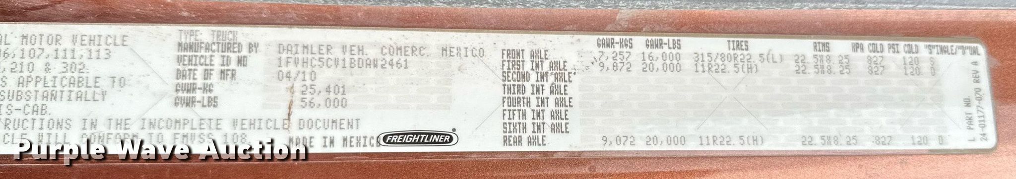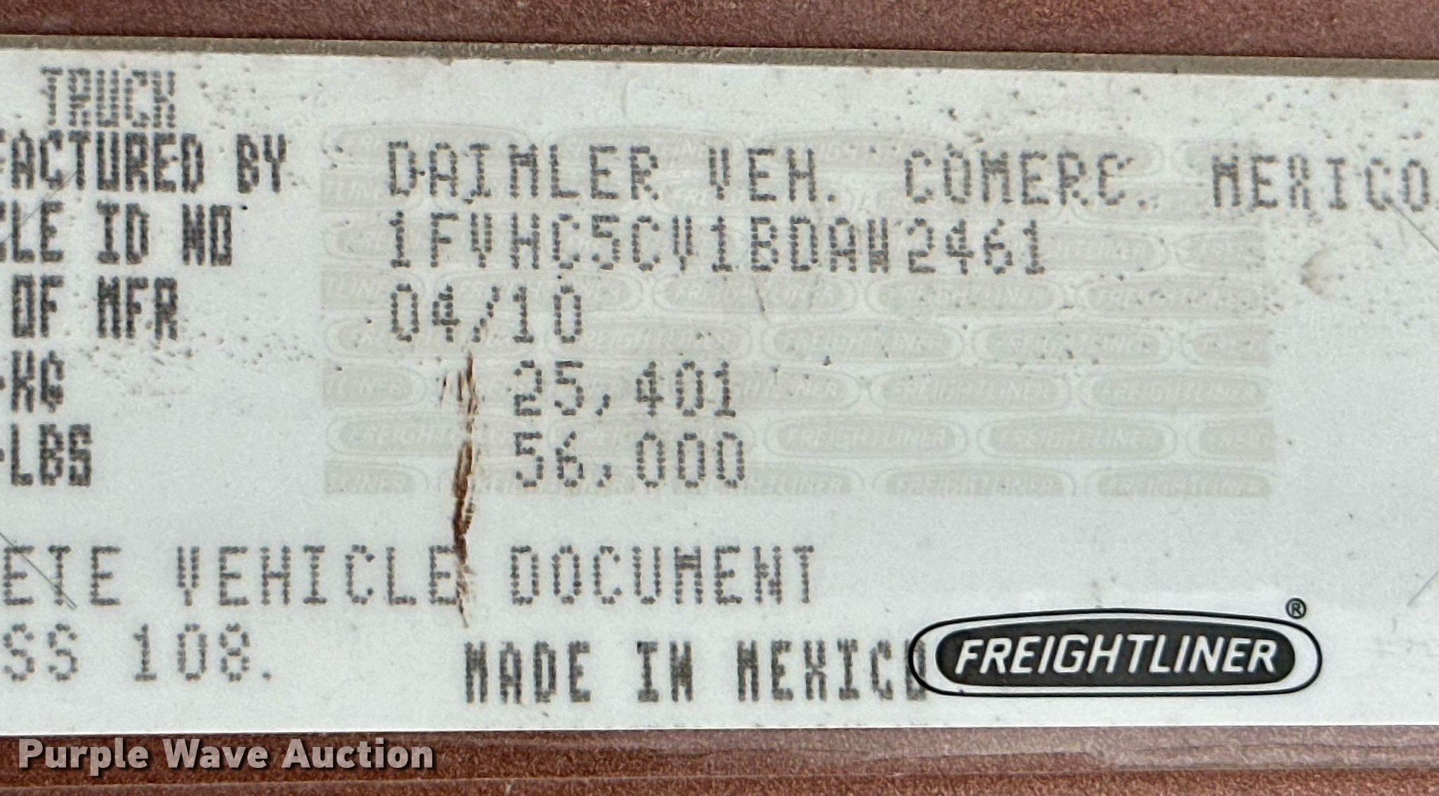 - VIN: 1FVHC5CV1BDAW2461
