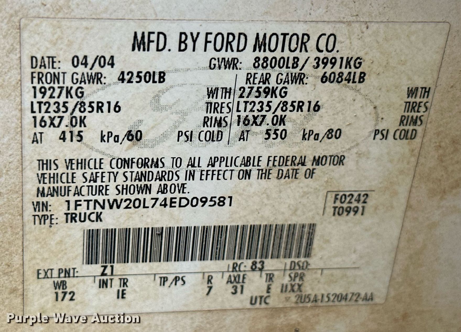 Purple Wave is selling a used 3/4 or 1 Ton Pickup or Van in Kansas. This item is a 2004 Ford F250 Super Duty Crew Cab flatbed pickup truck with the following: Miles: 93,737 on odometer, VIN: 1FTNW20L74ED09581
