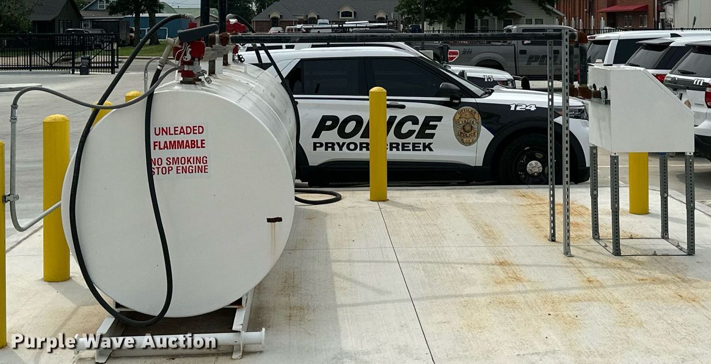Hall Tank Co. fuel tank. 13'L x 48" diameter, Capacity: 1,200 gallons, Compartments: 2, (2) Fill-Rite pumps GPM: 35, Relief valves: 2 Diameter: 1 5/8". Pryor Fire Department. 833 S Elliott St. Pryor, OK 74361