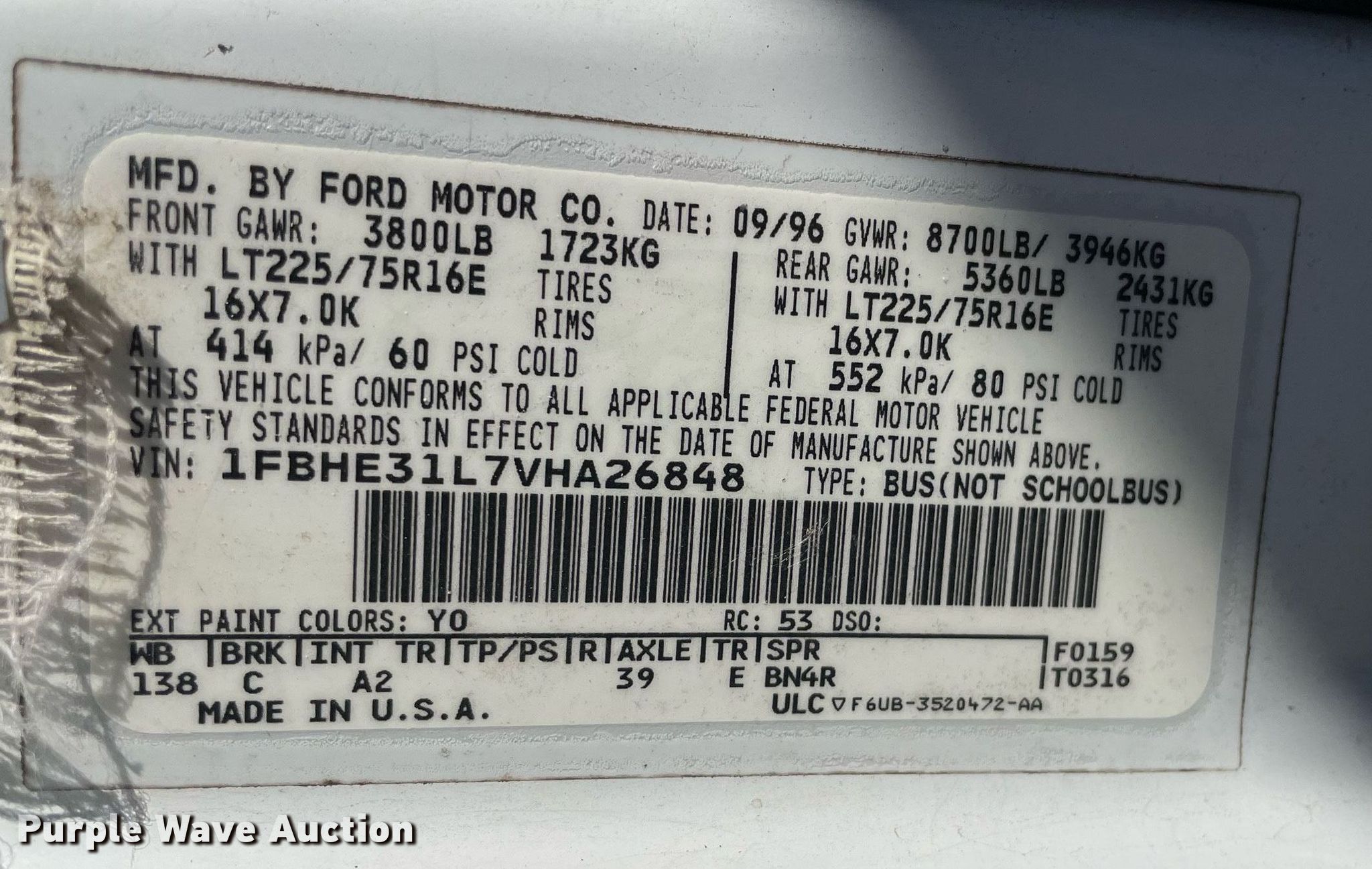 Purple Wave is selling a used Passenger Vehicle in Kansas. This item is a 1997 Ford Club Wagon van with the following: Miles: 149,251 on odometer, VIN: 1FBHE31L7VHA26848, Unit #: 44735