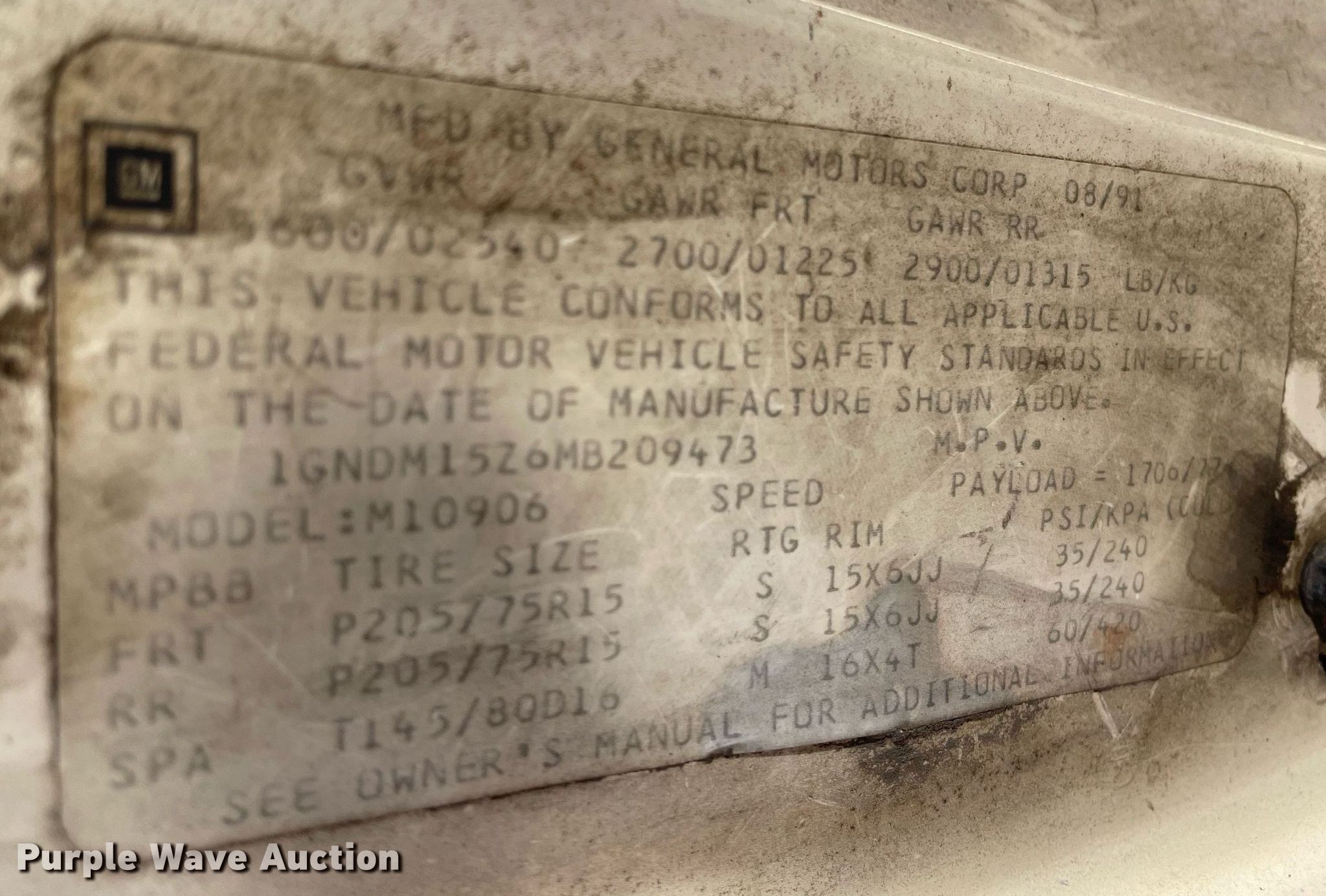 Purple Wave is selling a used 1/2 Ton Pickup or Van in Kansas. This item is a 1991 Chevrolet Astro van with the following: Miles: 101,938 on odometer, VIN: 1GNDM15Z6MB209473, Unit #: 41581