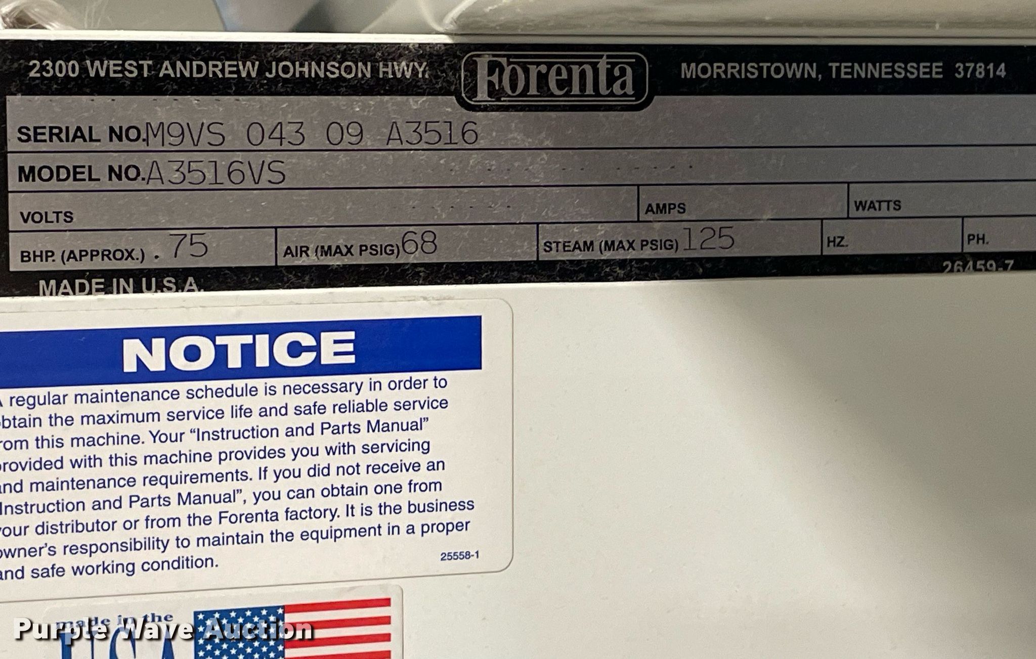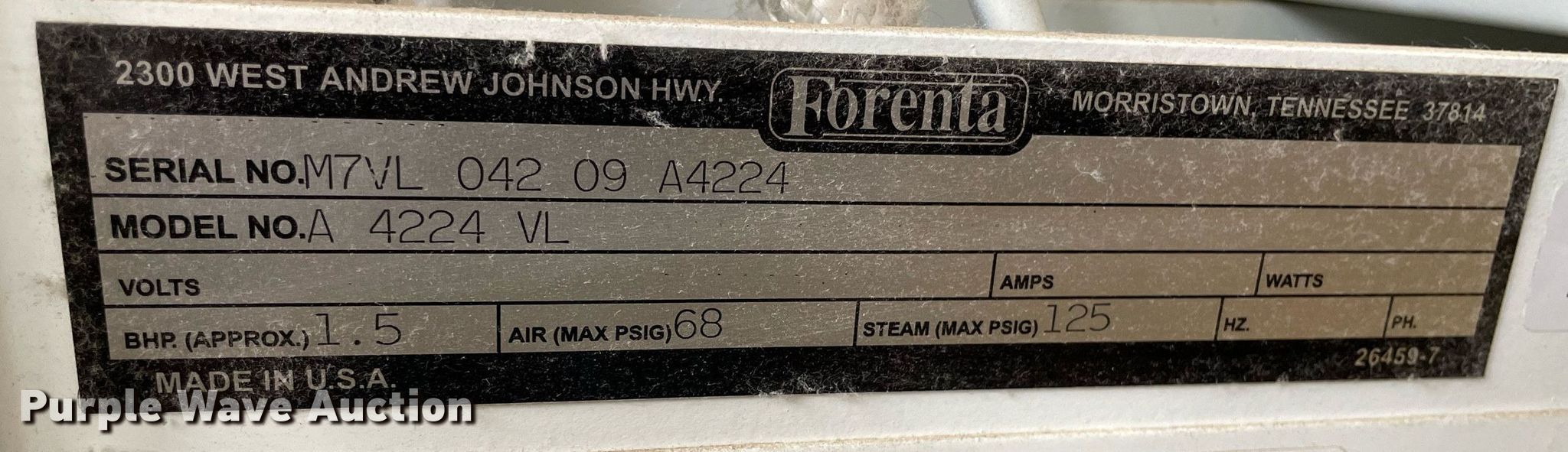 (2) Forenta steam press tables. Model A3516VS, Model A 4224 VL, Max air PSIG: 68, Max steam PSIG: 125. Larned State Hospital. 1301 KS-264. Larned, KS 67550