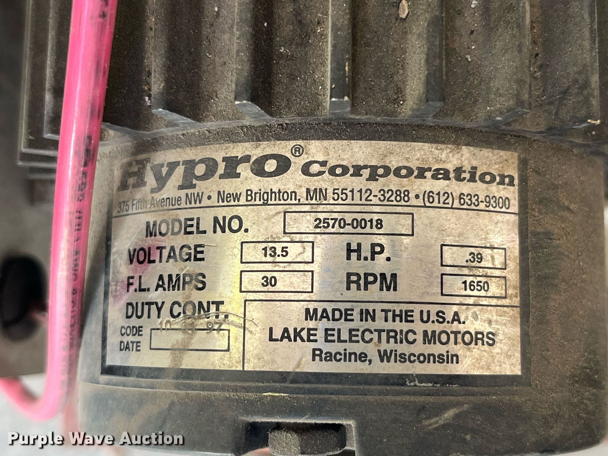 FoamPro S105-1600/1.5 foam injector. Serial: F7272-10003. Electric Motor Hypro 2570-0018, HP: 0.39, Volts: 13.5. Features RPM: 1,650. Clarksdale Fire Dept.. 6975 SW Hwy 6. Clarksdale, MO 64430