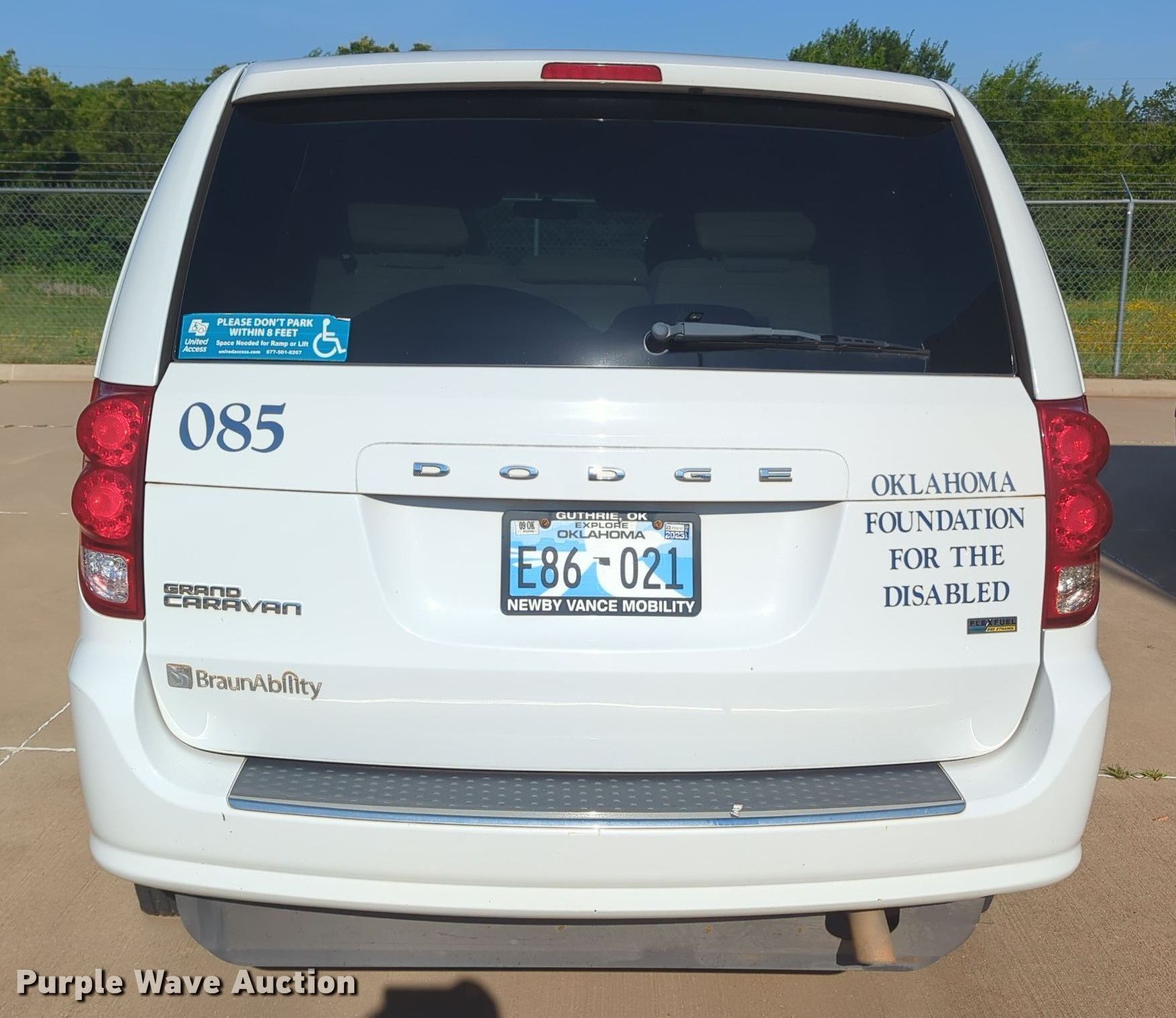 Purple Wave is selling a used Passenger Vehicle in Oklahoma. This item is a 2015 Dodge Grand Caravan handicap accessible van with the following: Miles: 121,002 on odometer, VIN: 2C7WDGBG4FR703085, Unit #: 085