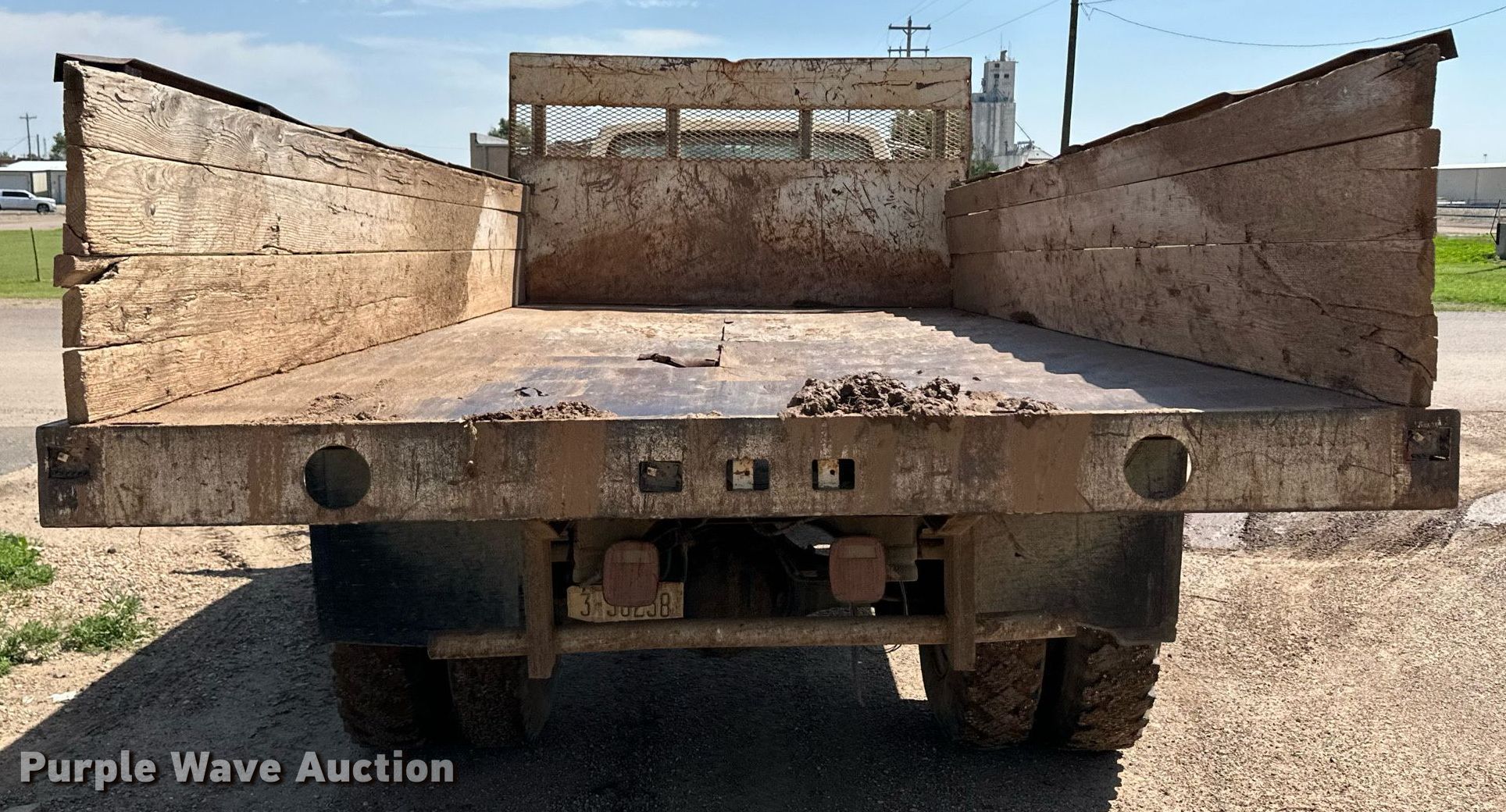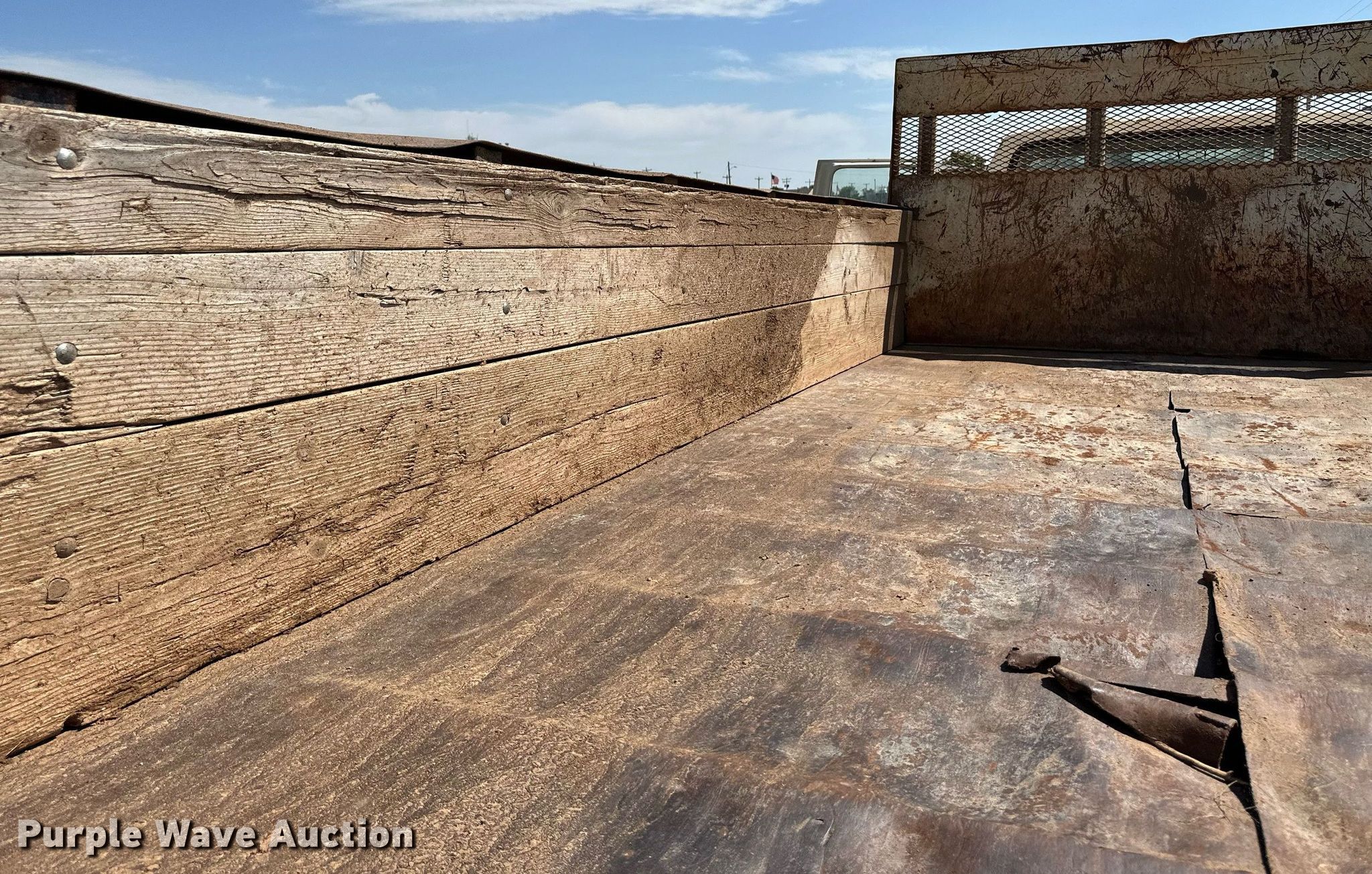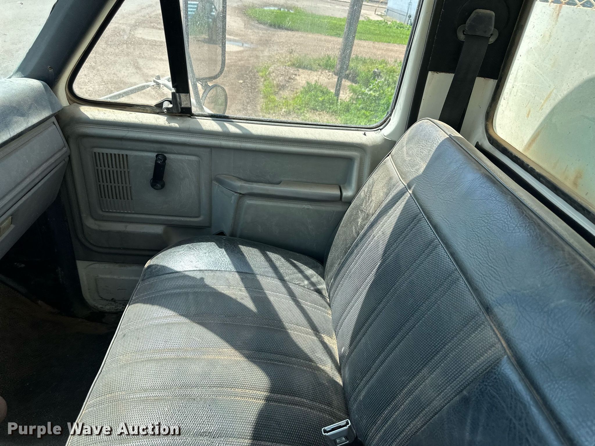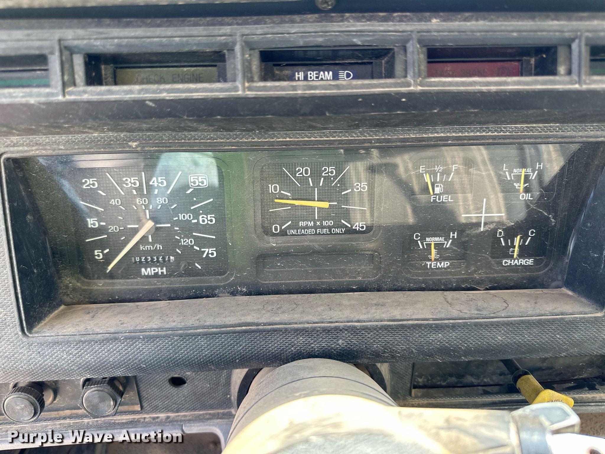 1995 Ford F700 dump flatbed truck. Miles: 23,327 on odometer, VIN: 1FDNF70J6SVA44009. Engine Displacement: 7.0L, Cylinders: 8, Fuel type: Gas. Transmission Manual, Speed: 5, plus 2. Chassis Axles: Single, Suspension: Spring, Brakes: Hydraulic, PTO, GVWR: 23,160 lbs. Interior Heat. Features Dump flatbed 16' 4" L x 96" W, Removable sides, Ram: Single. Tires Front: 9.00-20. Oklahoma title. City of Hooker, OK. 201 Ireland Street. Hooker, OK 73945