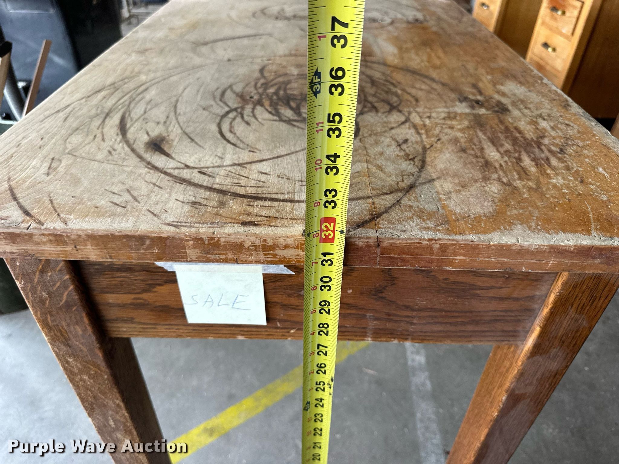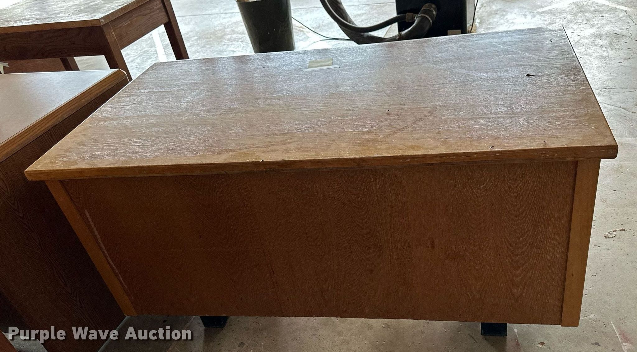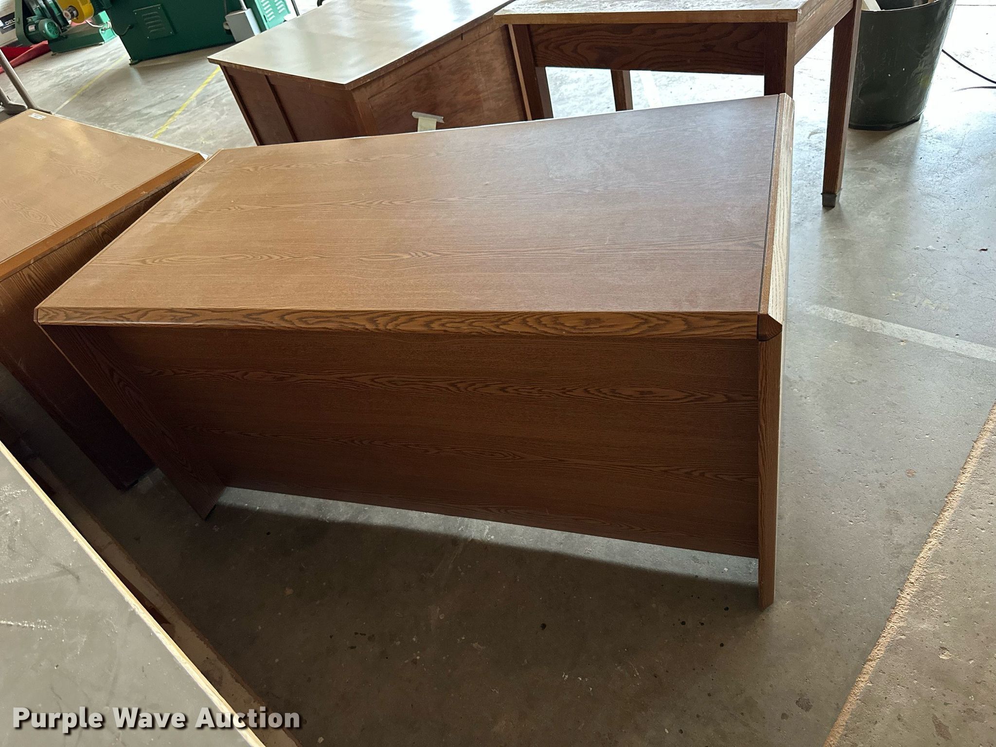 (5) desks. (2) 60" L x 29" W x 30" H, 54" L x 28" W x 28" H , 42" L x 30" W x 29" H , 36" L x 24" W x 32" H. Decatur Community Jr/Sr High School. 605 E Commercial St. Oberlin, KS 67749