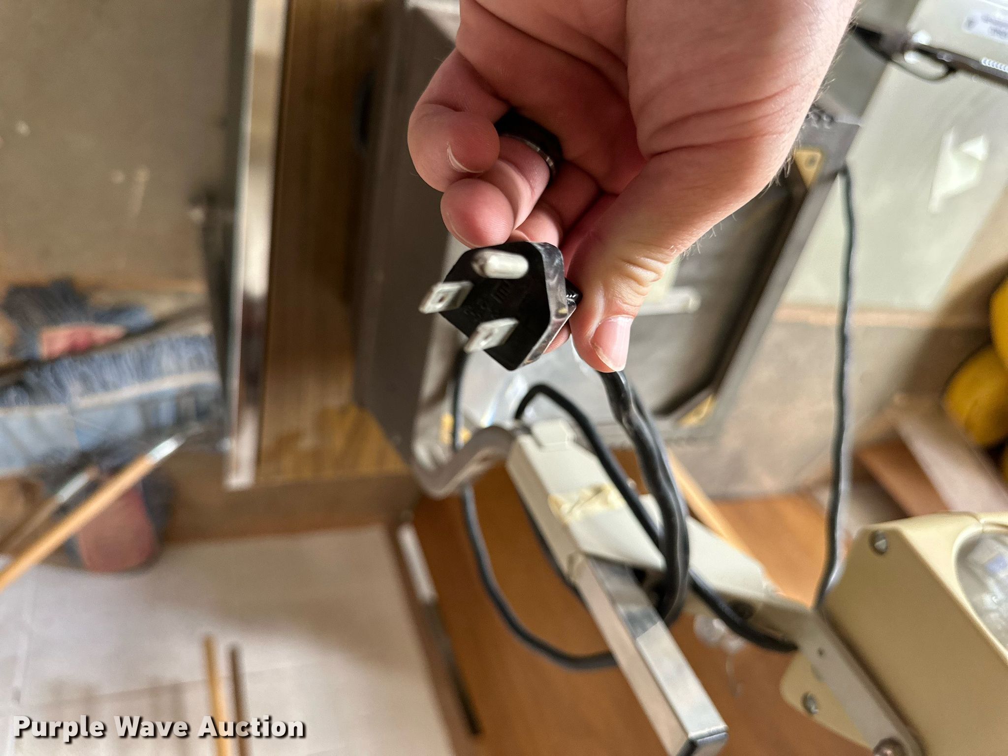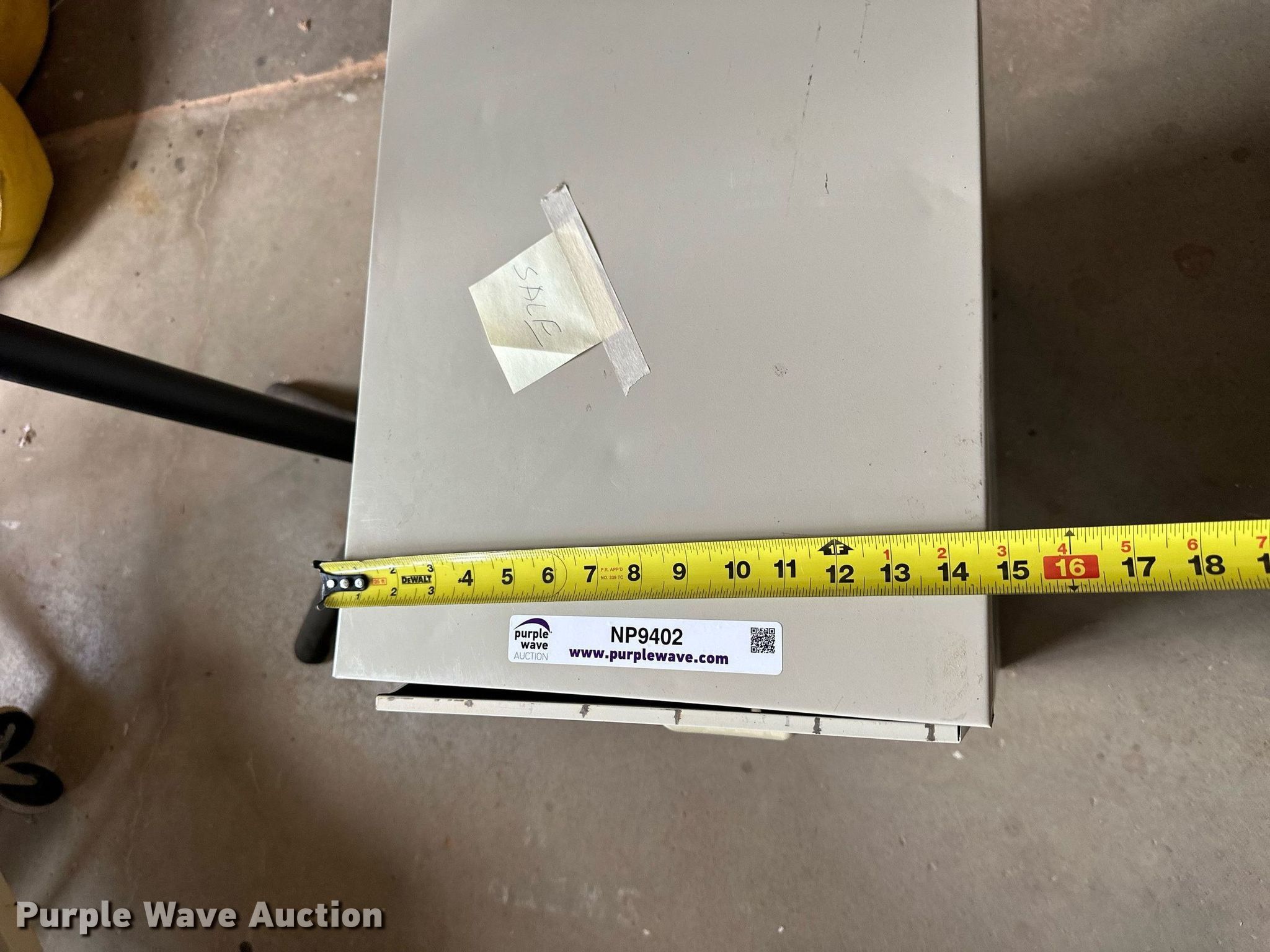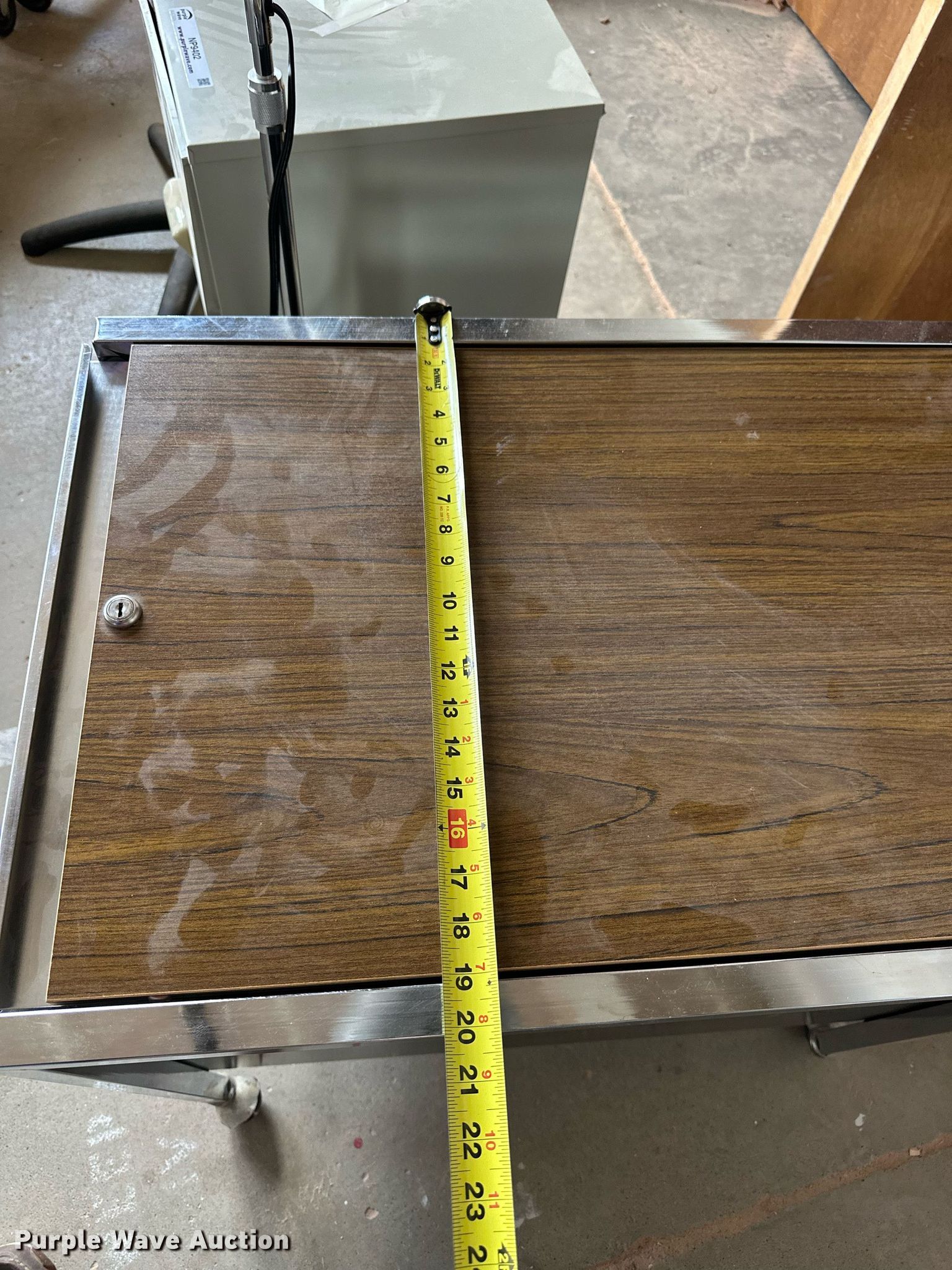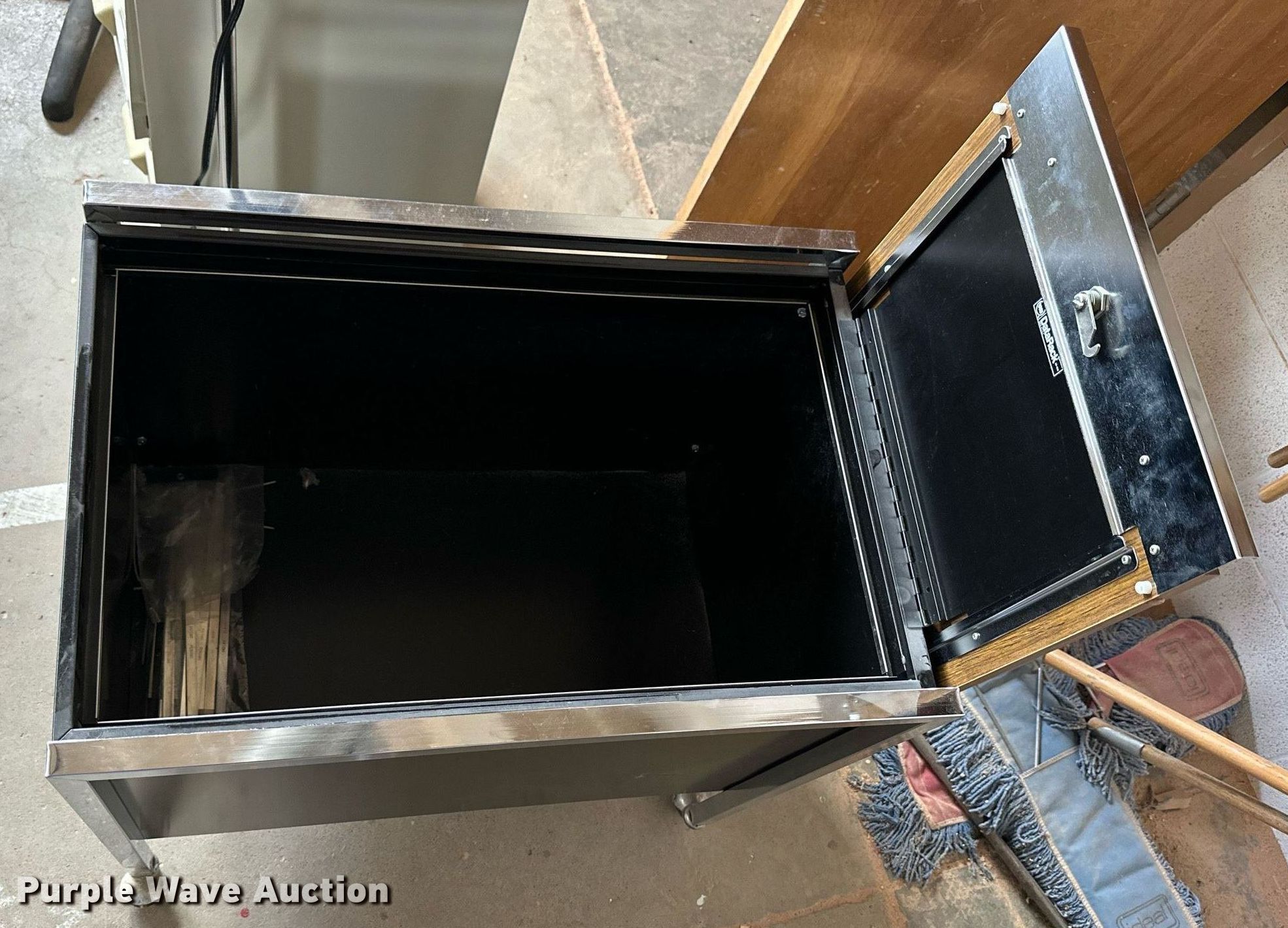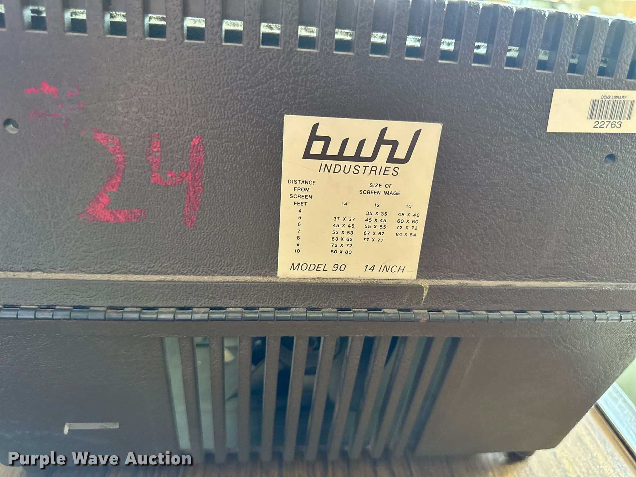 Purple Wave is selling a used Furniture in Kansas. This item is a Furniture with the following: Cabinet, 29" L x 20" W, Filing cabinet, 18" L x 15" W x 25" H, Buhl 90 overhead projector, Lamp, Art stand