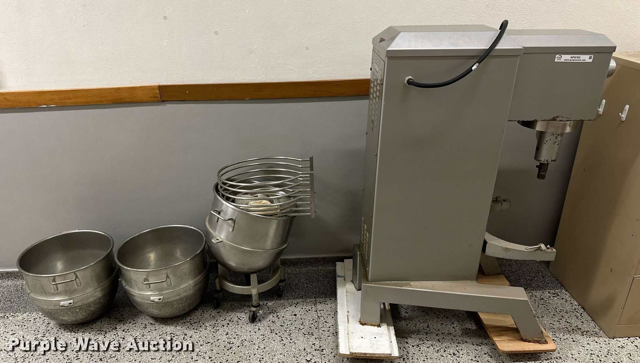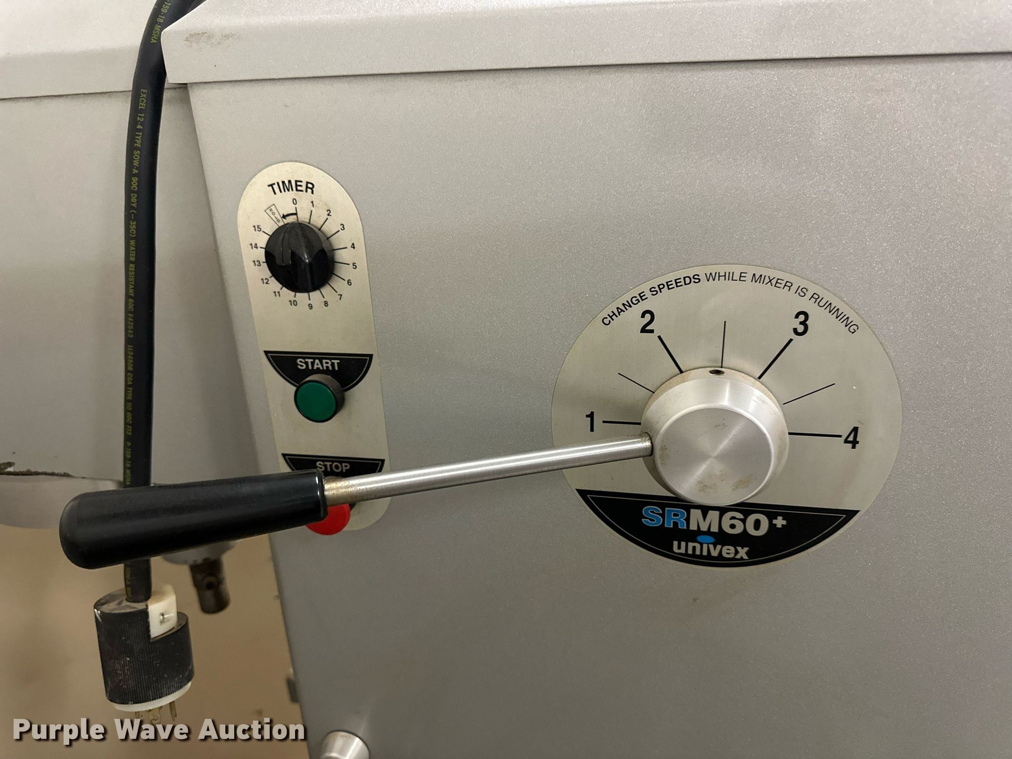 Purple Wave is selling a used Restaurant Equip. in Kansas. This item is a Univex SRM604 mixer with the following: Serial: SRM6043940013, Hertz: 60, Amps: 8.5, Phase: 3