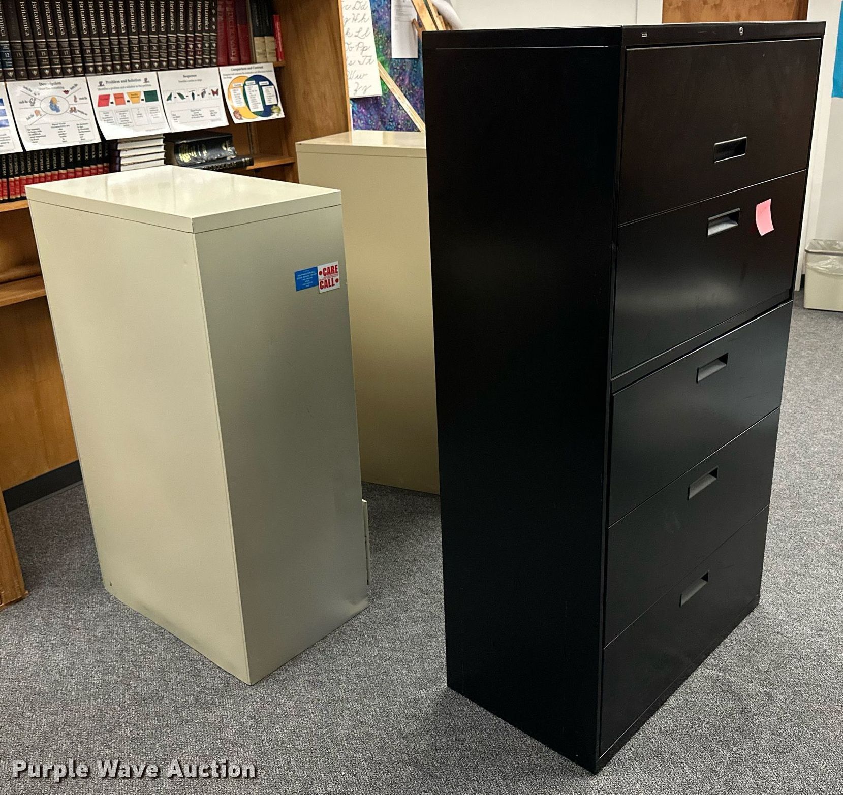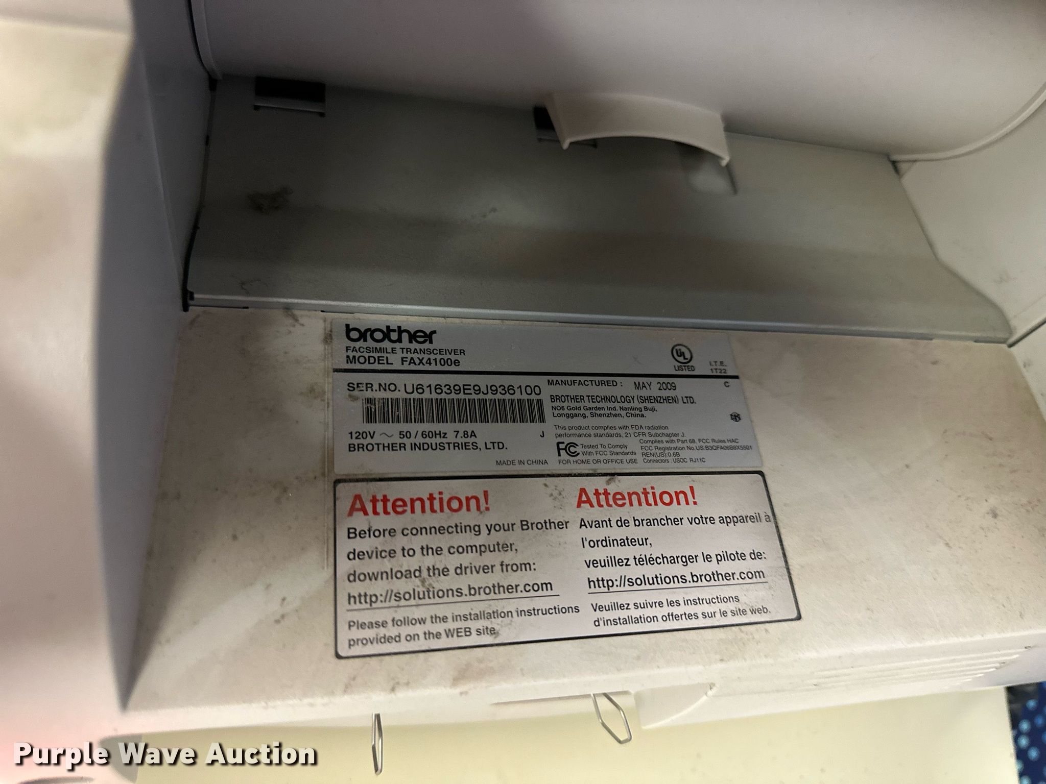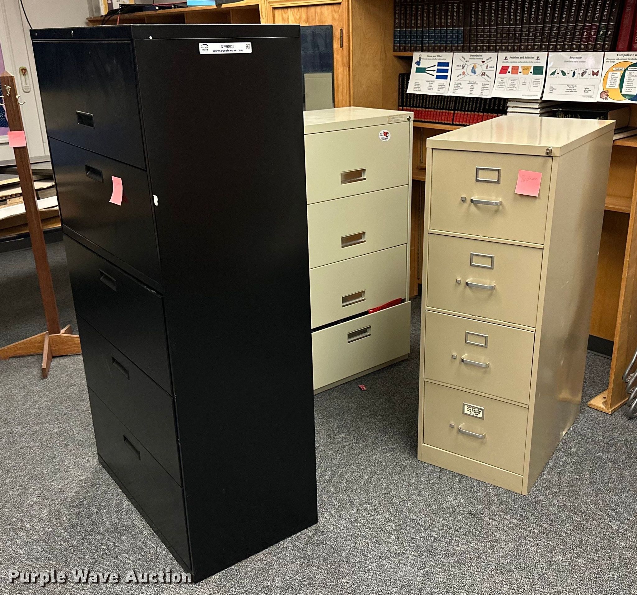 Purple Wave is selling a used Office Supplies and Equip. in Kansas. This item is a Office supplies with the following: (5) filing cabinets, Contents not included, Business Class Super G3 laser fax machine, 33.6kbps, Coat rack