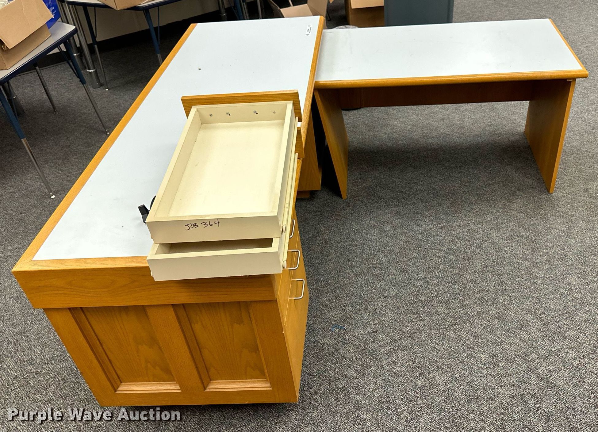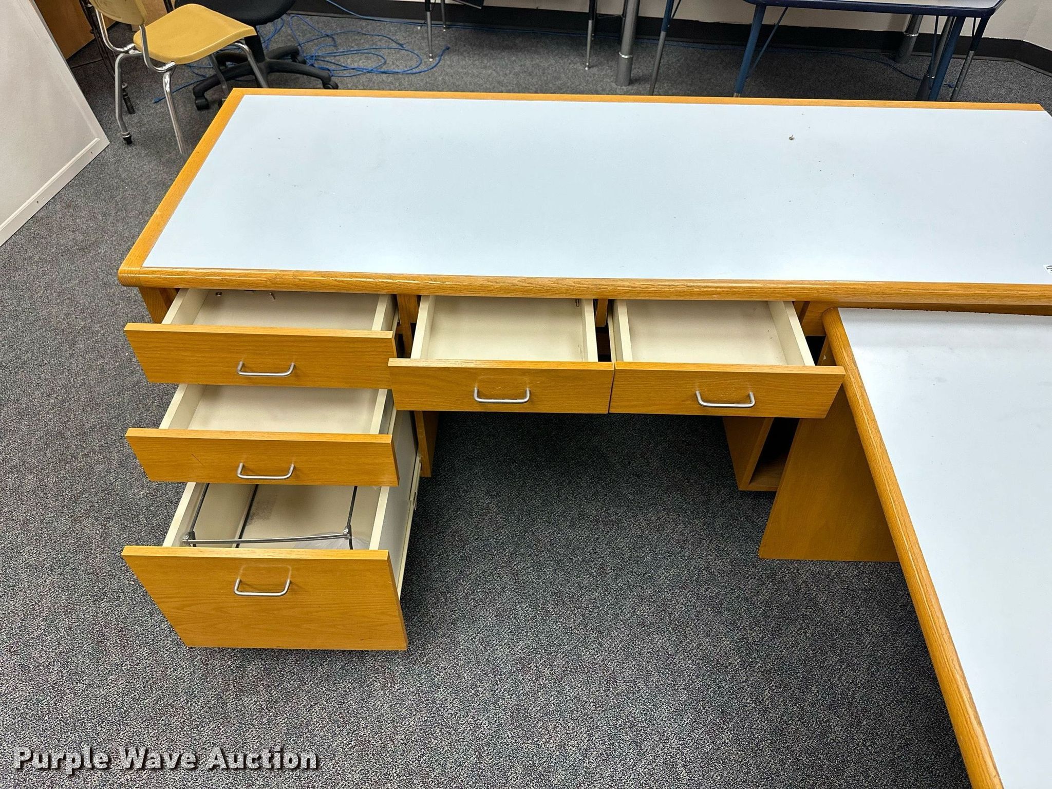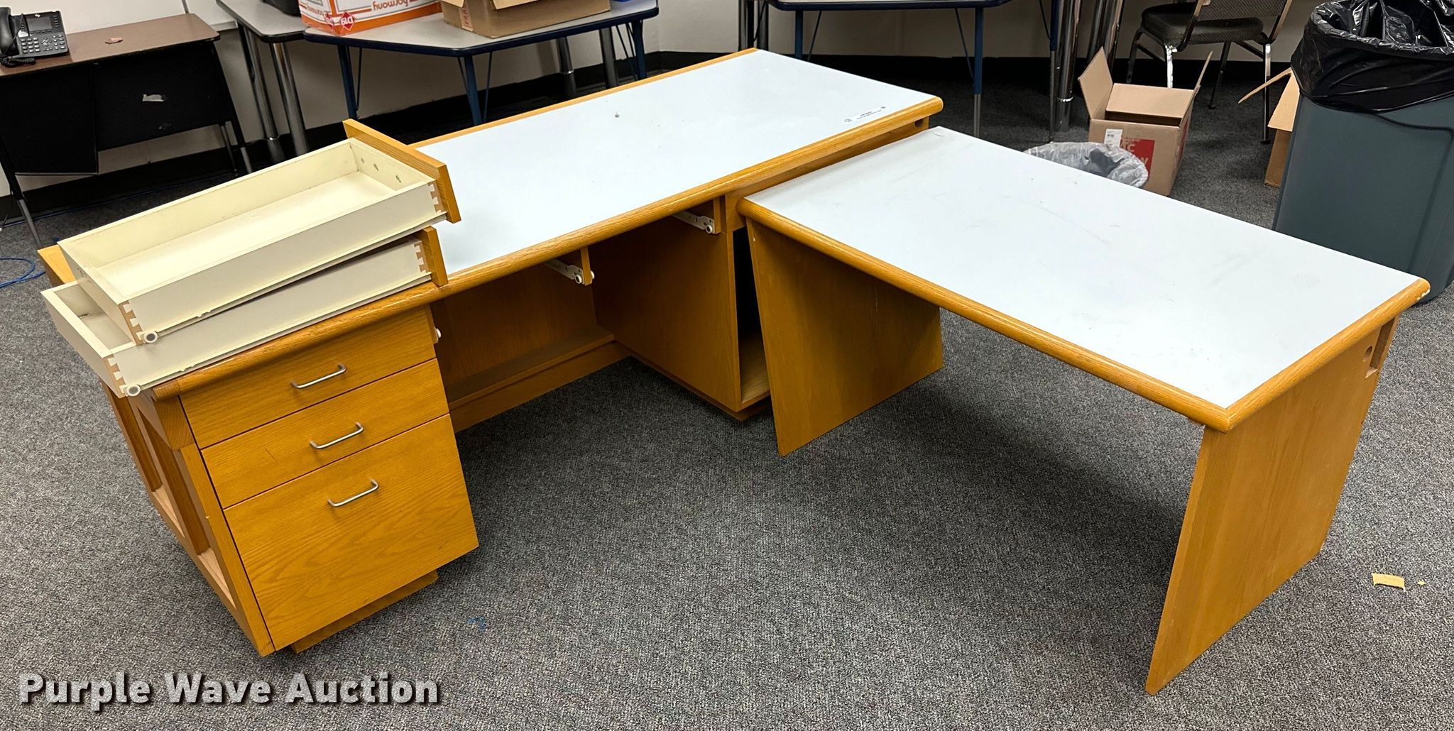 Purple Wave is selling a used Furniture in Kansas. This item is a Desk with the following: Approx. 125" L x 29" W x 30" H