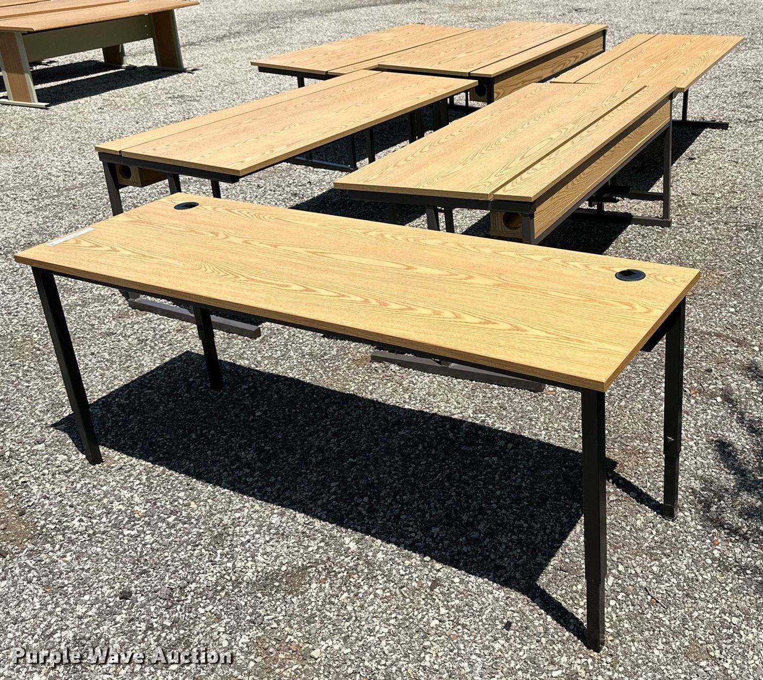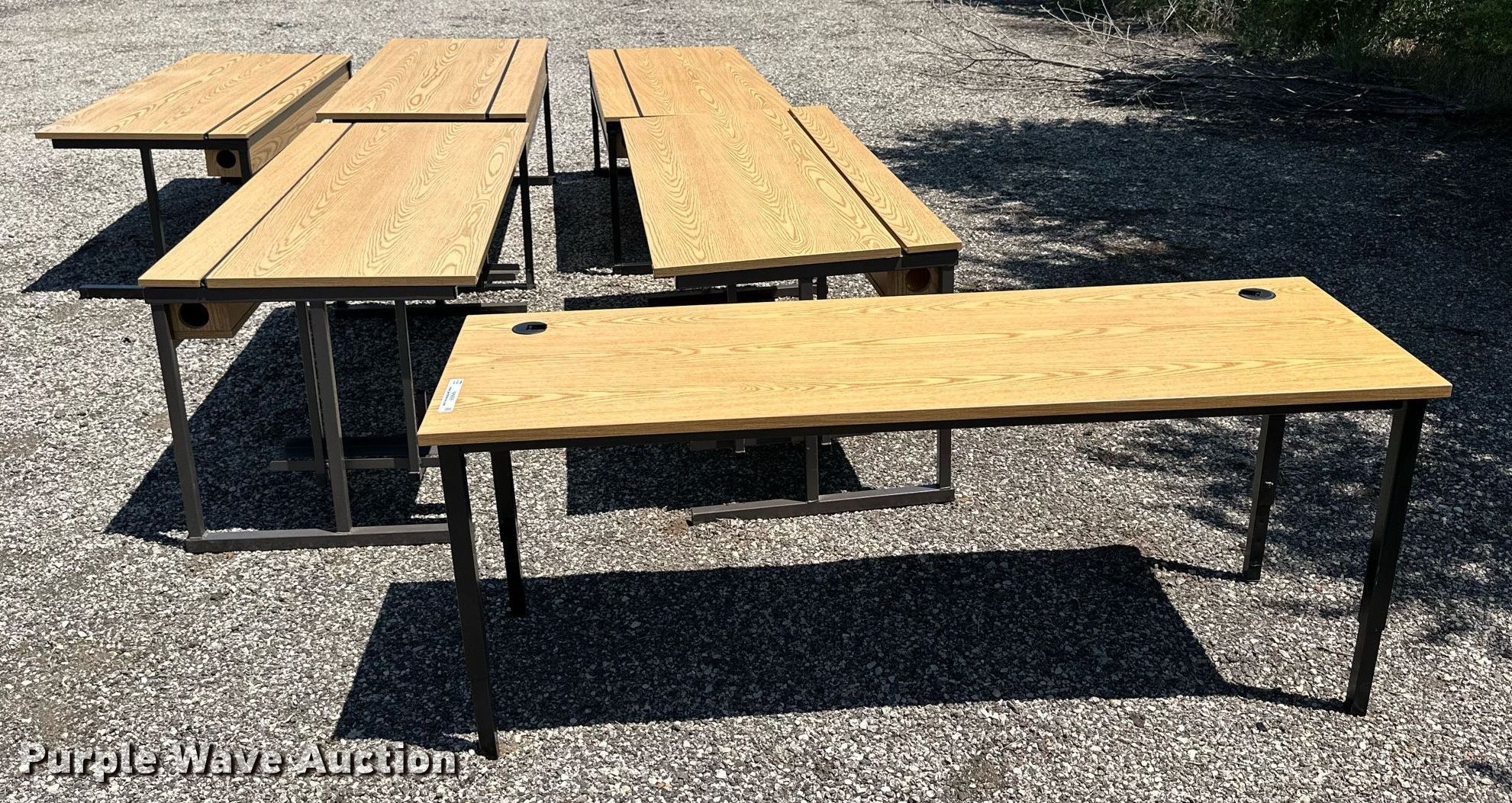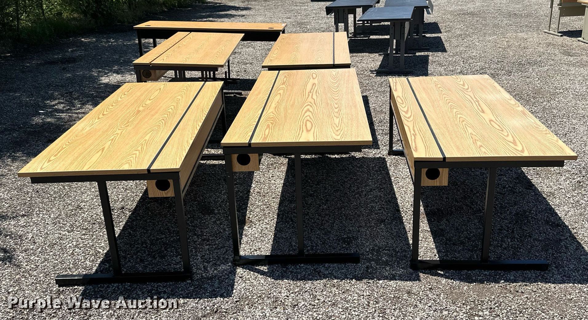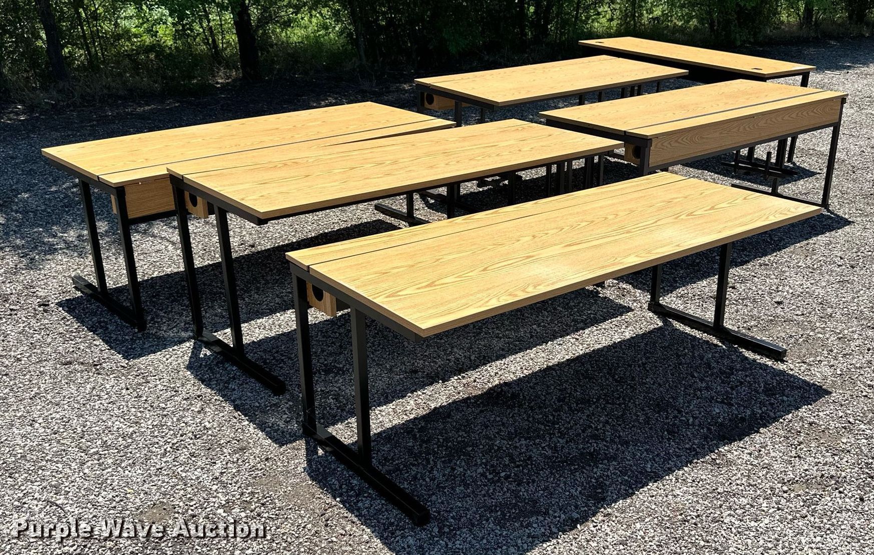 Purple Wave is selling a used Furniture in Kansas. This item is a (6) tables with the following: 72" L x 30" W x 29" H, Adjustable