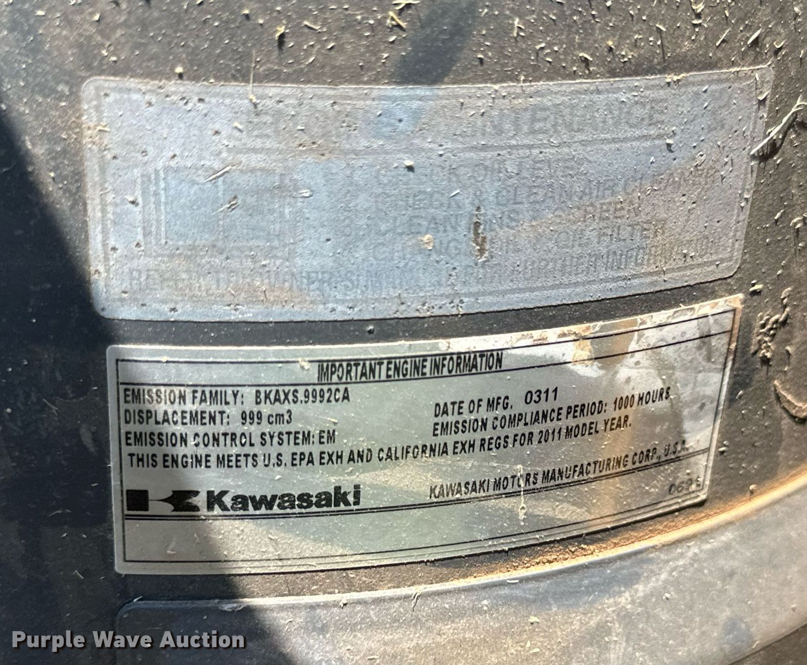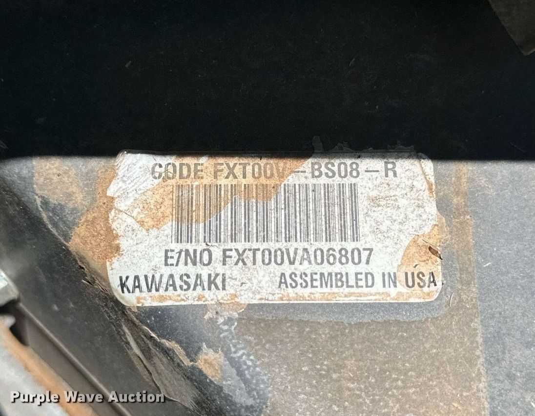 Hustler Super Z 929950 ZTR lawn mower. Hours: 1,553 on meter, Cutting width: 72", Serial: 11033700. Engine Kawasaki, Serial: FXT00VA06807, Displacement: 999 cc, Cylinders: 2, Fuel type: Gas. Transmission Hydrostatic. Tires Front: 13x6.50-6 4.50, Rear: 24x12.00-12. USD 307 Ell-Saline. 412 Anderson Street. Brookville, KS 67425