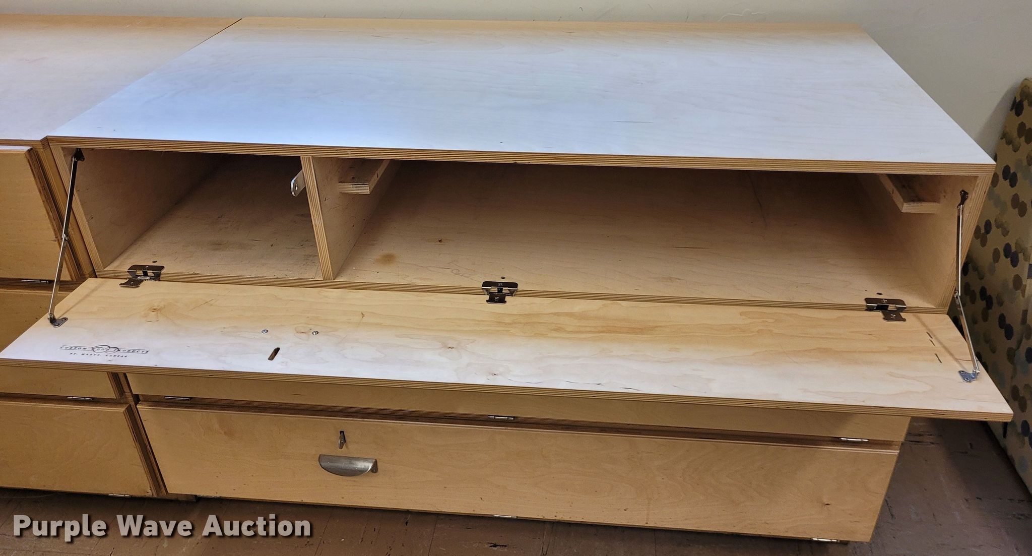 Purple Wave is selling a used Furniture in Kansas. This item is a (6) storage cabinets with the following: 54" x 30" x 10", (3) bases, Hardware included