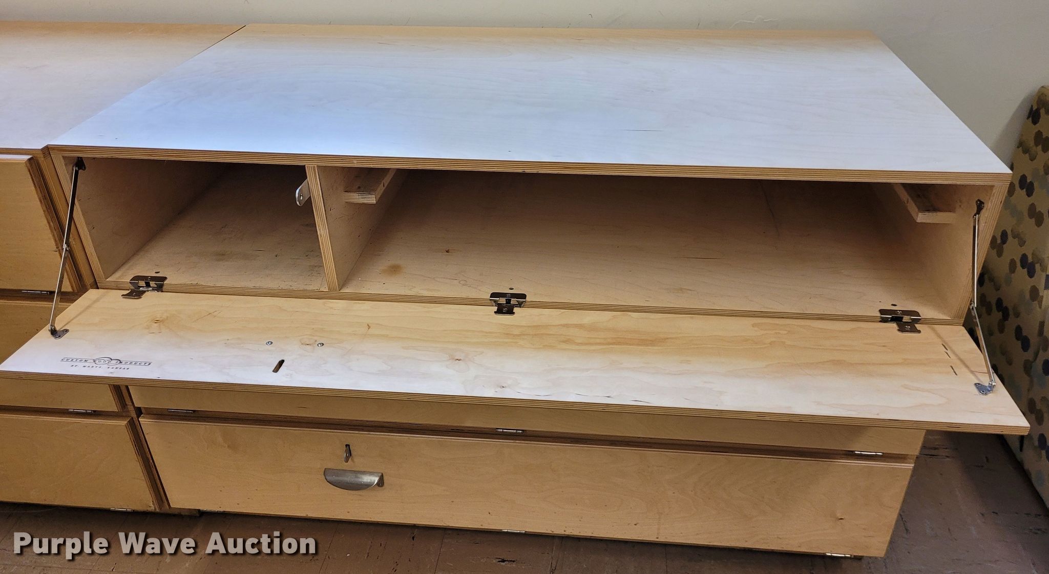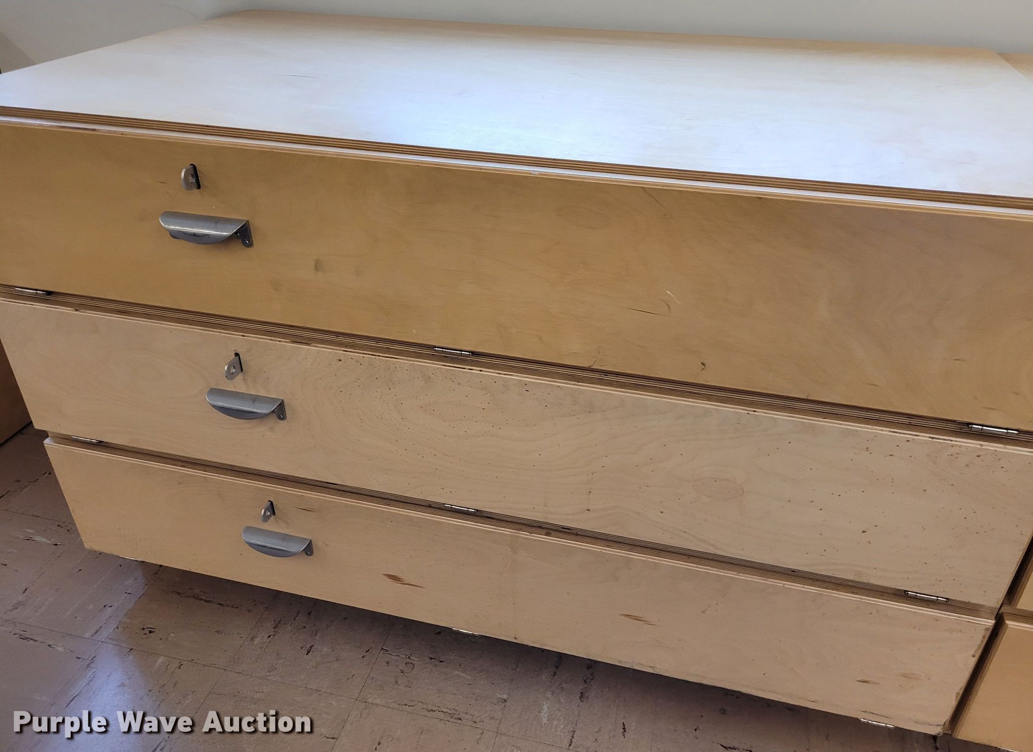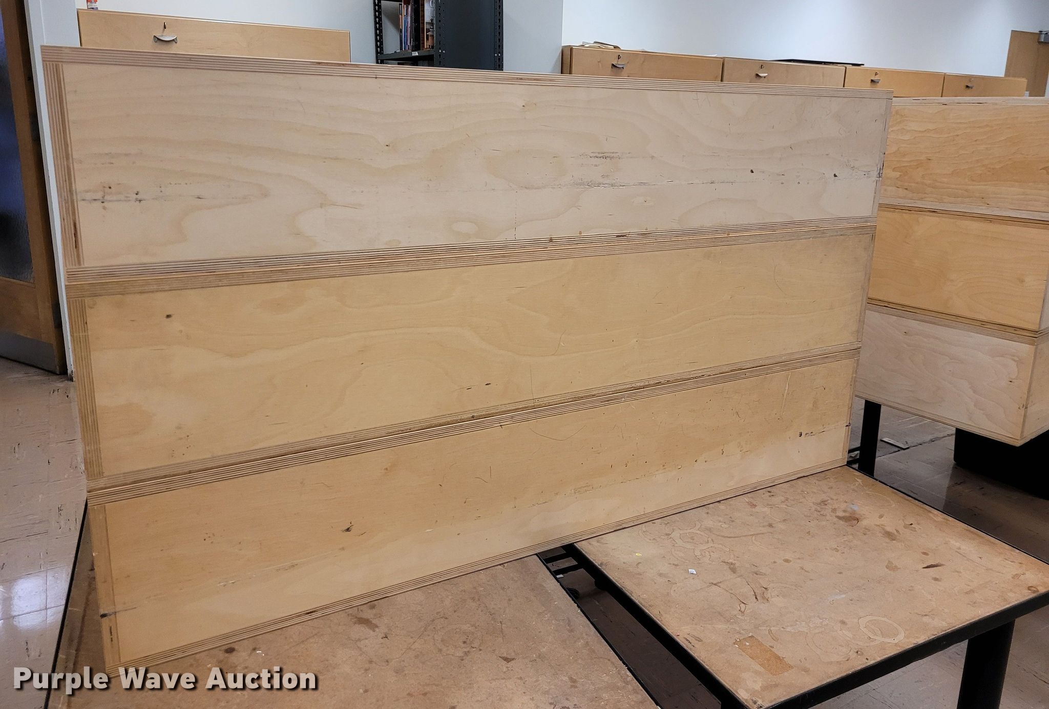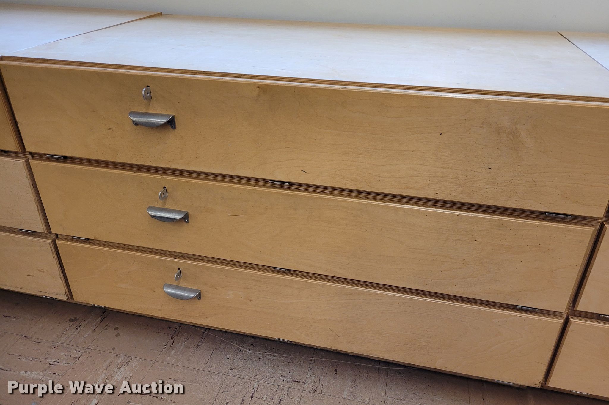 Purple Wave is selling a used Furniture in Kansas. This item is a (7) storage cabinets with the following: 54" x 30" x 10", (3) bases, Hardware included