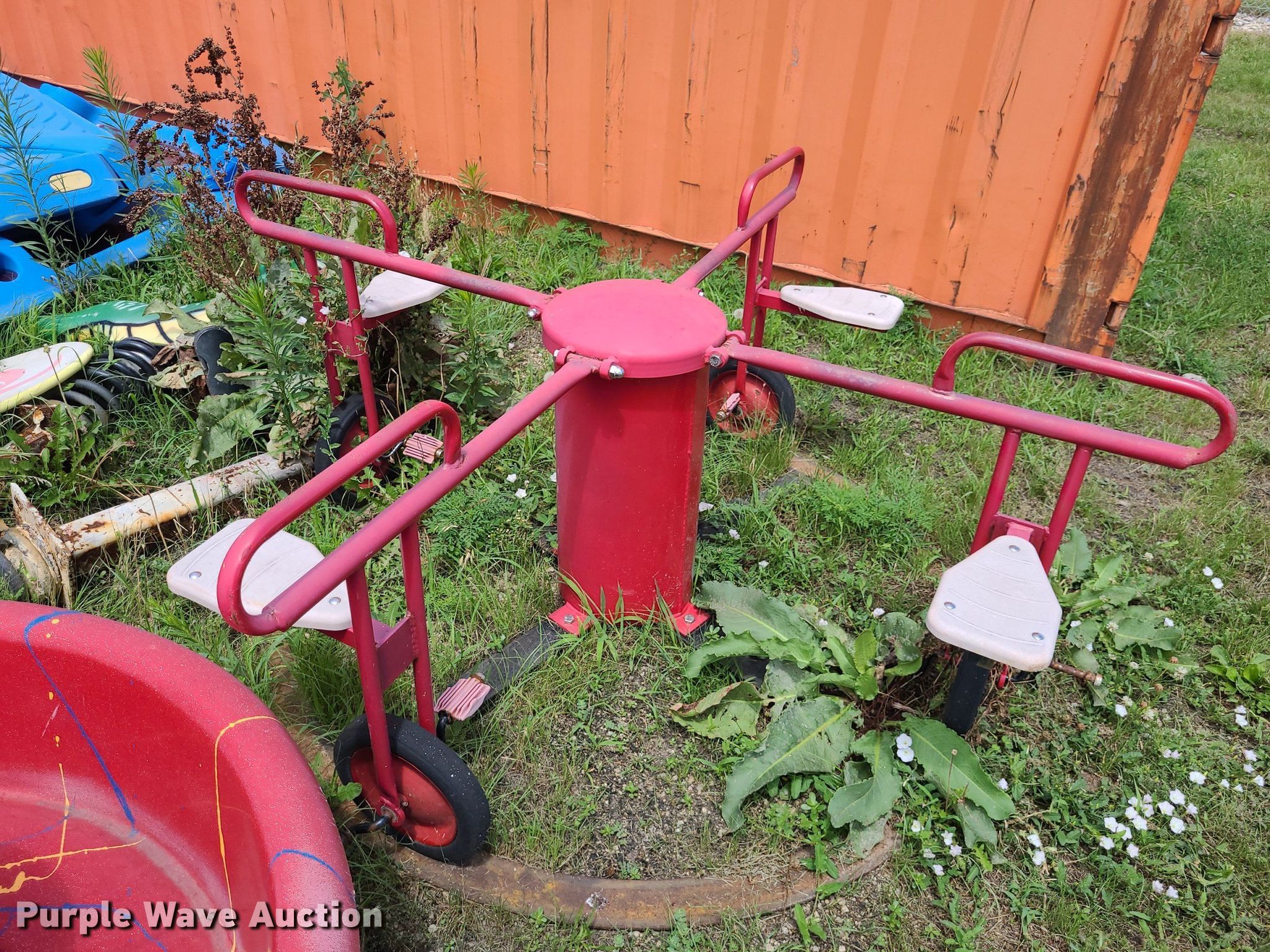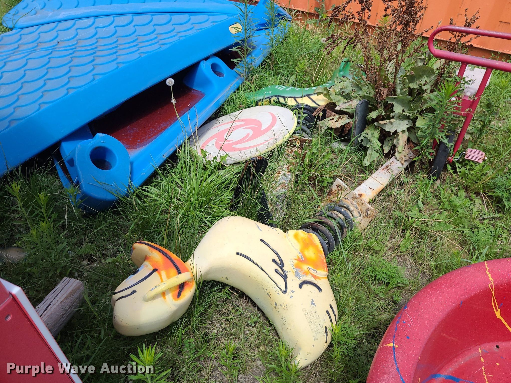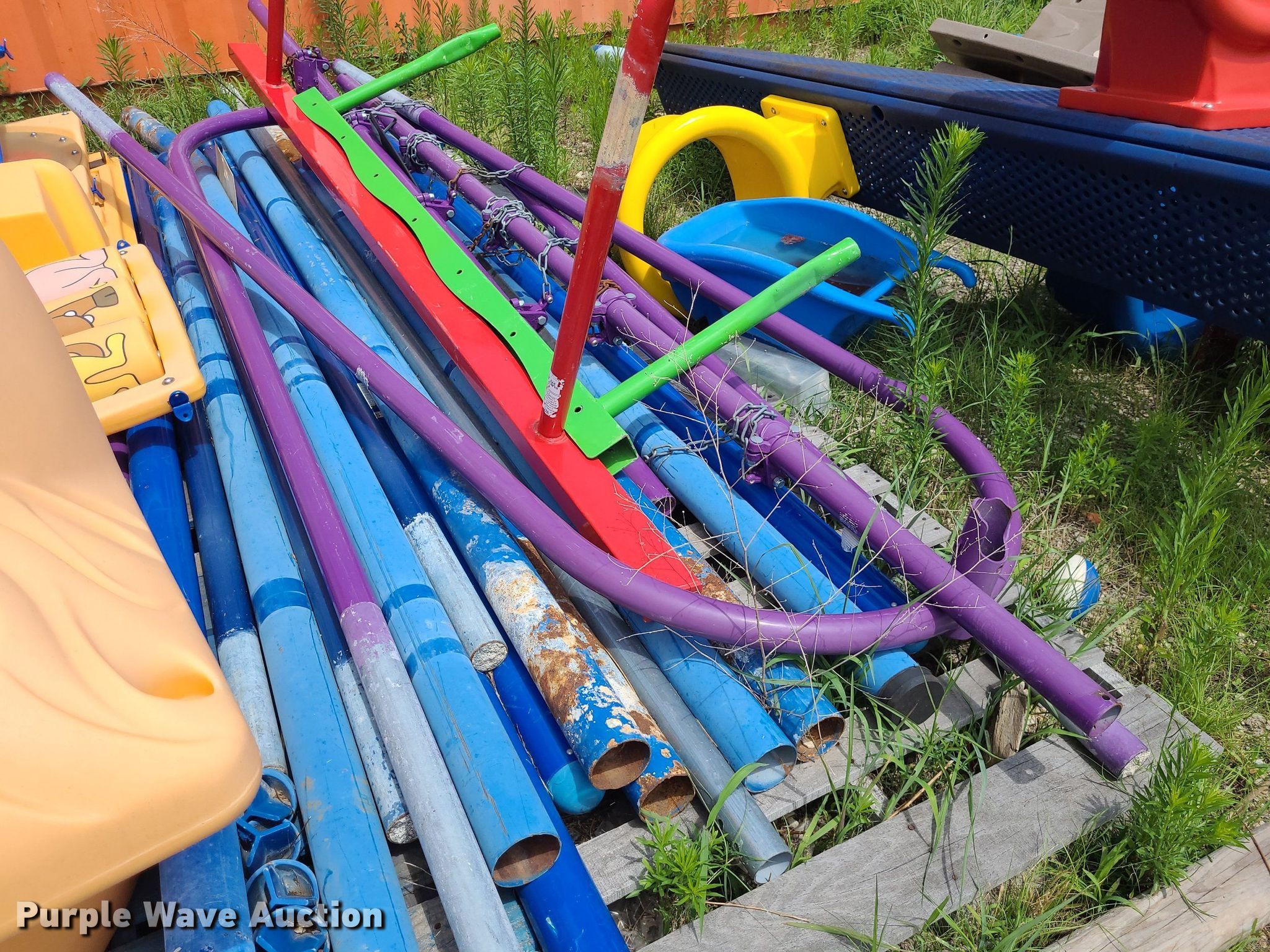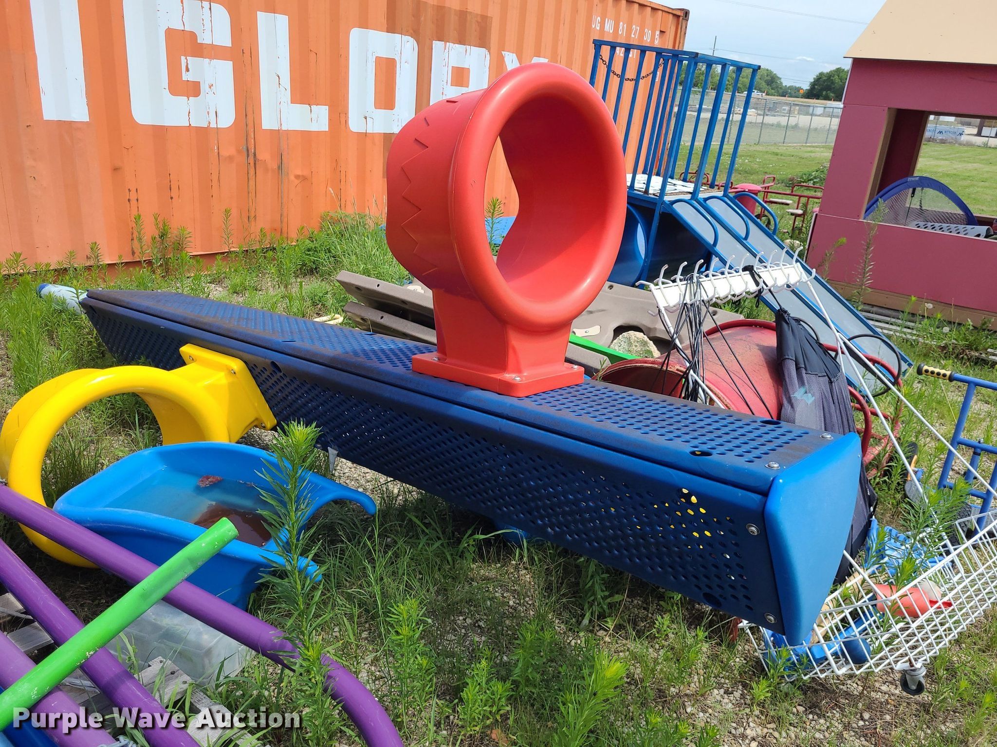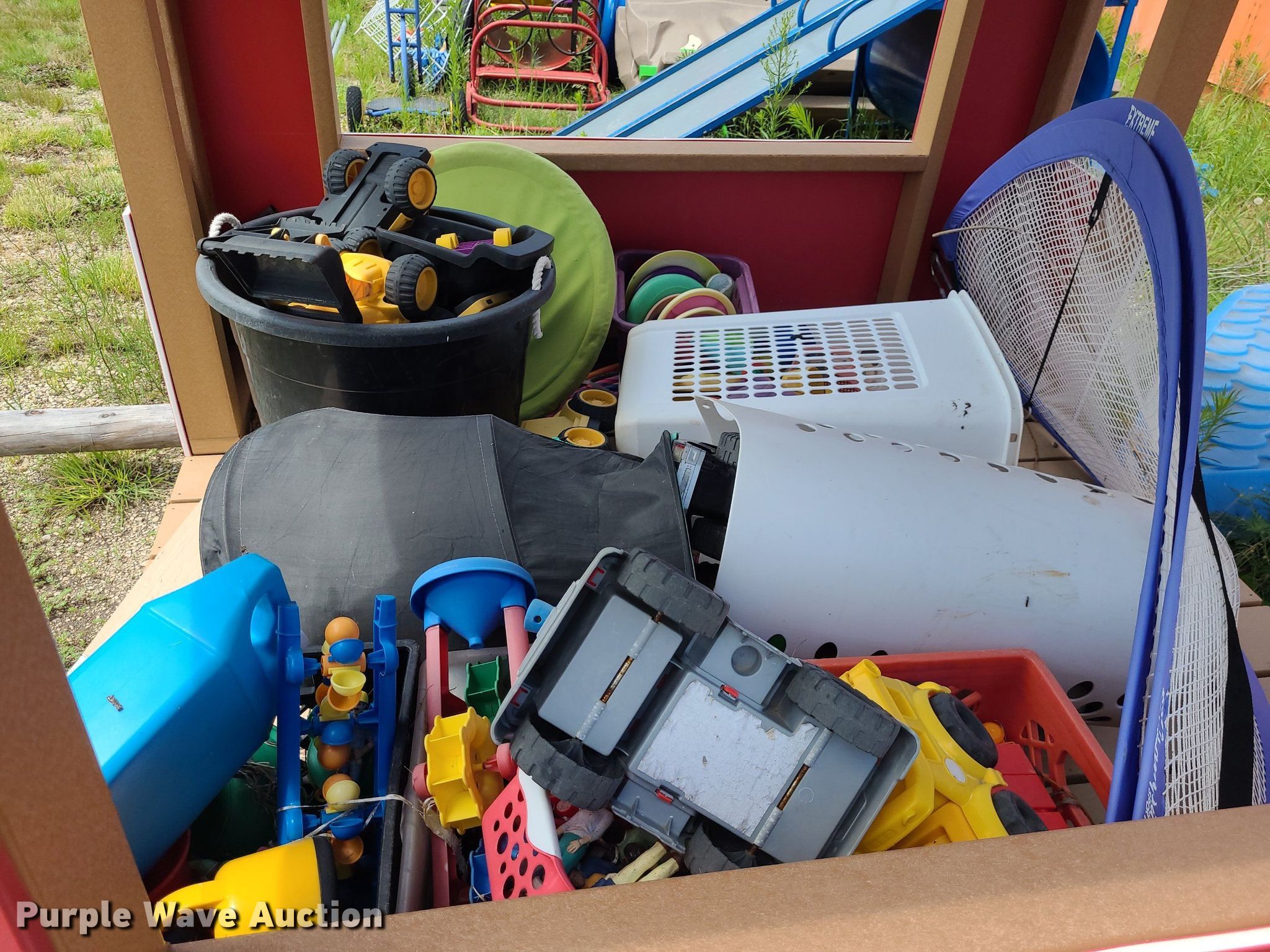 Purple Wave is selling a used Sporting Goods in Kansas. This item is a Playground equipment with the following: Slides, Playhouse, Basketball goal, Trike, Climbing wall, Toys, Merry-go-round and more
