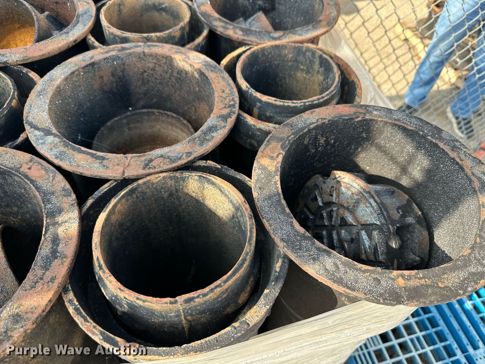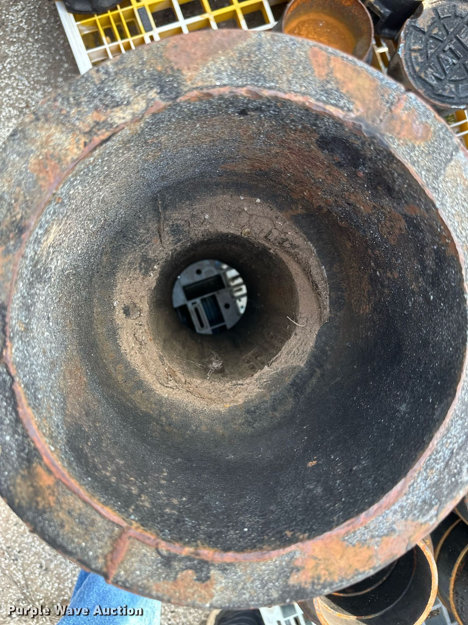 Purple Wave is selling a used Building Materials in Oklahoma. This item is a (50) cast iron water valve equipment with the following: Covers, Tops and more, Baskets not included