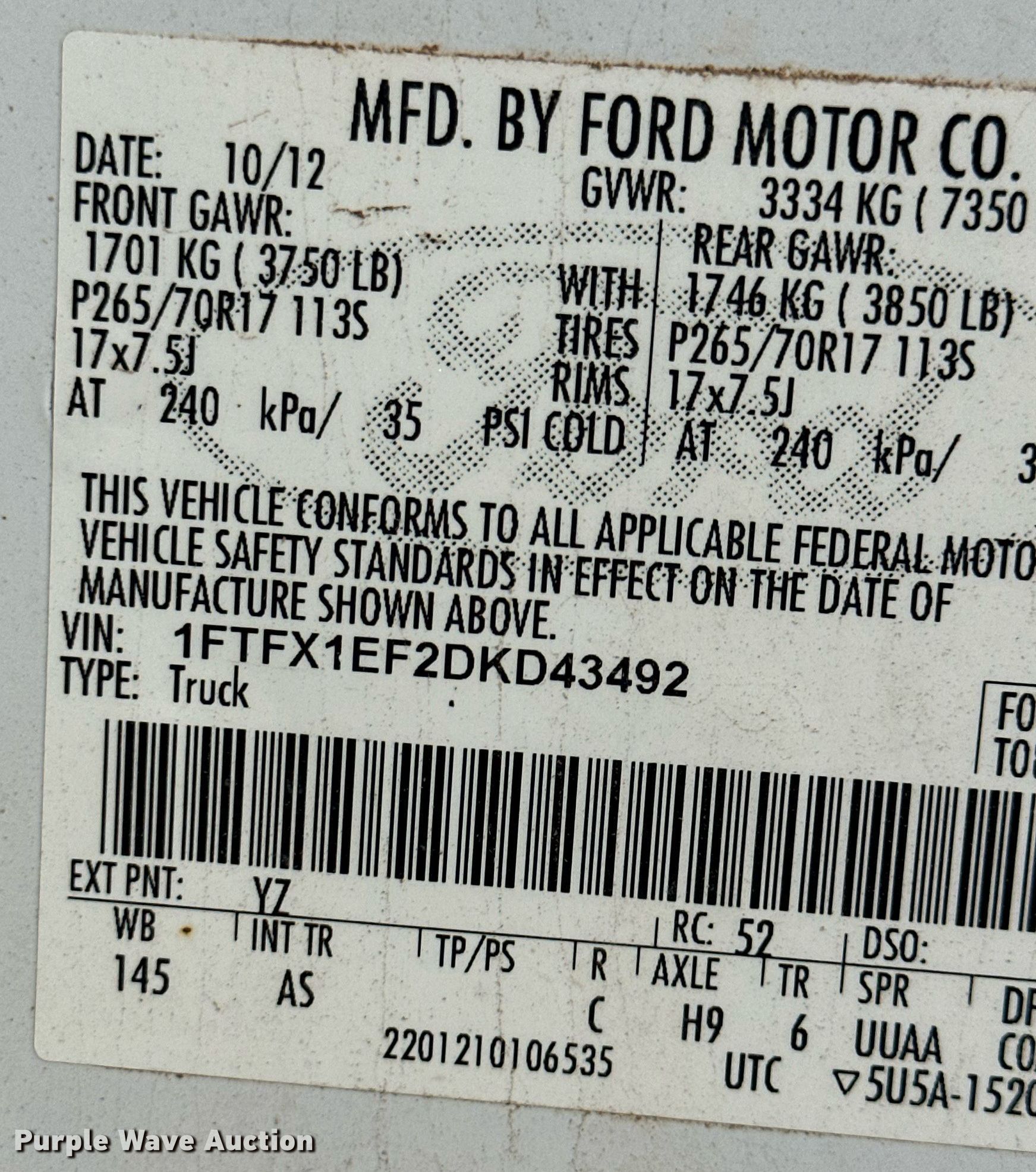 - VIN: 1FTFX1EF2DKD43492