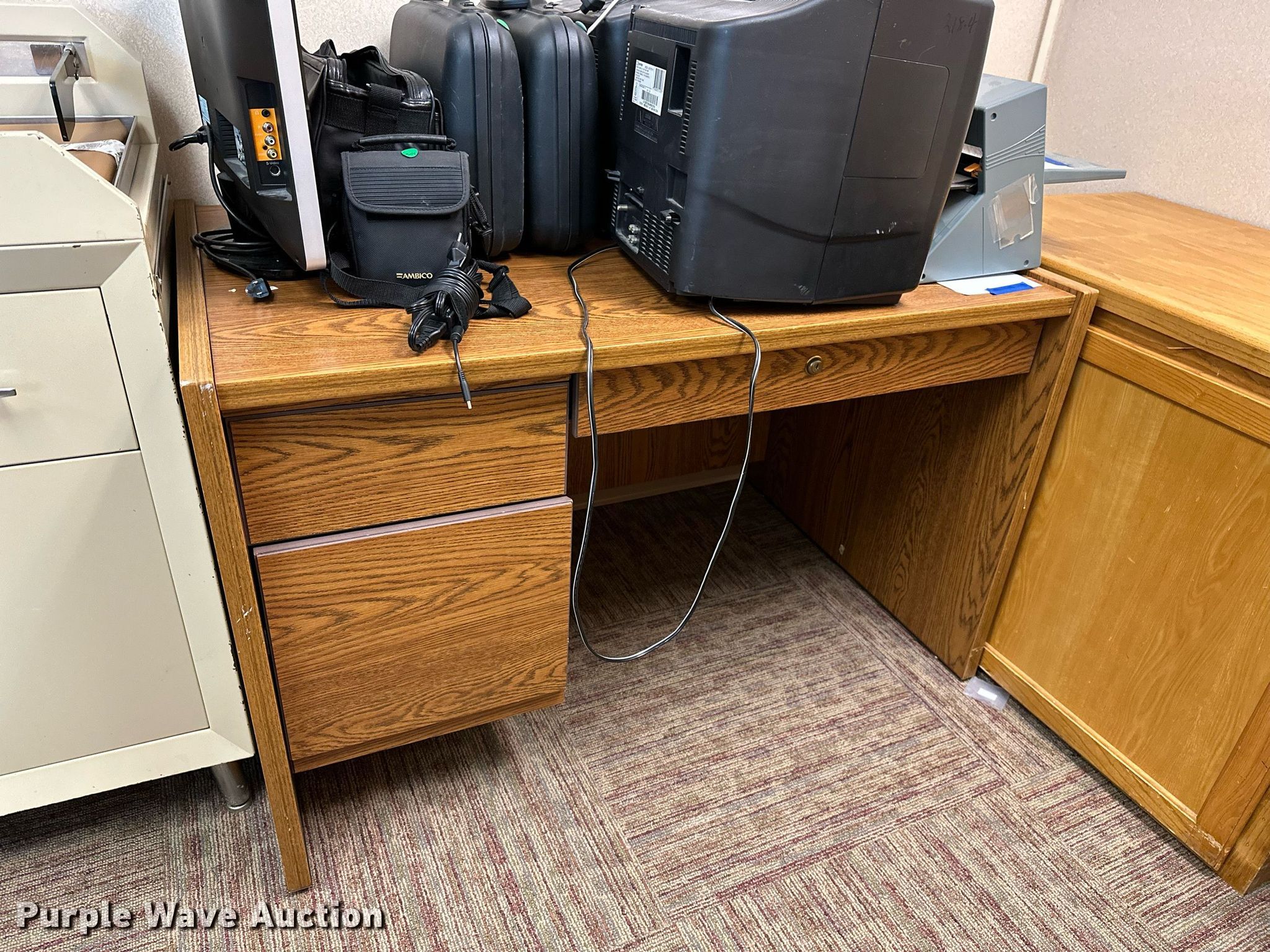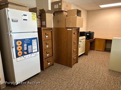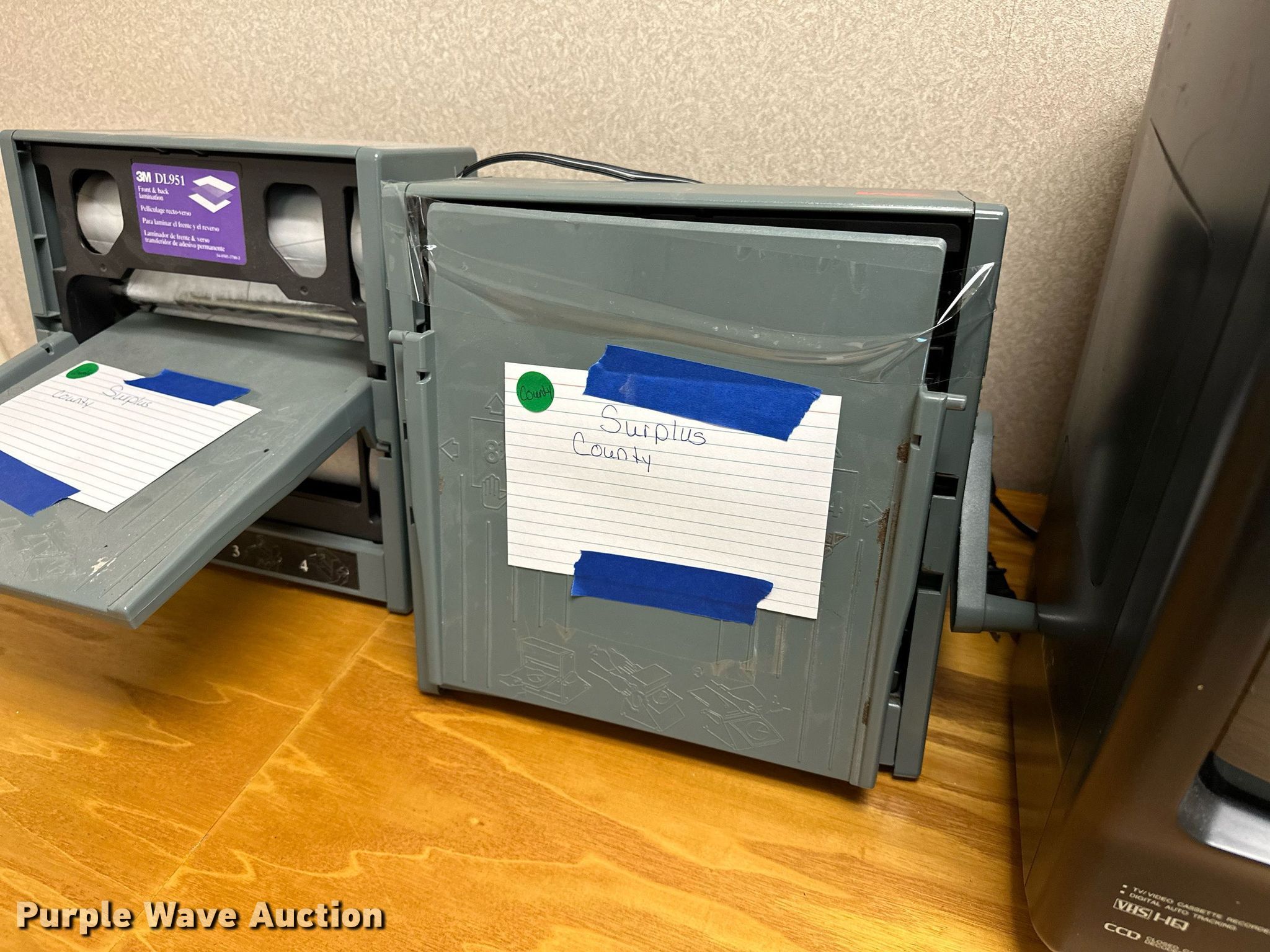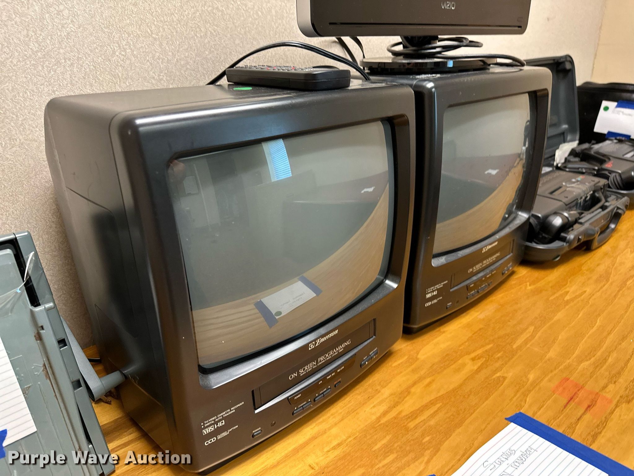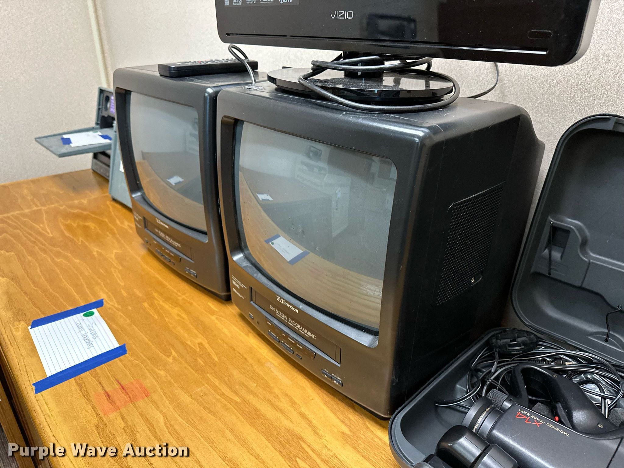 Purple Wave is selling a used Electronics in Oklahoma. This item is a Electronics with the following: (2) Emerson televisions, Vizio 18" television, 3M LS950 laminator, 3M DL951 laminator, JVC compact VHS camcorder, (2) Panasonic camcorders, Camedia Olympus camera, Lifesize Icon 400 camera, Philips projector, GE refrigerator, Two drawer file cabinet, (3) four drawer file cabinets, (3) desks
