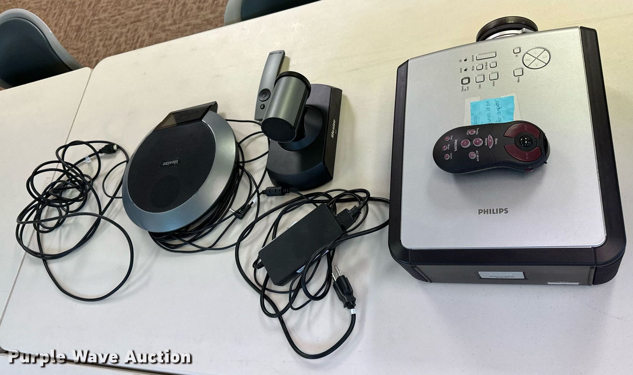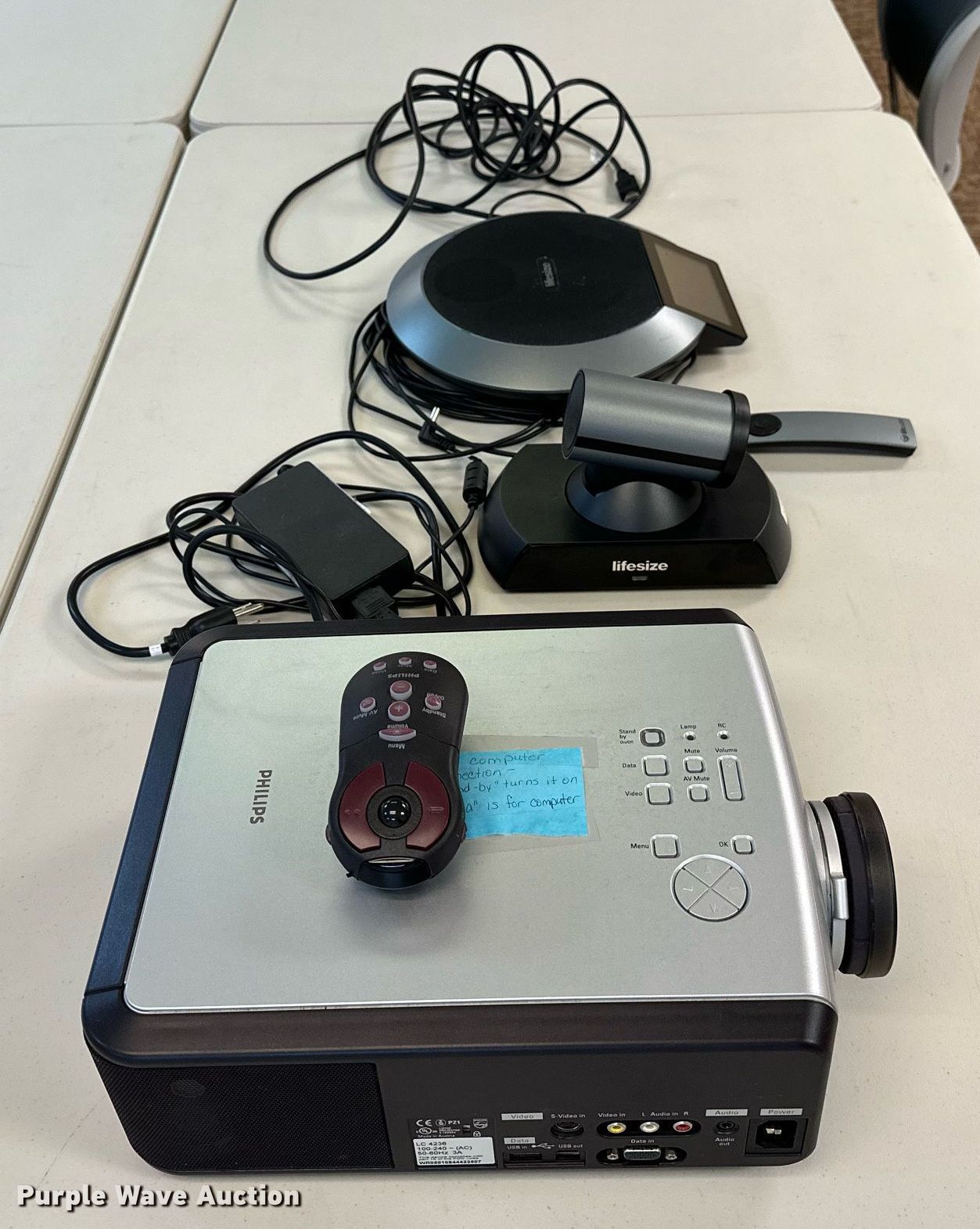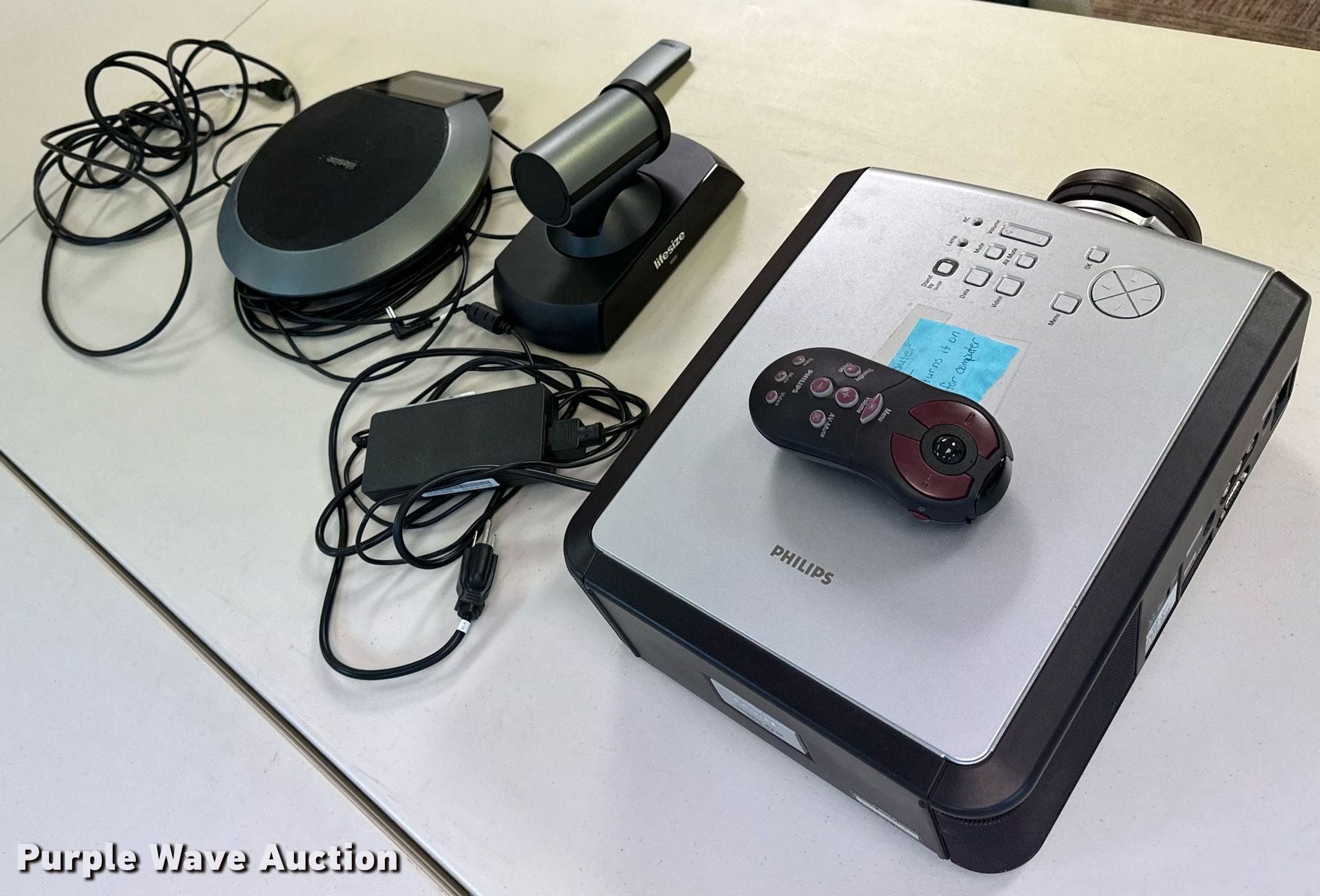 Purple Wave is selling a used Electronics in Oklahoma. This item is a Electronics with the following: (2) Emerson televisions, Vizio 18" television, 3M LS950 laminator, 3M DL951 laminator, JVC compact VHS camcorder, (2) Panasonic camcorders, Camedia Olympus camera, Lifesize Icon 400 camera, Philips projector, GE refrigerator, Two drawer file cabinet, (3) four drawer file cabinets, (3) desks