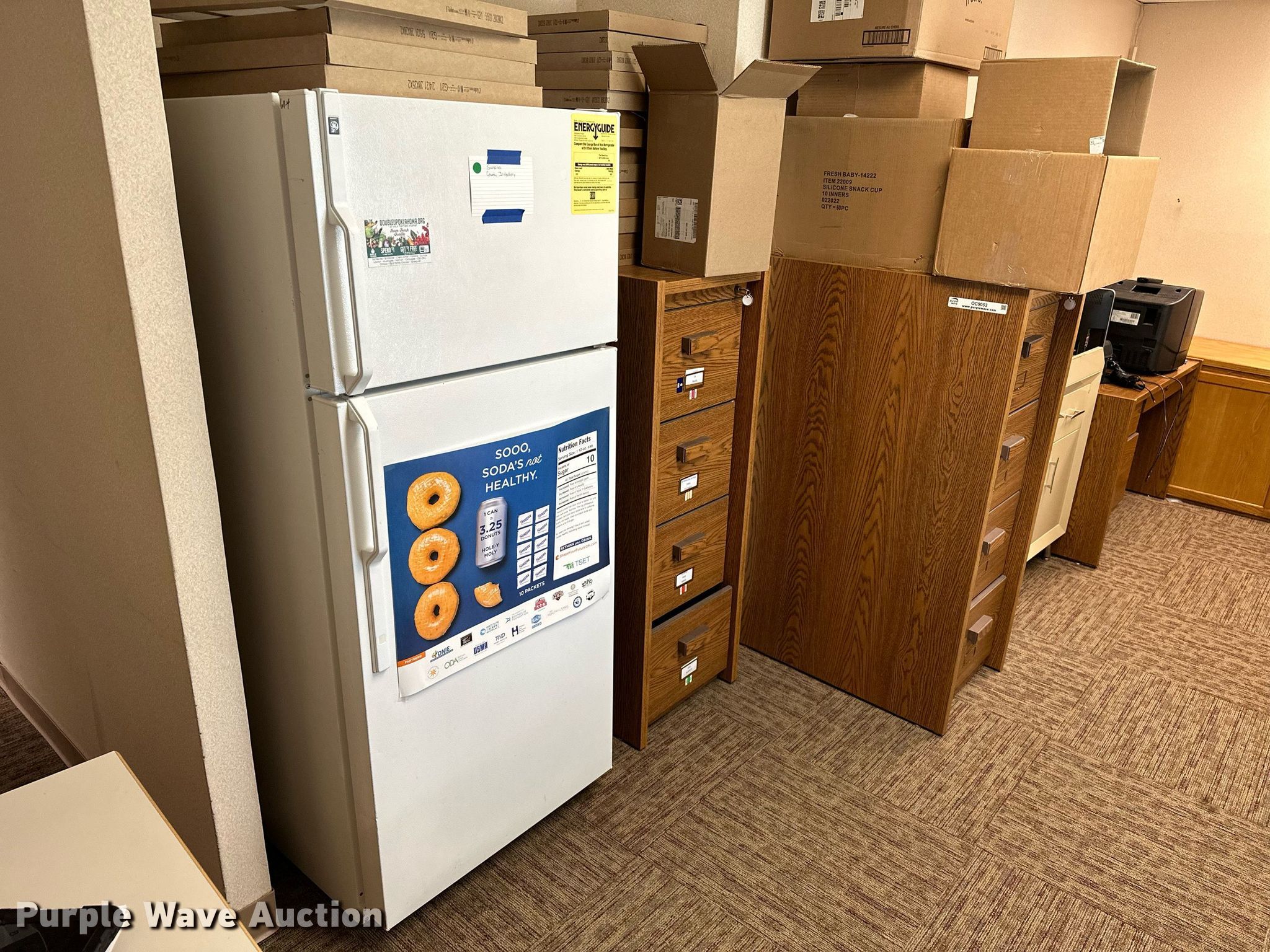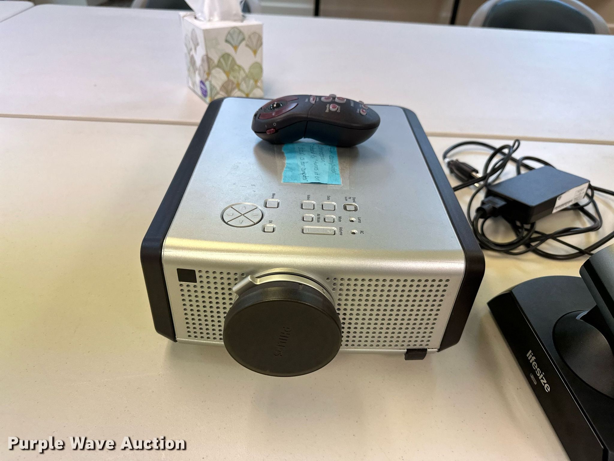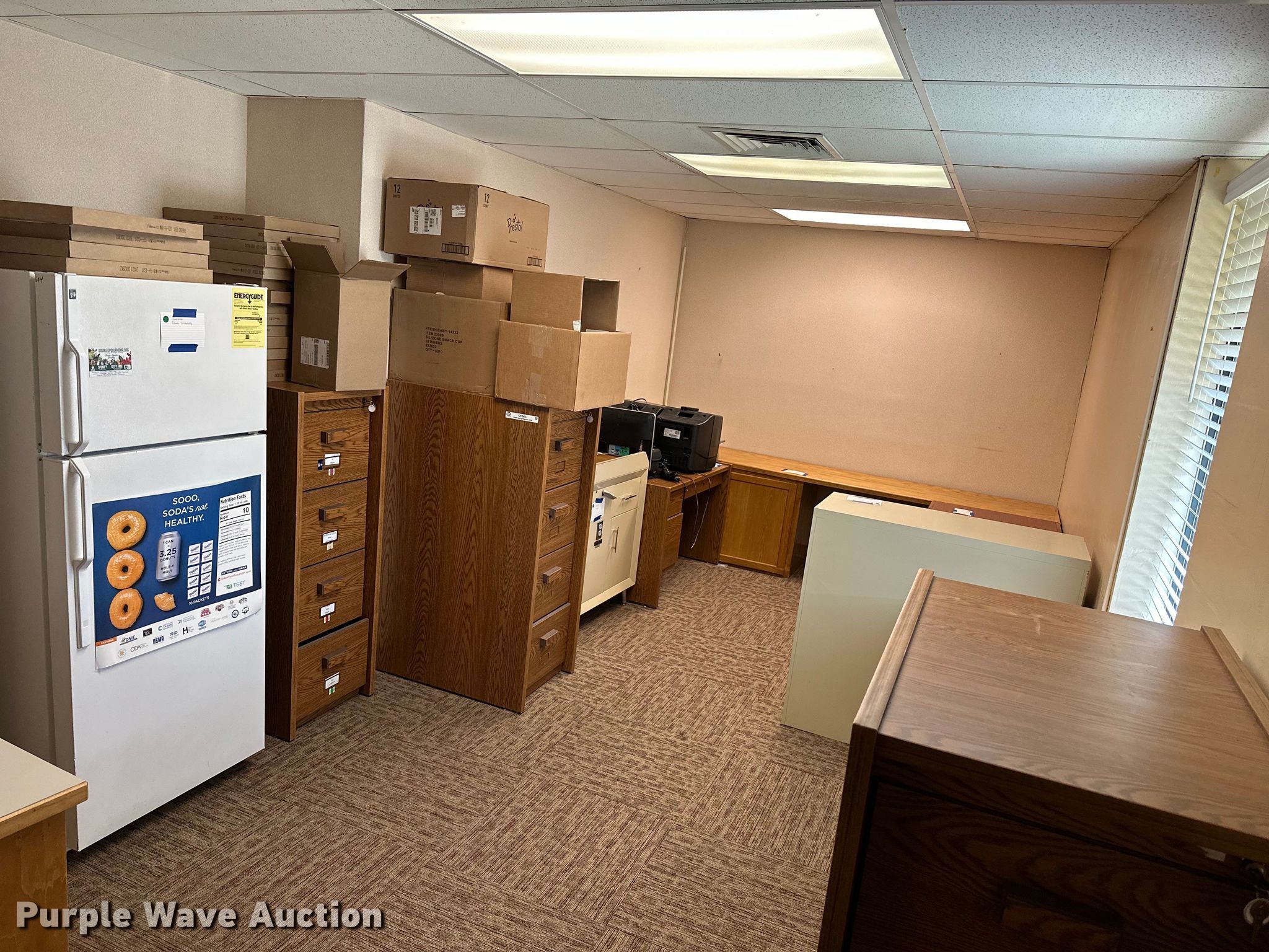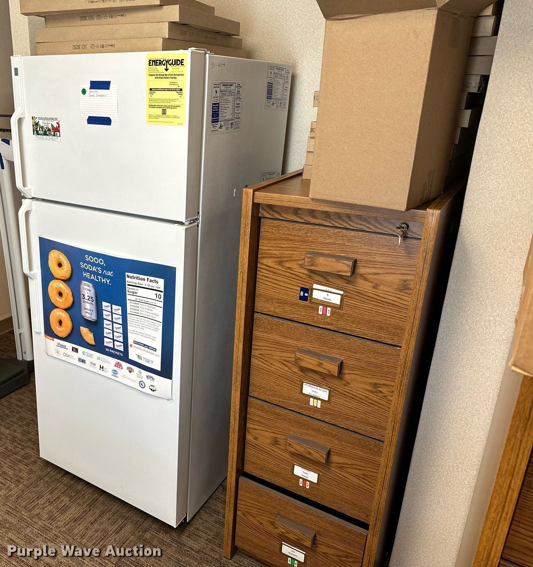 Purple Wave is selling a used Electronics in Oklahoma. This item is a Electronics with the following: (2) Emerson televisions, Vizio 18" television, 3M LS950 laminator, 3M DL951 laminator, JVC compact VHS camcorder, (2) Panasonic camcorders, Camedia Olympus camera, Lifesize Icon 400 camera, Philips projector, GE refrigerator, Two drawer file cabinet, (3) four drawer file cabinets, (3) desks