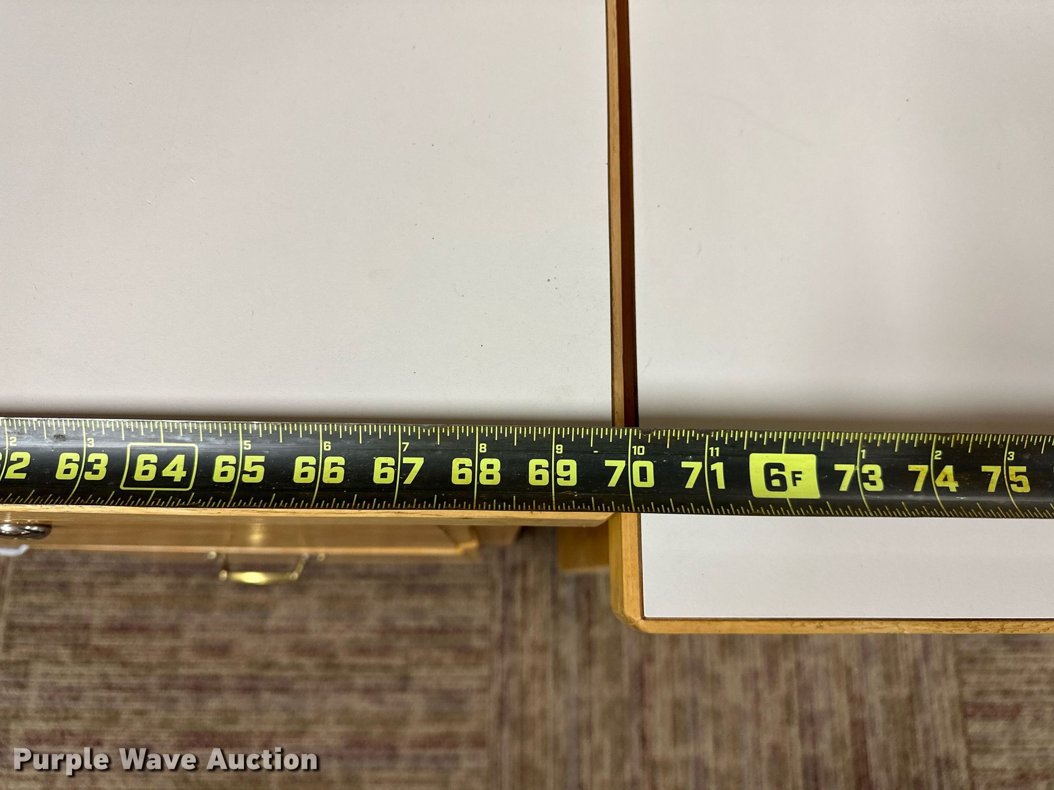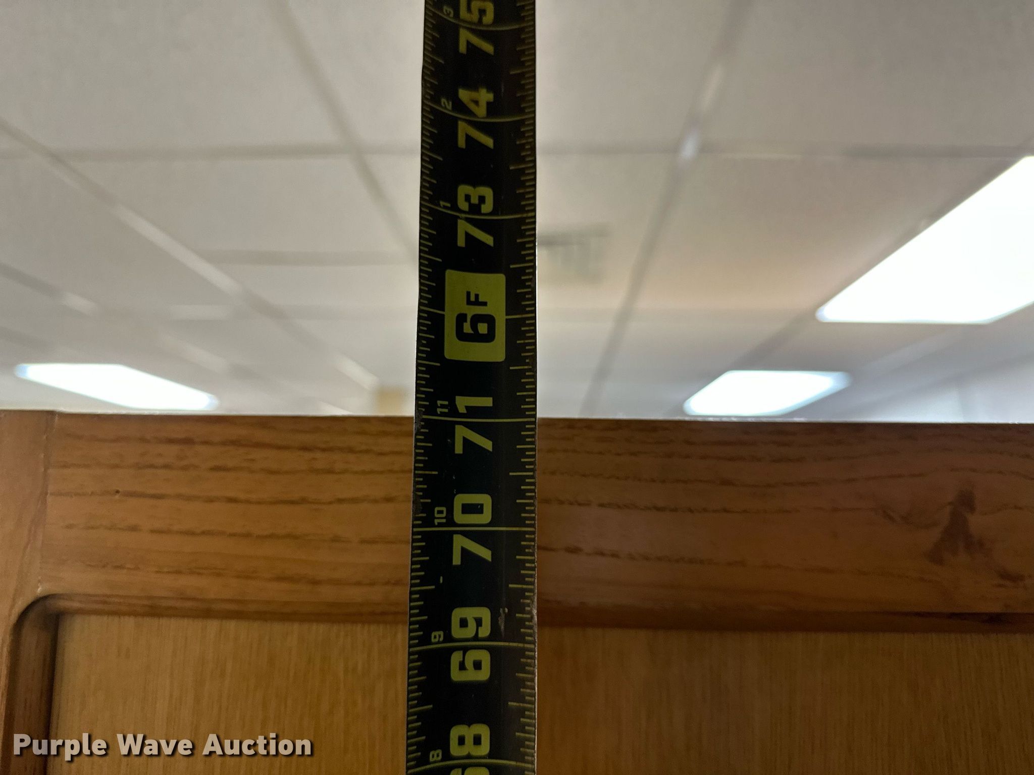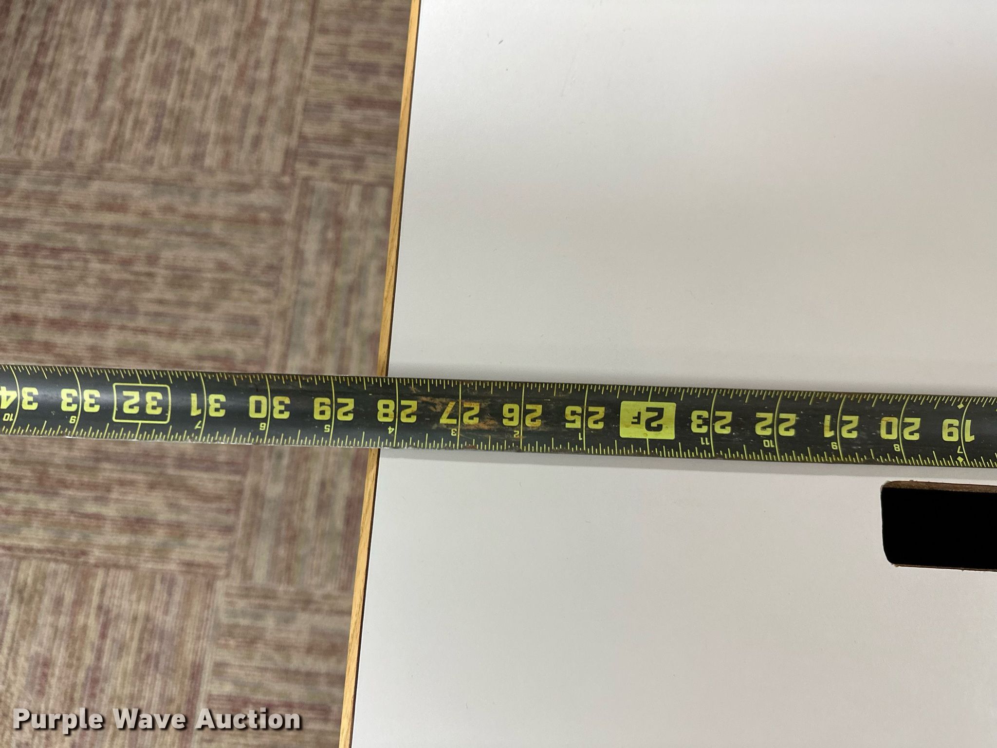 Purple Wave is selling a used Furniture in Oklahoma. This item is a Furniture with the following: (4) desks, Drawer missing, (4) two door cabinets