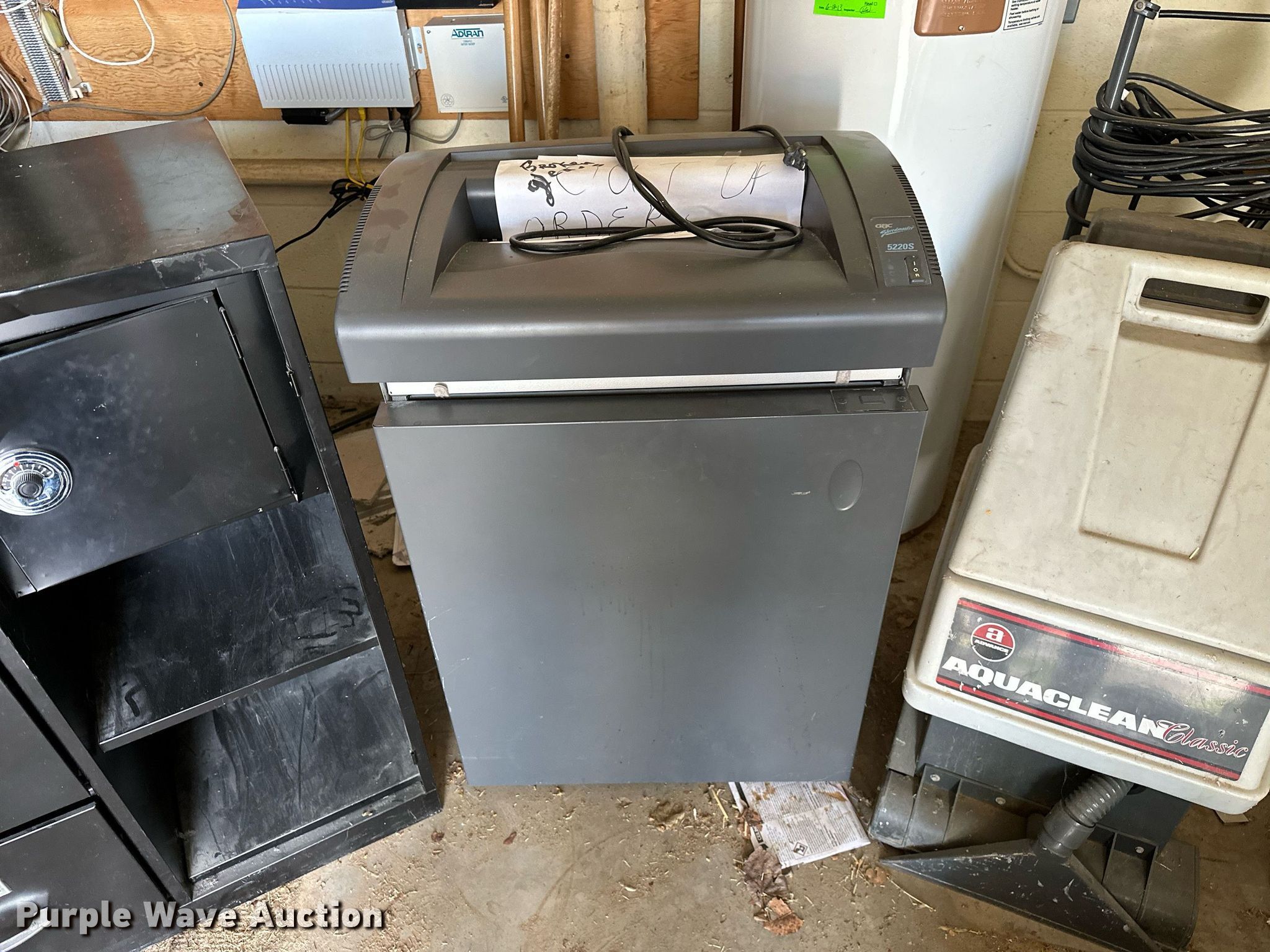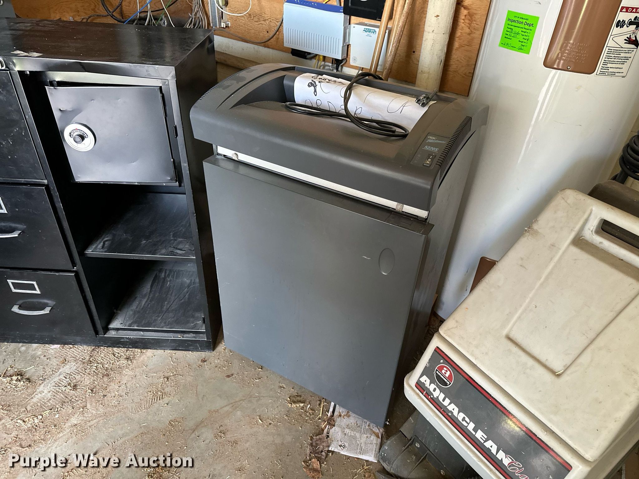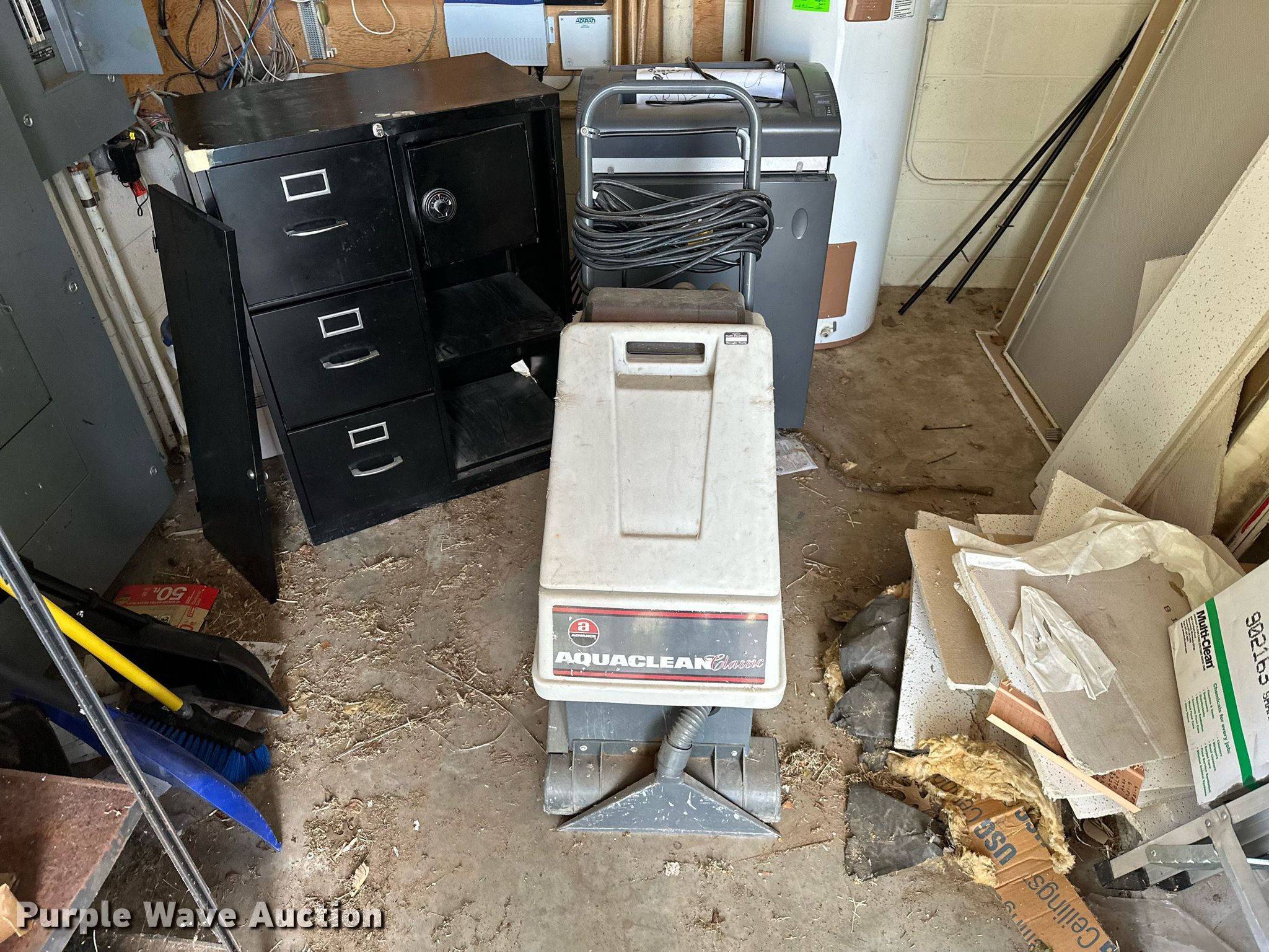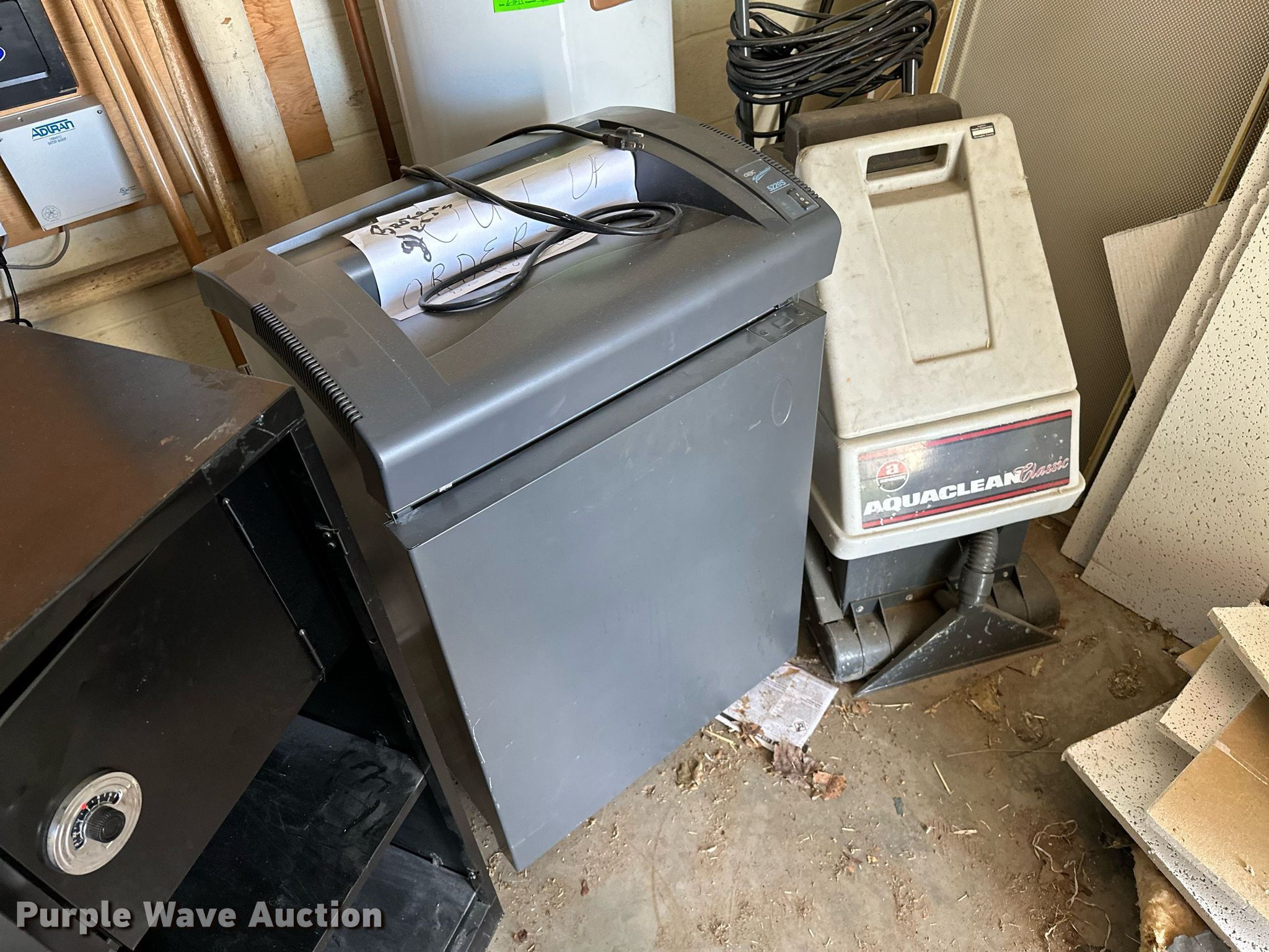 Purple Wave is selling a used Office Supplies and Equip. in Oklahoma. This item is a Office supplies with the following: Table, File cabinet, Broken, Projector screen, (2) paper shredders, One non-operational, Sunbeam microwave, KitchenAid ice maker, Non-operational, Aquaclean Classic carpet cleaner, Unknown operating condition