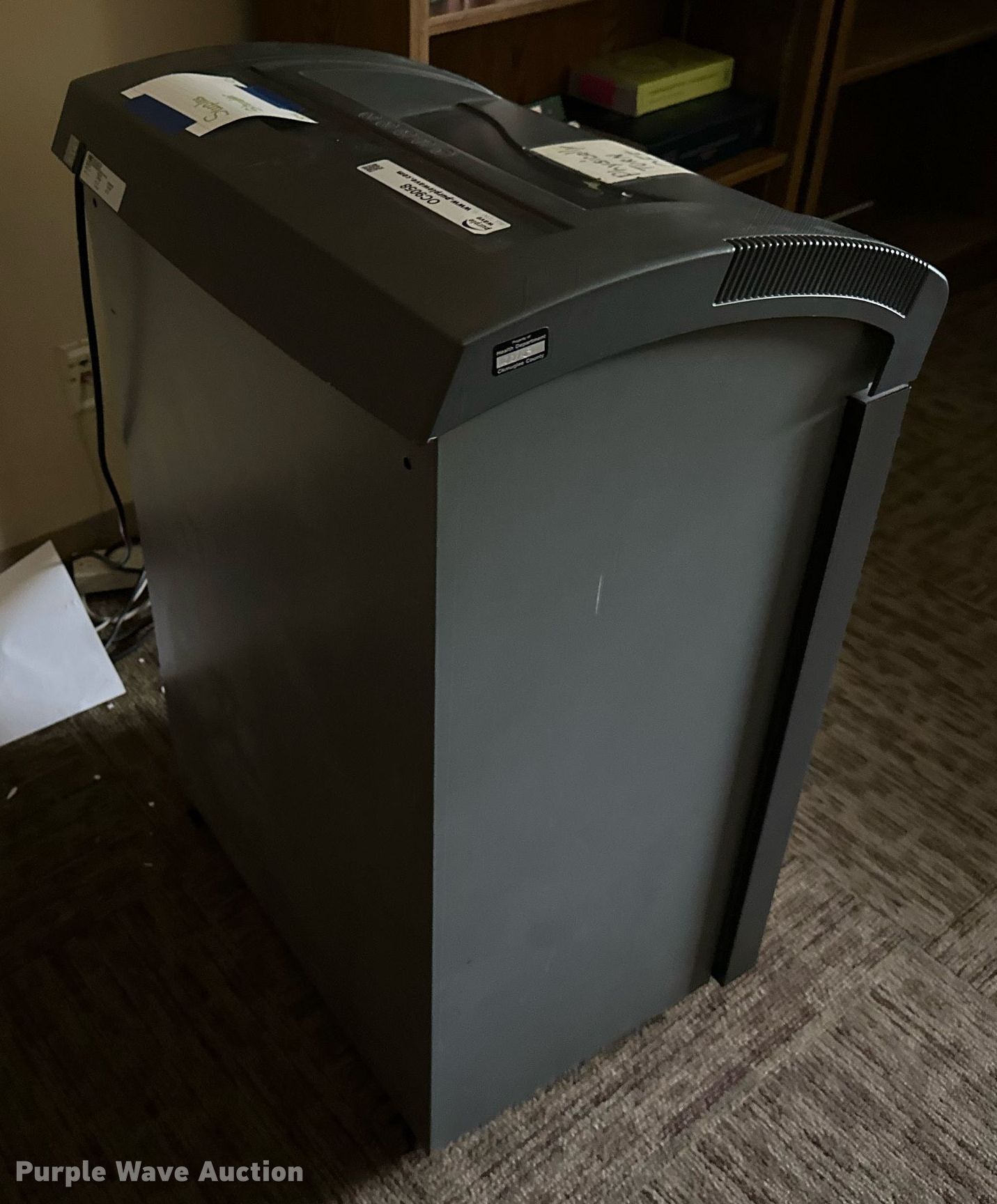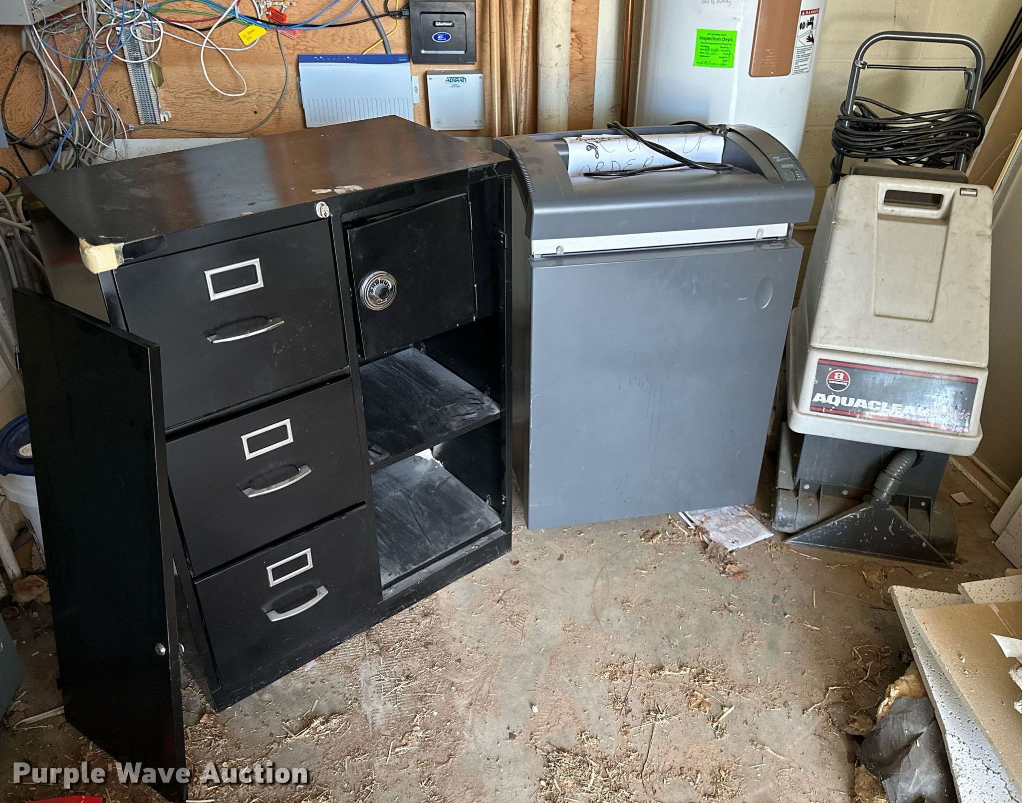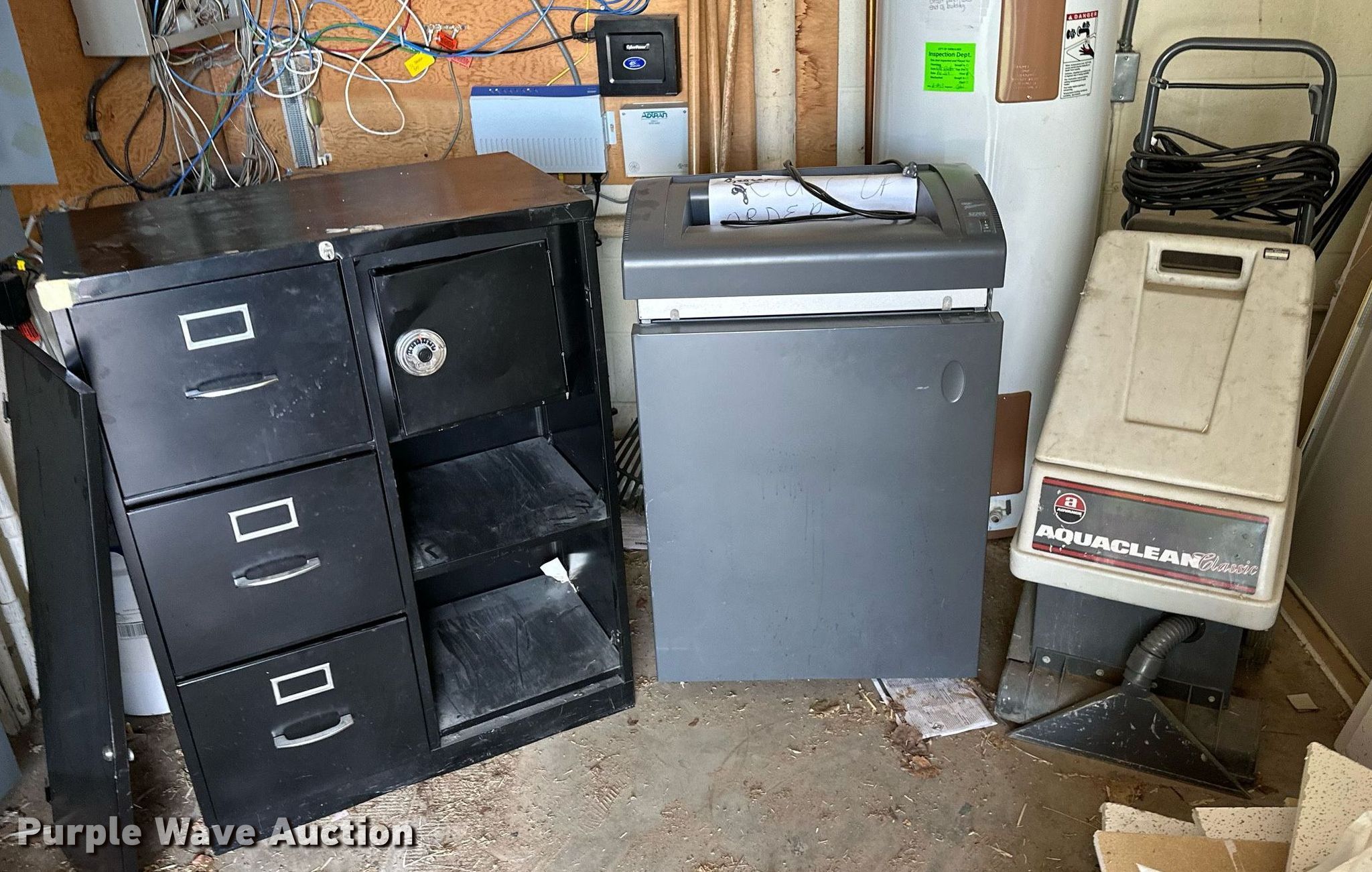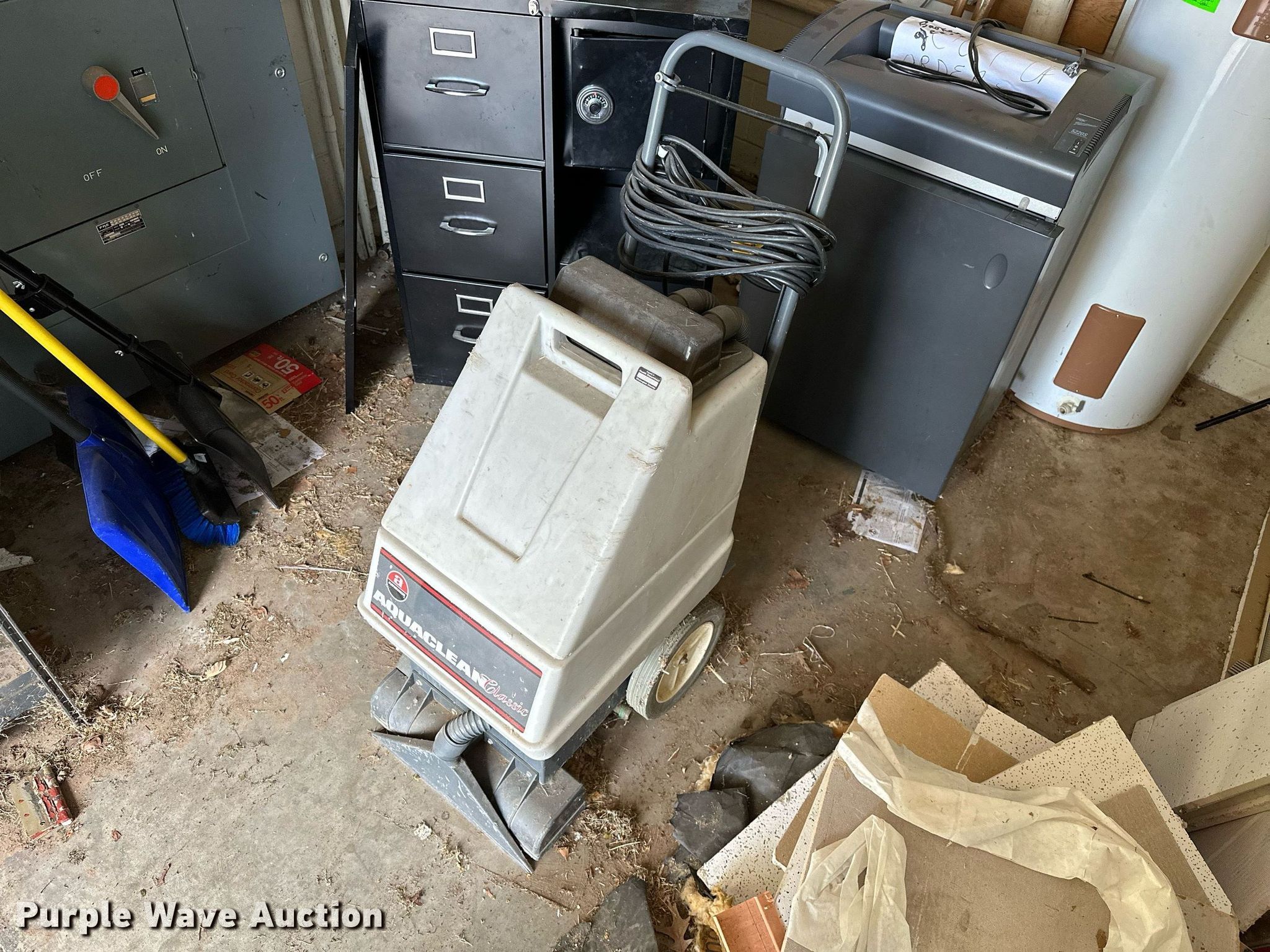 Purple Wave is selling a used Office Supplies and Equip. in Oklahoma. This item is a Office supplies with the following: Table, File cabinet, Broken, Projector screen, (2) paper shredders, One non-operational, Sunbeam microwave, KitchenAid ice maker, Non-operational, Aquaclean Classic carpet cleaner, Unknown operating condition