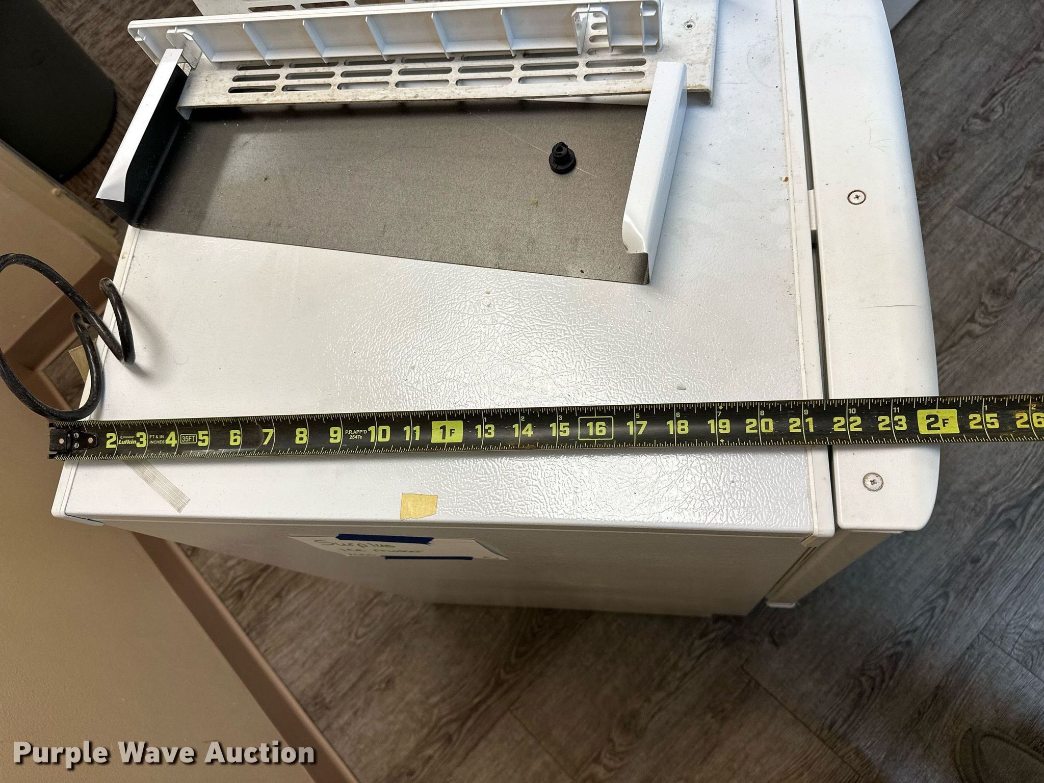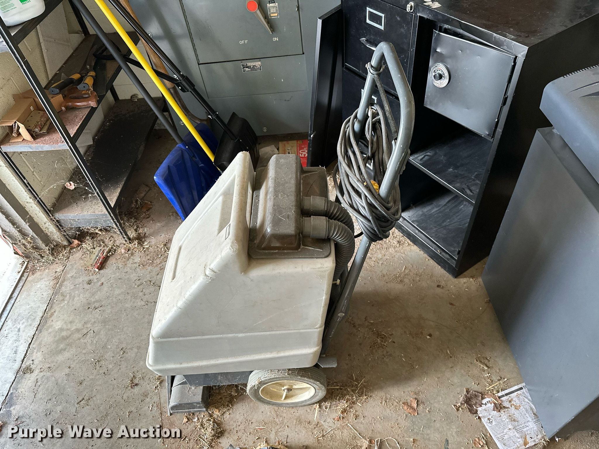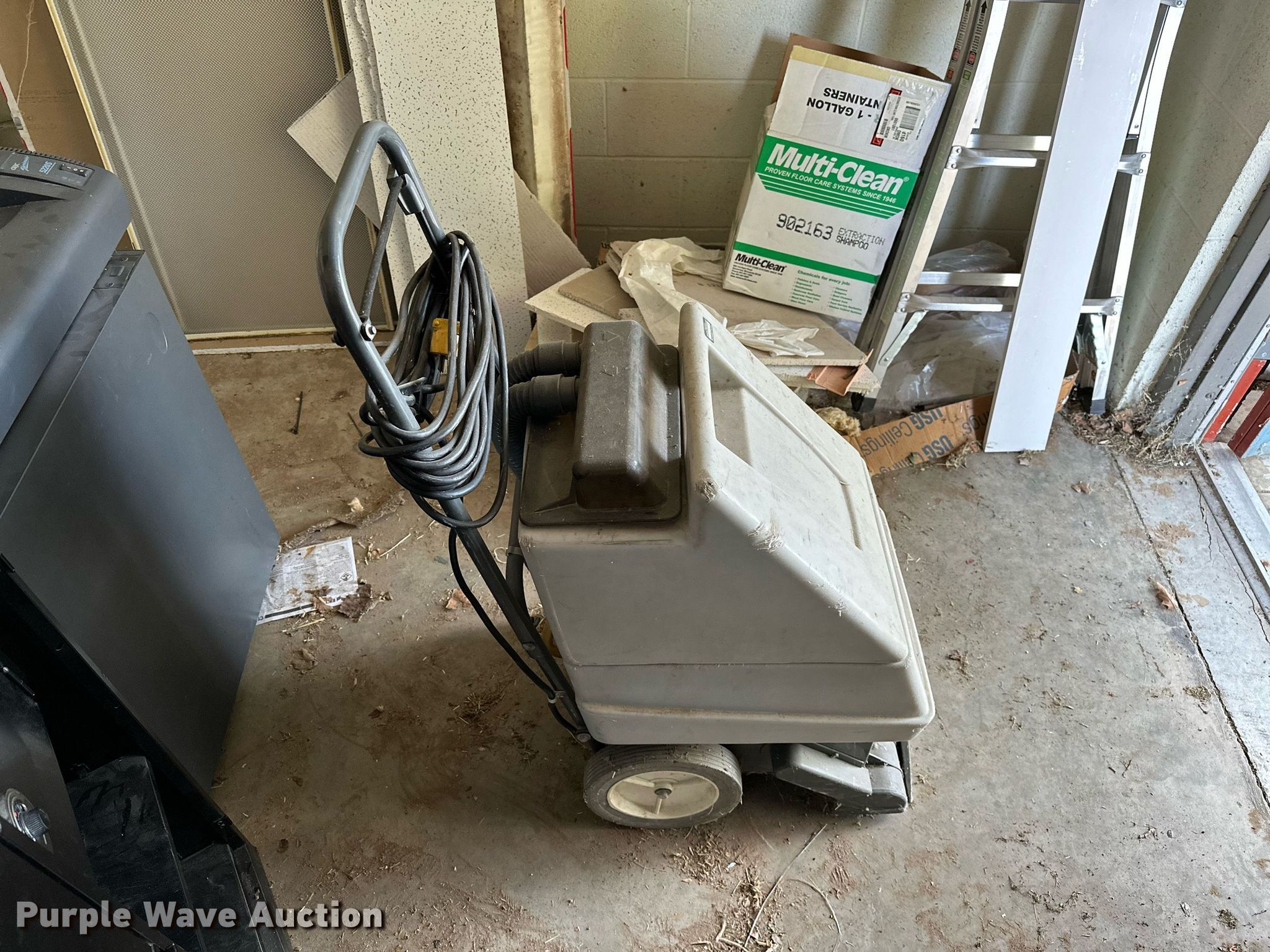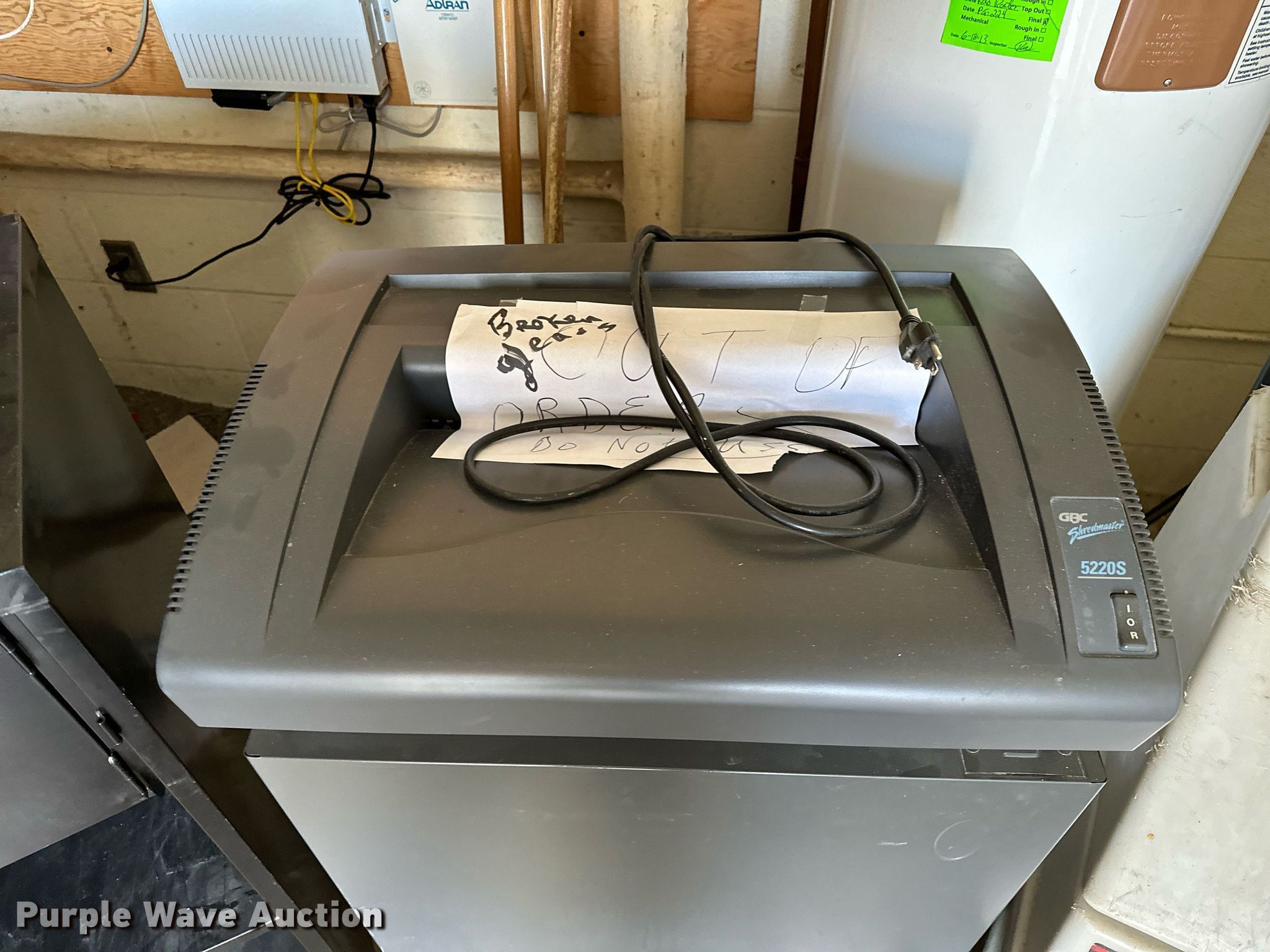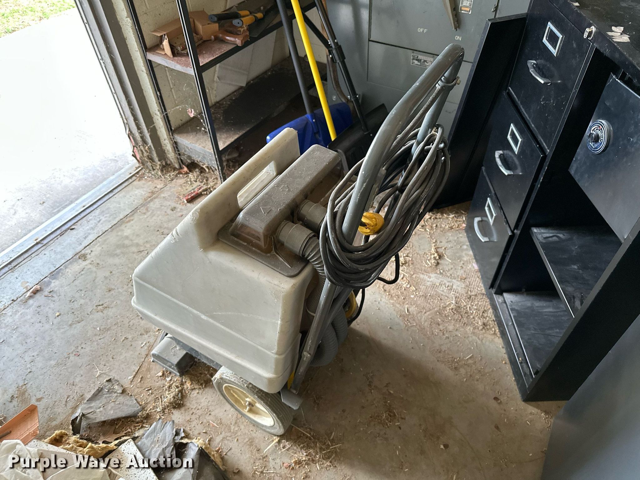 Purple Wave is selling a used Office Supplies and Equip. in Oklahoma. This item is a Office supplies with the following: Table, File cabinet, Broken, Projector screen, (2) paper shredders, One non-operational, Sunbeam microwave, KitchenAid ice maker, Non-operational, Aquaclean Classic carpet cleaner, Unknown operating condition
