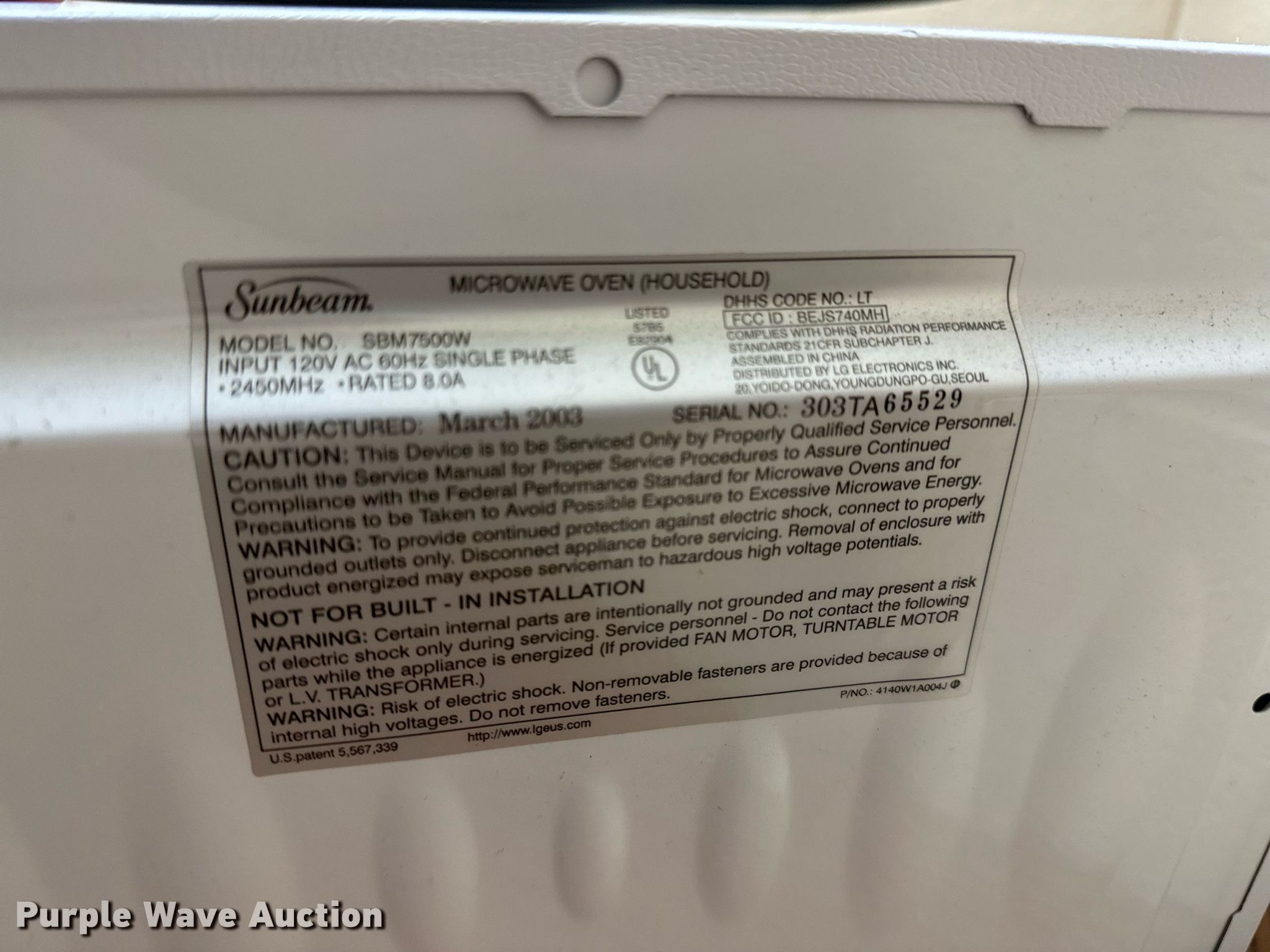 - Sunbeam microwave