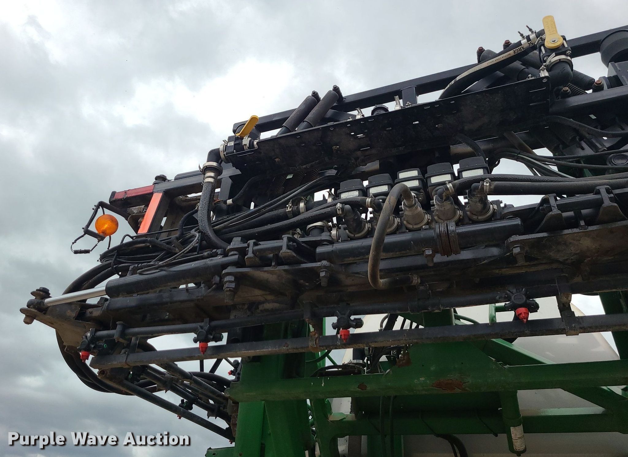 2012 John Deere 4730 sprayer. Hours: Unknown, VIN: 1NO4740XEB0018835. Engine John deere, Cylinders: 6, Fuel type: Diesel. Transmission Hydrostatic, Four wheel drive. Chassis Hydraulic axle width adjust. Operators station AC, Heat. Features Hydraulic ladder, Solution tank Capacity: 800 gallons, Type: Stainless Steel, Chemical eductor, Rinse tank, Clean water tank, Boom Width: 90', Sections: 7, Hydraulic boom fold, Hydraulic height control, Nozzle Spacing: 20".. Tires Size: 380/90R46. Notes Dead battery, Right side boom issue, damaged at folding point, Warning indicator: Parking brake safety fault indicator. 4901 South Limit Avenue. Sedalia, MO 65301