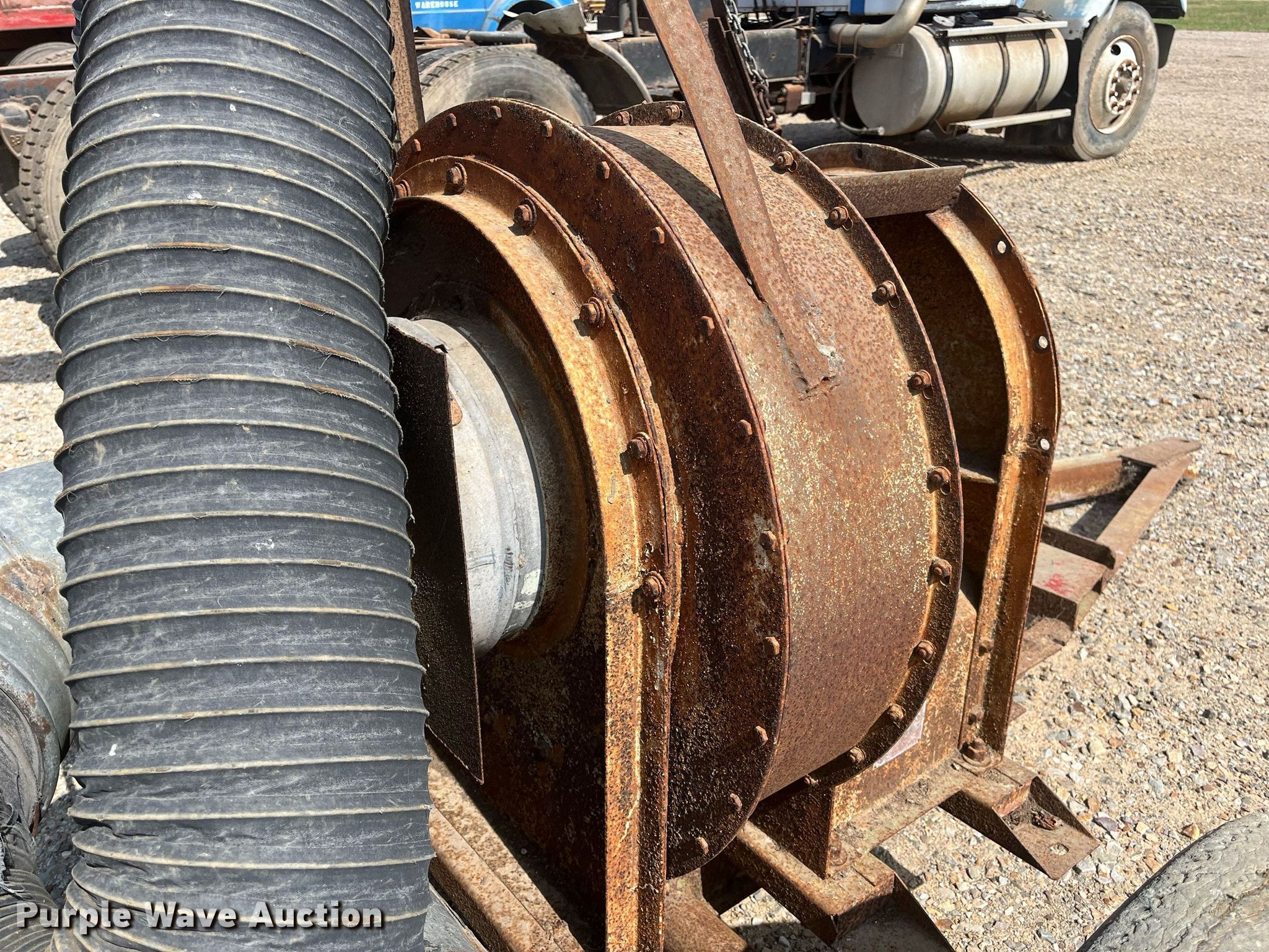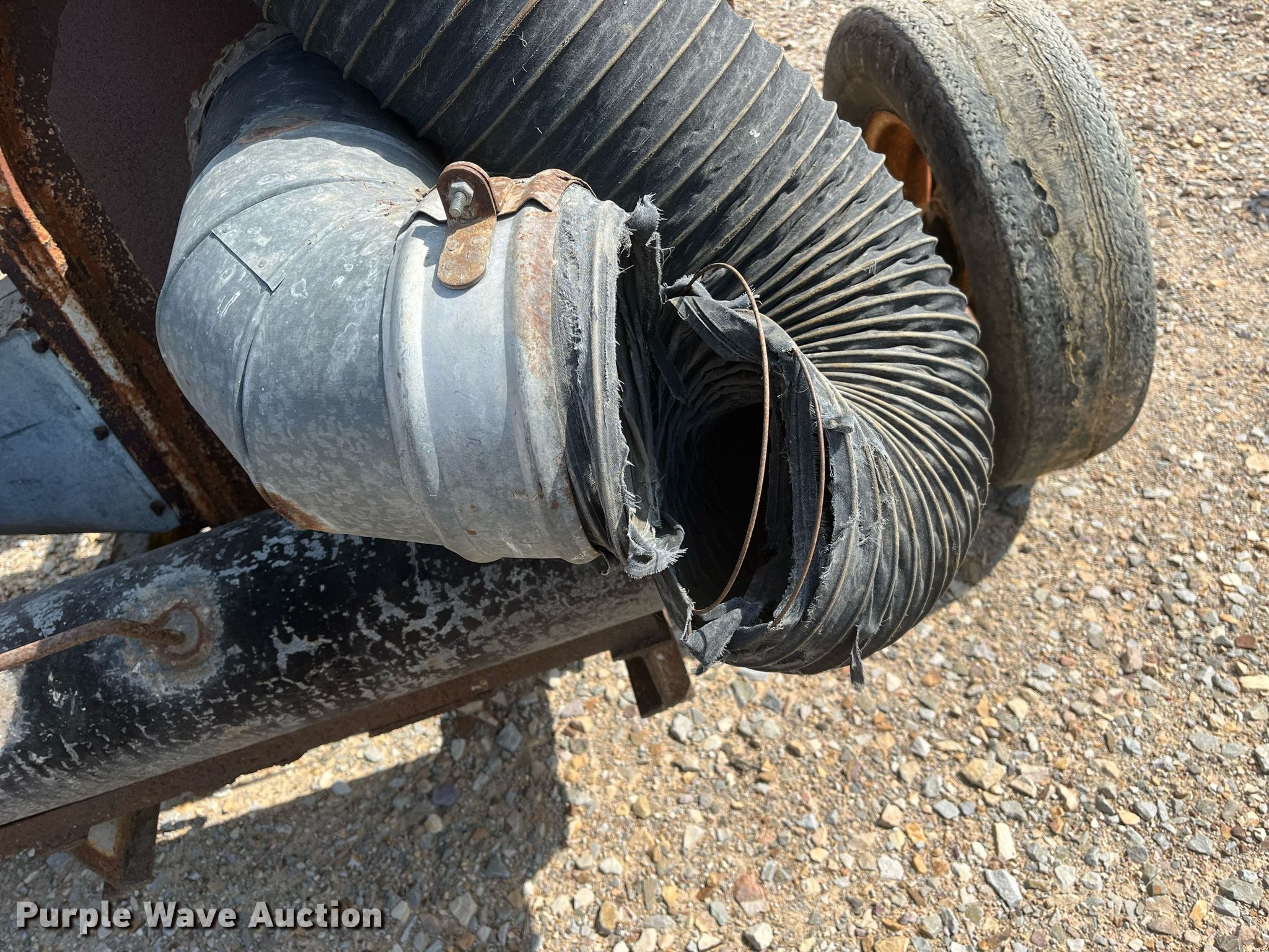 Moss-Gordin F2 series cotton gin blower. Serial: 116257. Features 16'L overall, 102"L x 84"W x 120"H, Type: D, Belt driven. Chassis Single axle. Notes Tires damaged, Unknown operating condition. PPF. 700 FM 1335. Cooper, TX 75432