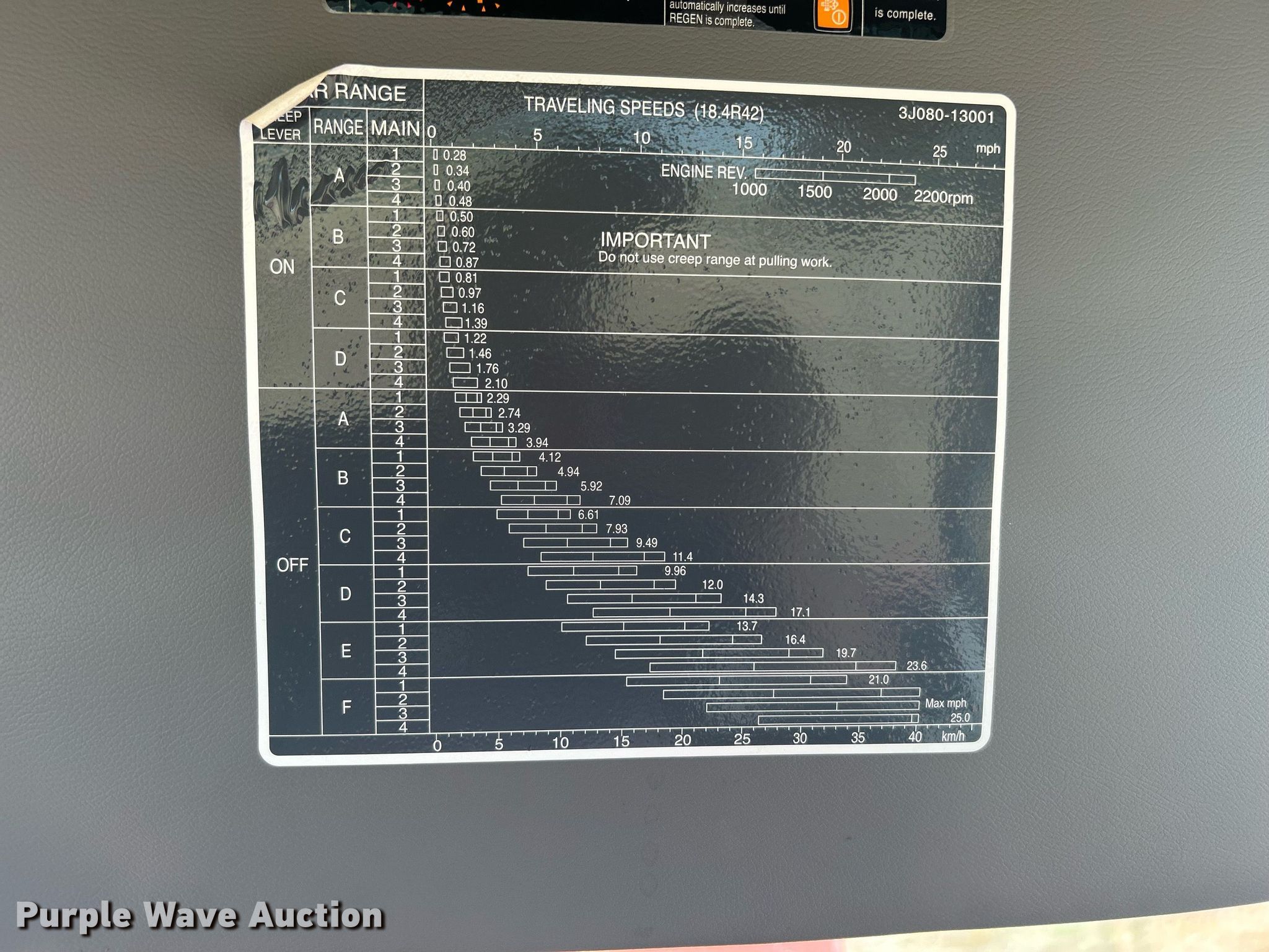 Kubota M7-171 Premium MFWD tractor. Hours: 792 on meter, Miles or hours may vary, unit still in use, Serial: 10110. Engine Kubota V6108-CR-TI-EV01, Displacement: 6.1L, Cylinders: 4, Fuel type: Diesel, kW: 129. Transmission Powershift, 40F - 40R, Left-hand reverser, Creeper, Differential lock. Operators station AC, Heat, Display, Auto steer. Features PTO: 540, 1000, Three point Top link, Seven pin outlet, ISOBUS outlet, Hydraulic remote sets Rear: 4, Power beyond (hydraulics), Loader Kubota LM2605, Quick attach, Self-leveling, Controls: Joystick, Bucket Width: 96".. Tires Front: 540/65R20, Rear: 650/65R38. Notes Additional wheels and tires included (2) 480/80R42, (2) 420/85R28. Quinton, OK 74561