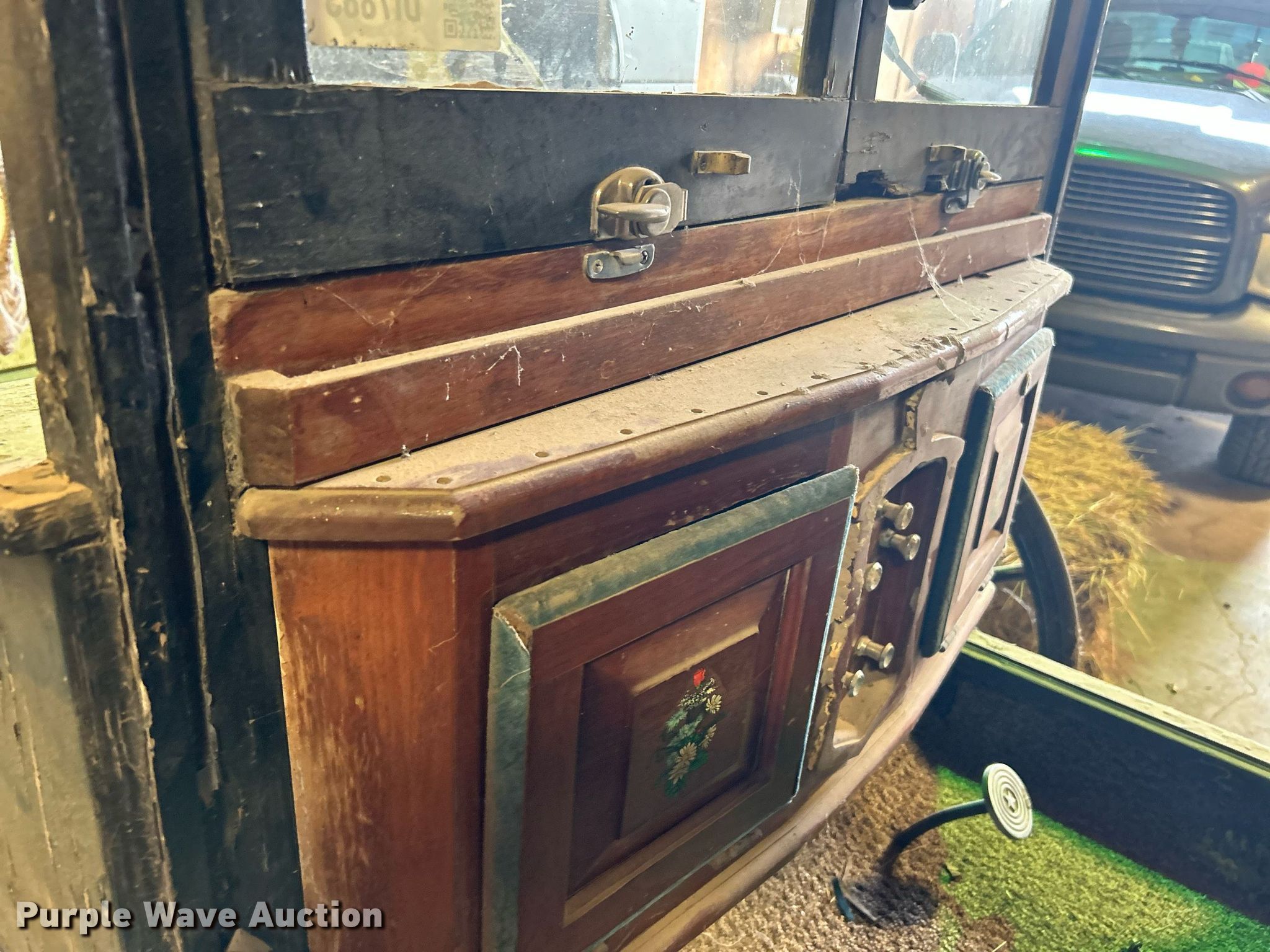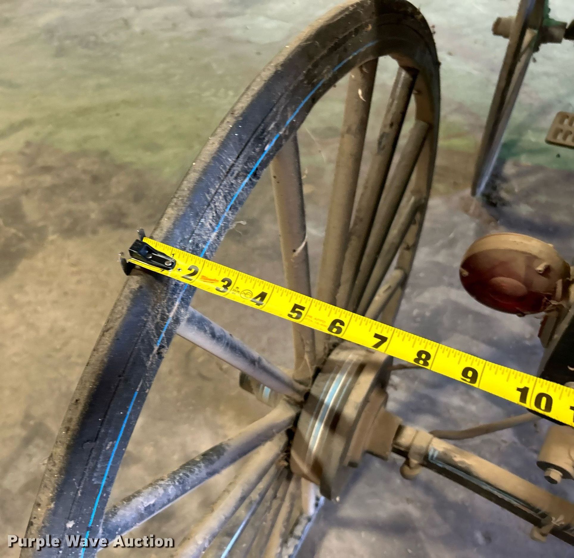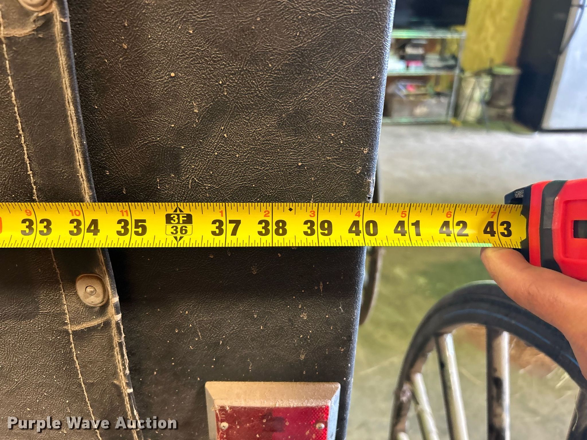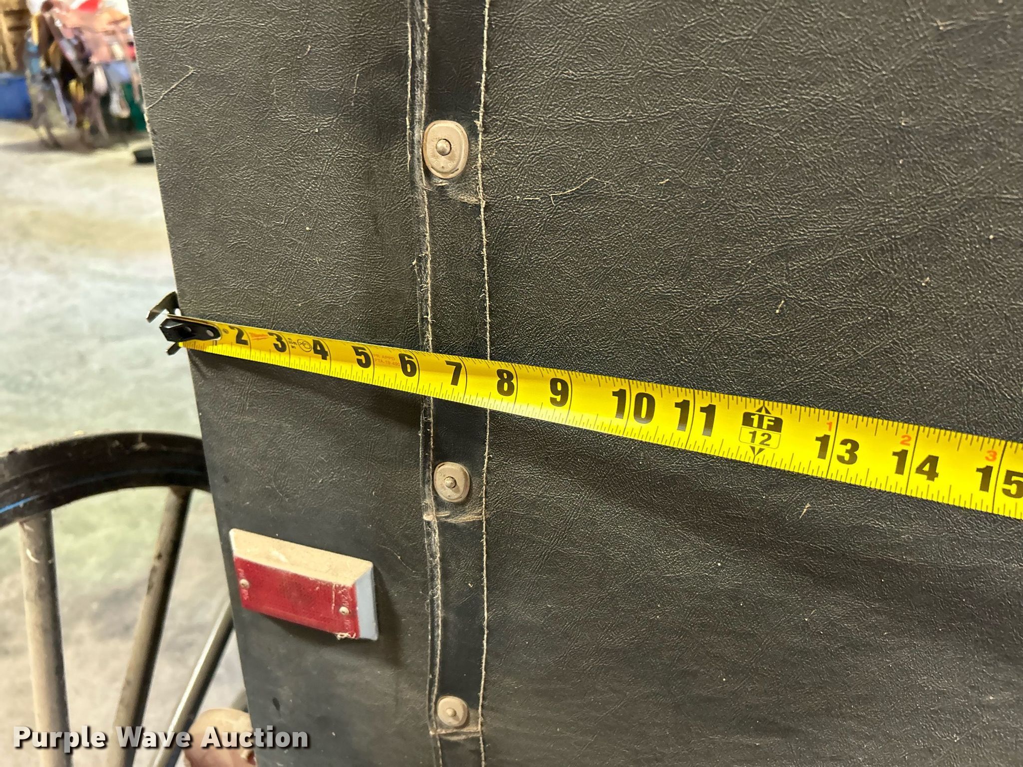 Purple Wave is selling a used Livestock Equip. in Oklahoma. This item is a Horse carriage with the following: Cab: 47"L x 40"W x 48"H, Suspension: Wooden spring, Wheels: 62"W x 9 1/2" H, Wood