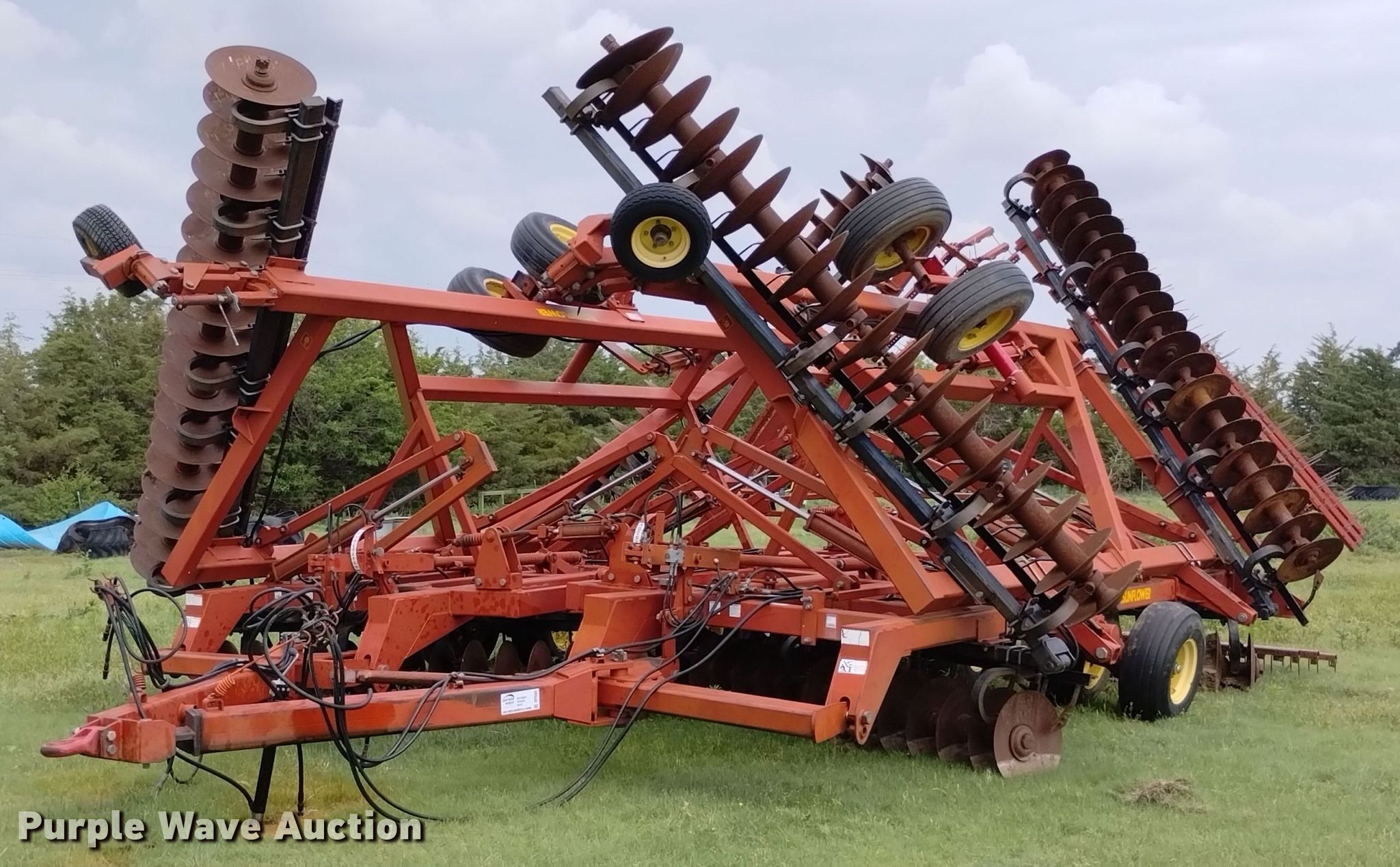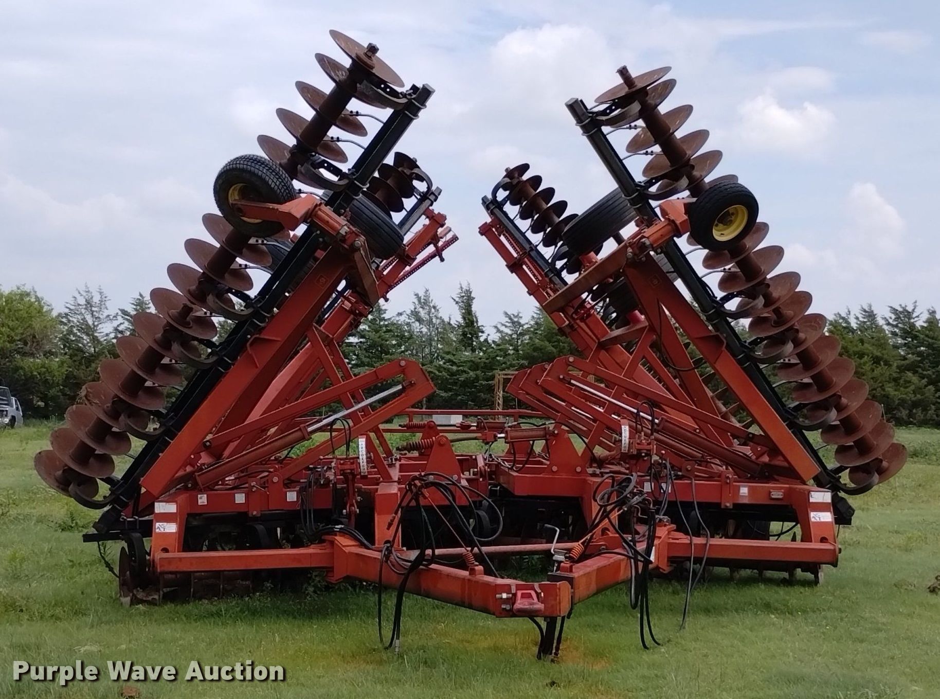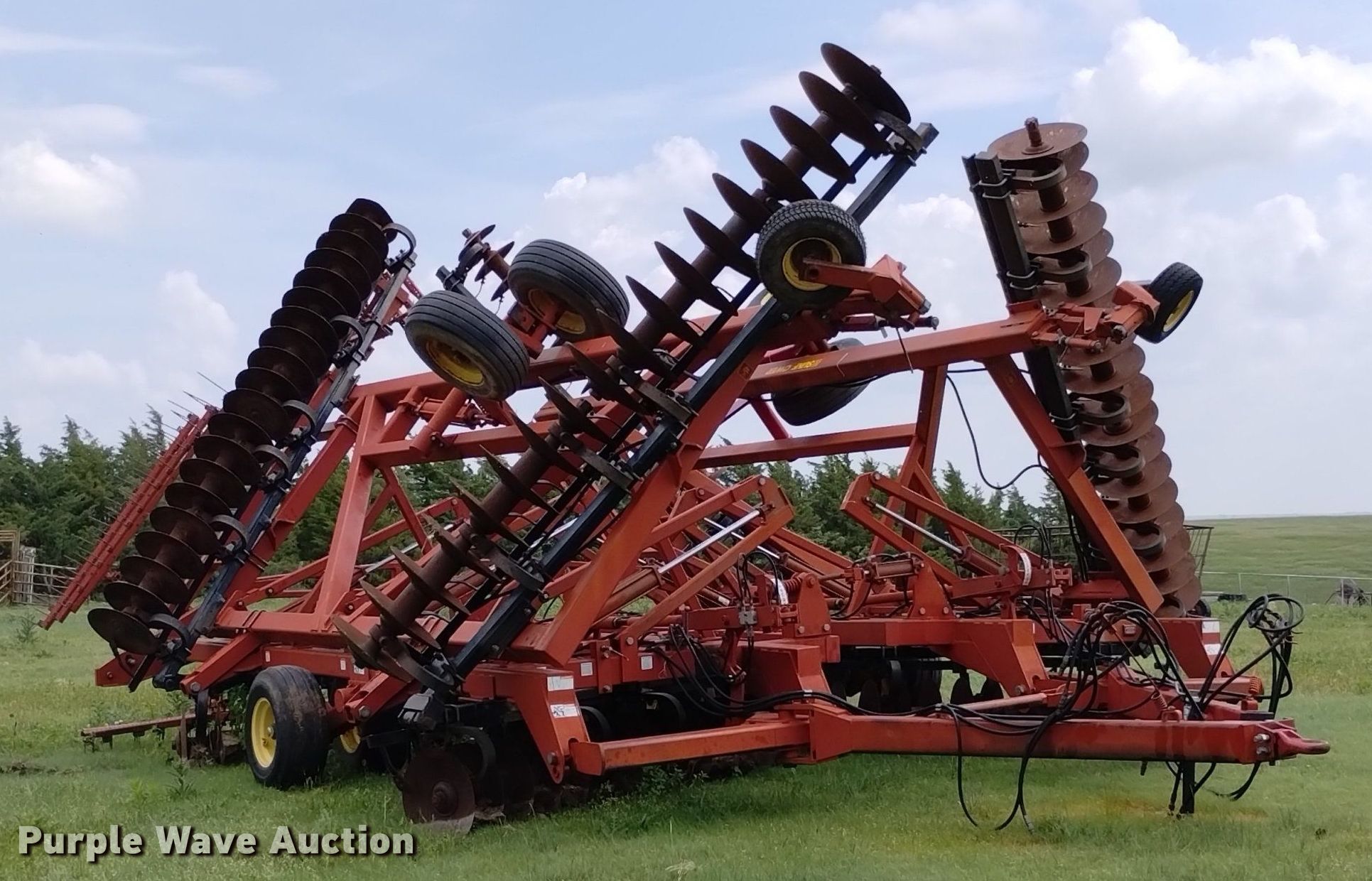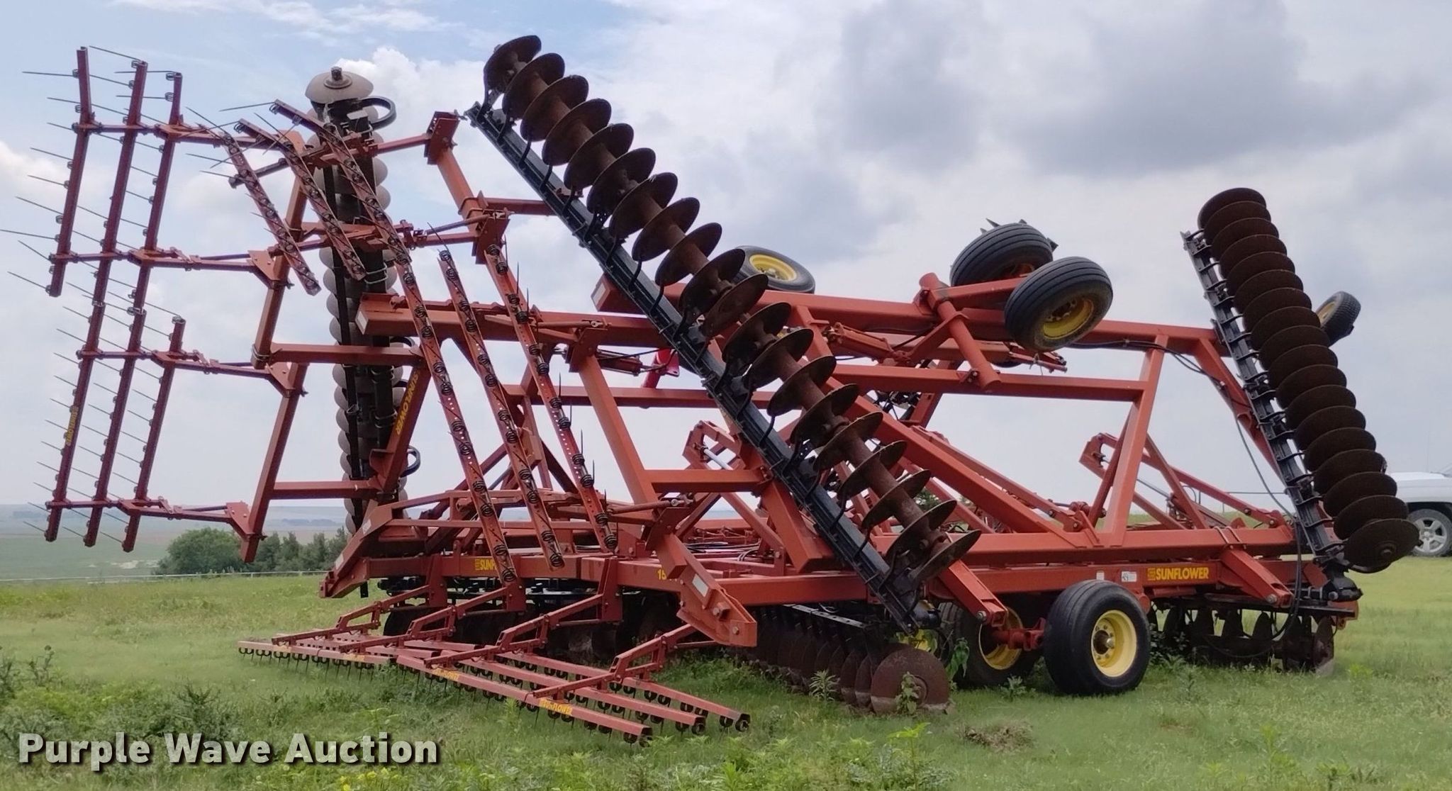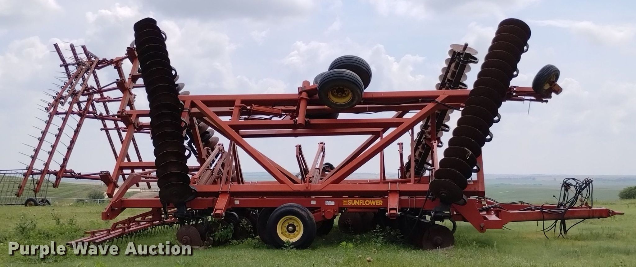 Purple Wave is selling a used Disk in Kansas. This item is a 1997 Sunflower 1544-45 double off-set disk with the following: Overall width: 45', Serial: 1597-581