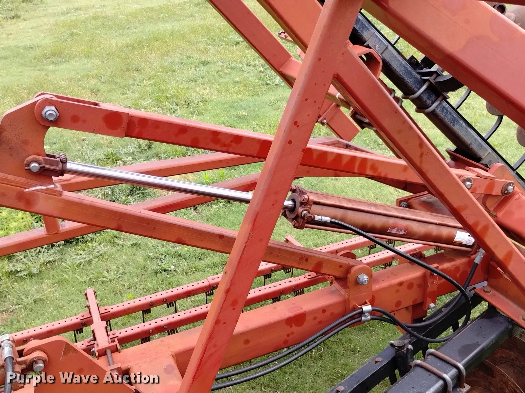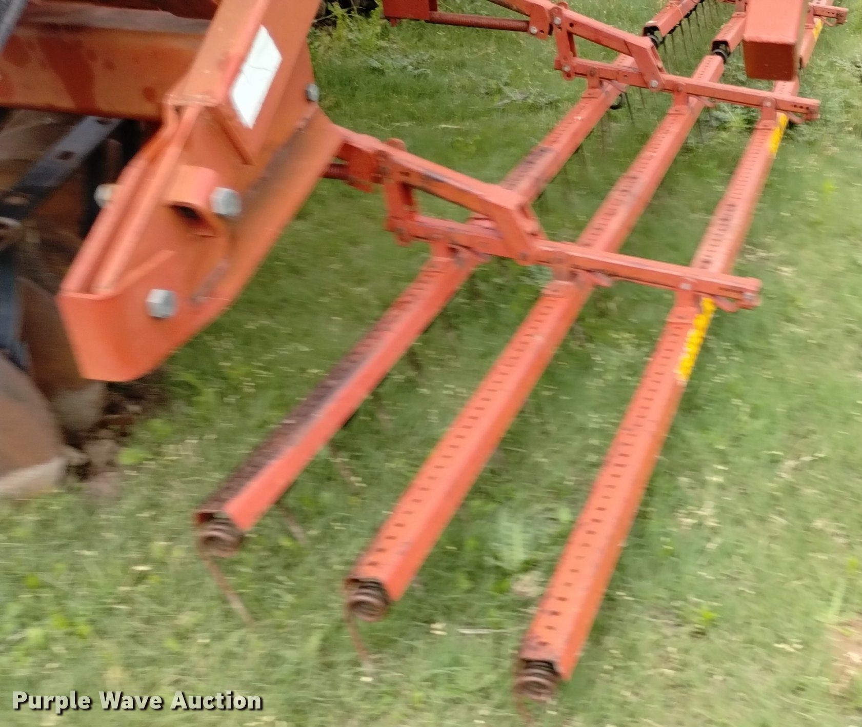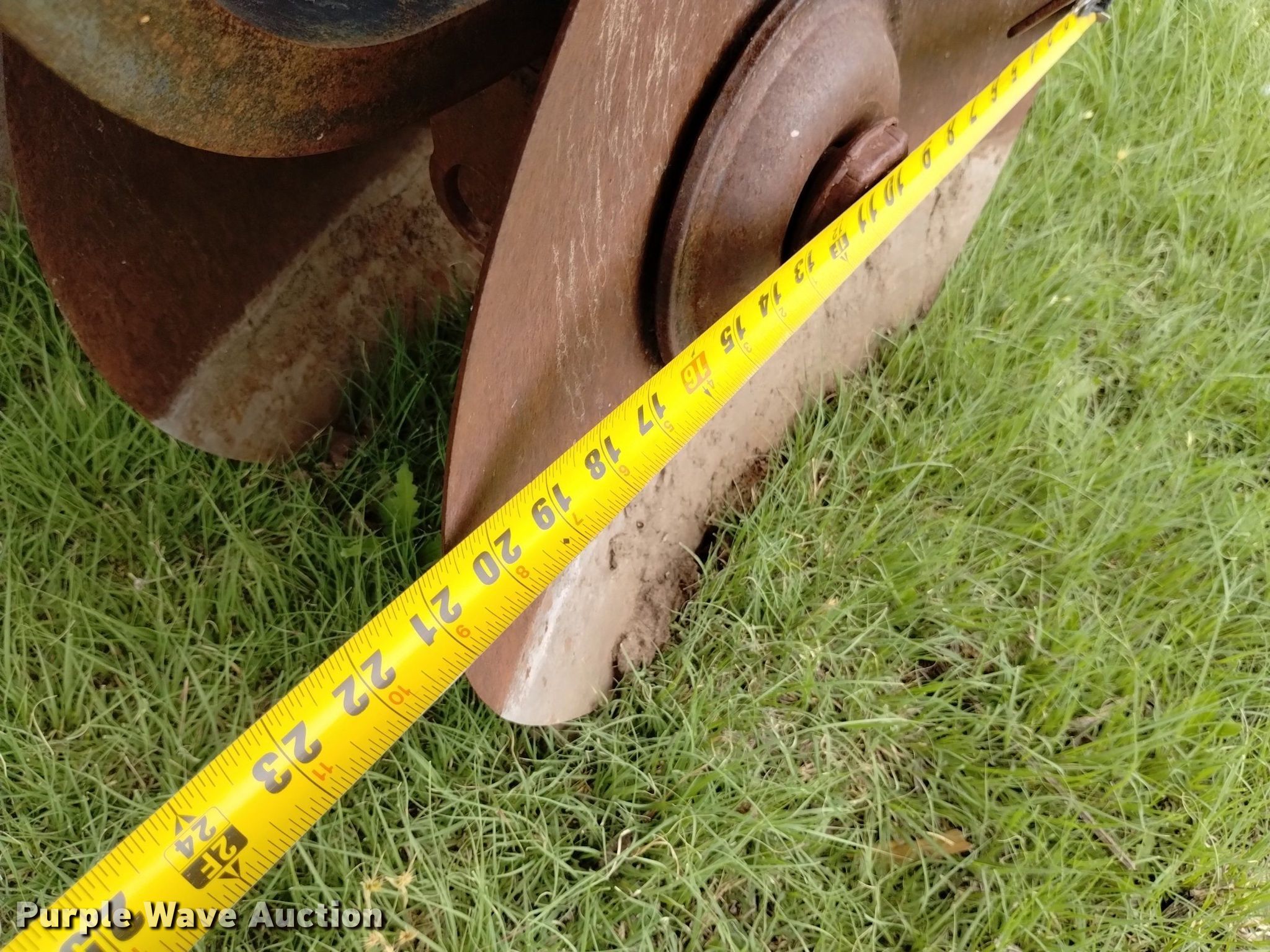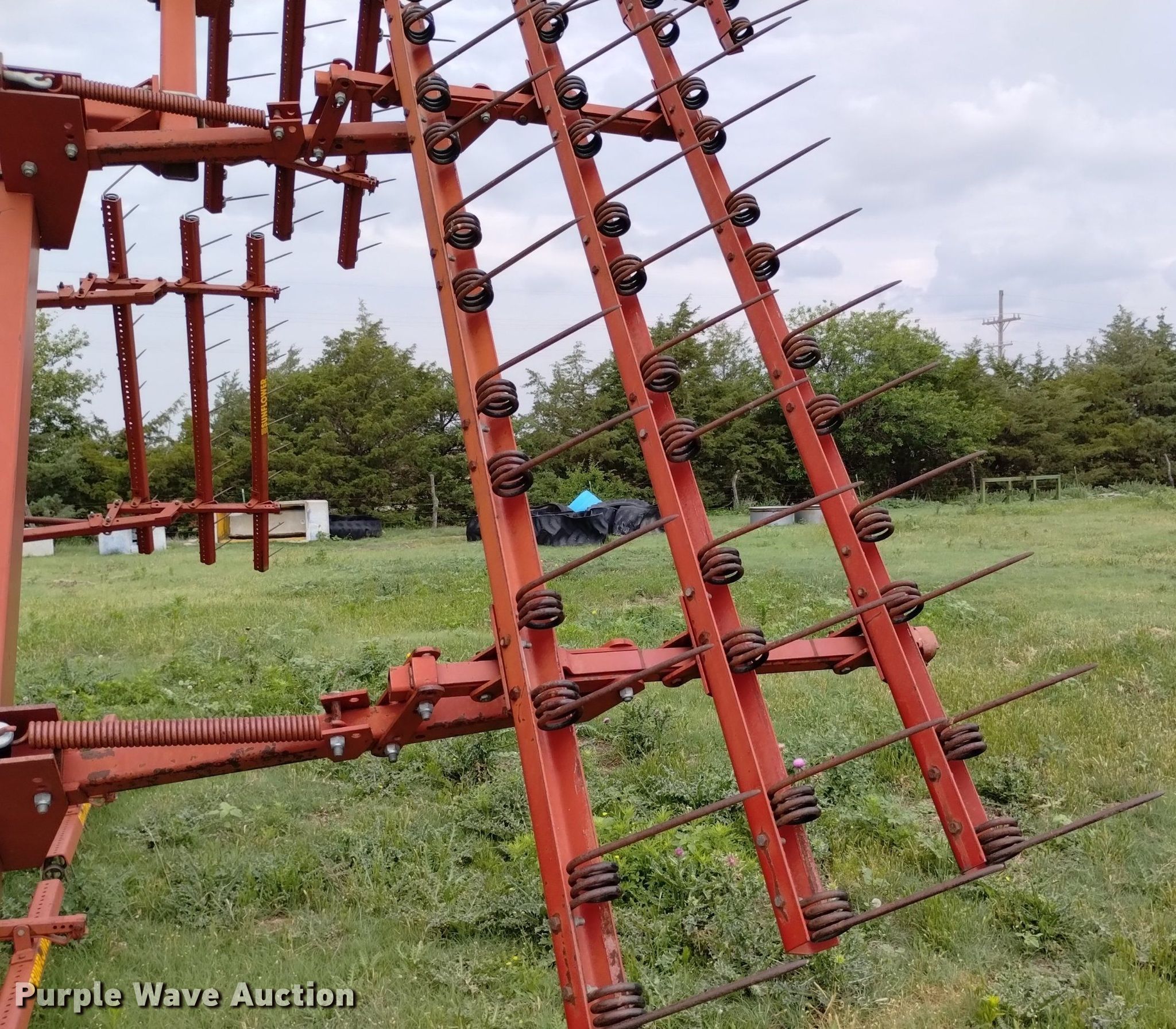 1997 Sunflower 1544-45 double off-set disk. Overall width: 45', Serial: 1597-581. Features Front blades Diameter: 20", Spacing: 8.5", Rear blades Diameter: 20", Spacing: 8.5", Disk scrapers, Operation Hydraulic lift, Hydraulic fold, Leveler: Hydraulic, Walking tandem axle, Attachments Tine harrow Harrow bars: 3.. Tires Tire size: 12.L-15FL, Gauge wheels Size: 205/65-10. Notes One axle needs replaced. Rock'n R Angus. 2206 24 Road. Natoma, KS 67651