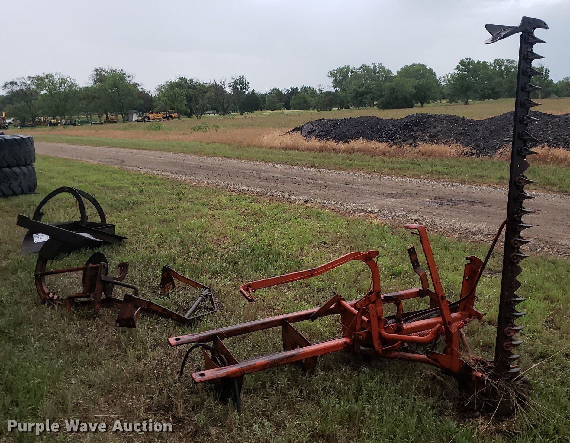 Purple Wave is selling a used Ag Equip. Other in Kansas. This item is a (3) pieces of ag equipment with the following: Dirt scoop, Hitch: Three point, One bottom plow, Hitch: Three point, Sickle mower, Width: 6'