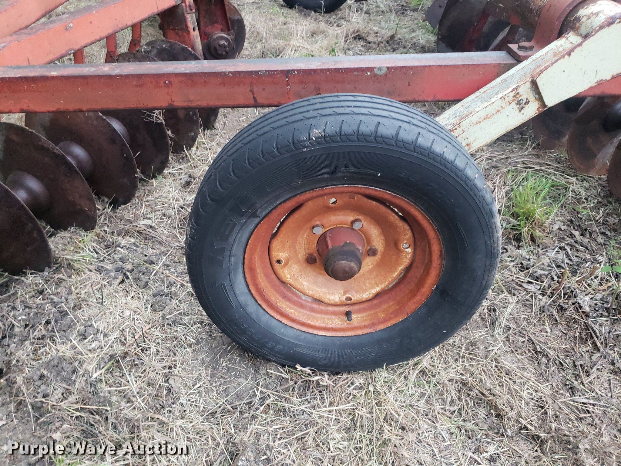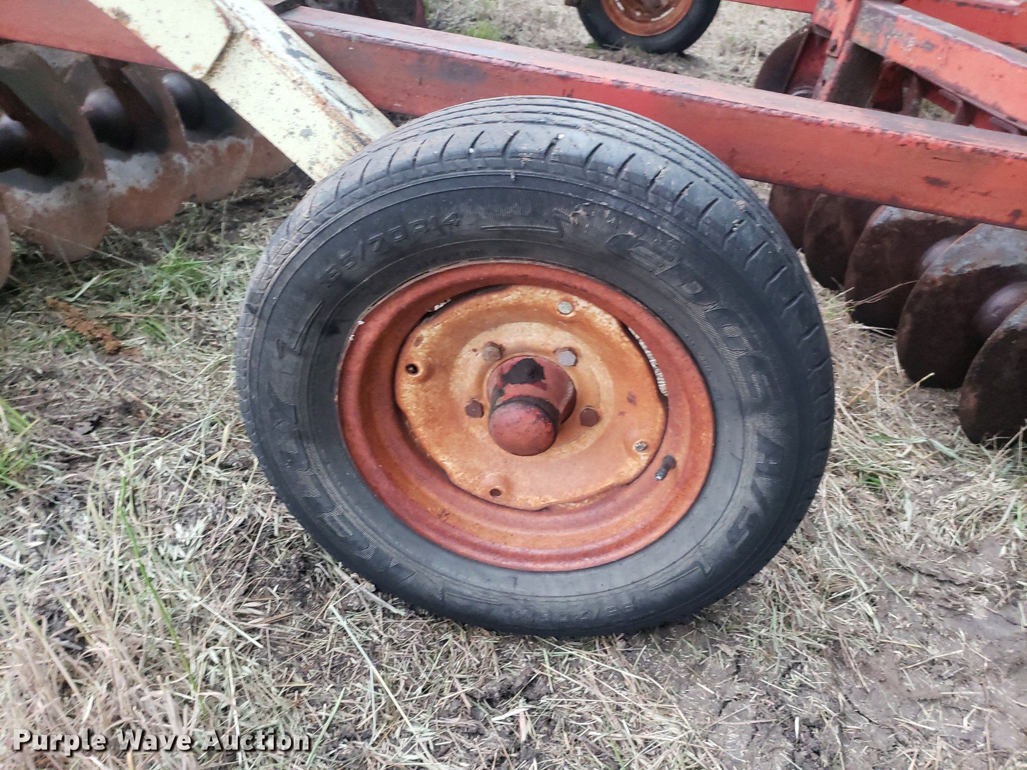 Tandem disk. Overall width: 15'. Features Front blades Diameter: 16", Spacing: 7.5", Rear blades Diameter: 15", Spacing: 7.5", Disk scrapers. Tires Tire size: 195/79. Derby, KS 67037