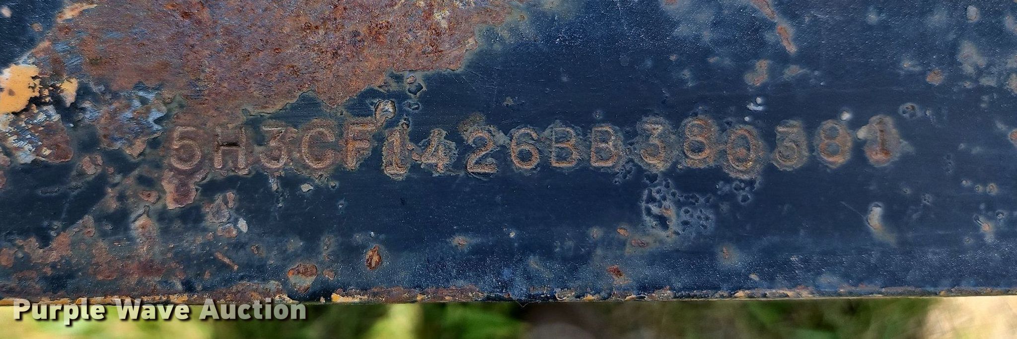 2011 Taylor Made utility trailer. VIN: 5H3CF1426BB380381. Dimensions Overall: 18' 3" L x 8' 6" W, Deck: 12' L x 6' 4" W, Deck height: 21", Tail length: 20", Ramps: Manual Length: 5'. Features Deck type: Wood. Chassis Ball hitch: 2 5/16", Hitch: Pintle, Landing gear: Single, Suspension: Spring, Brakes: Electric, Axles: Tandem. Tires Steel wheels, Size: 225/75R15. Kansas title. Title distribution may be delayed up to 14 days from verification of funds. Richmond, KS 66080