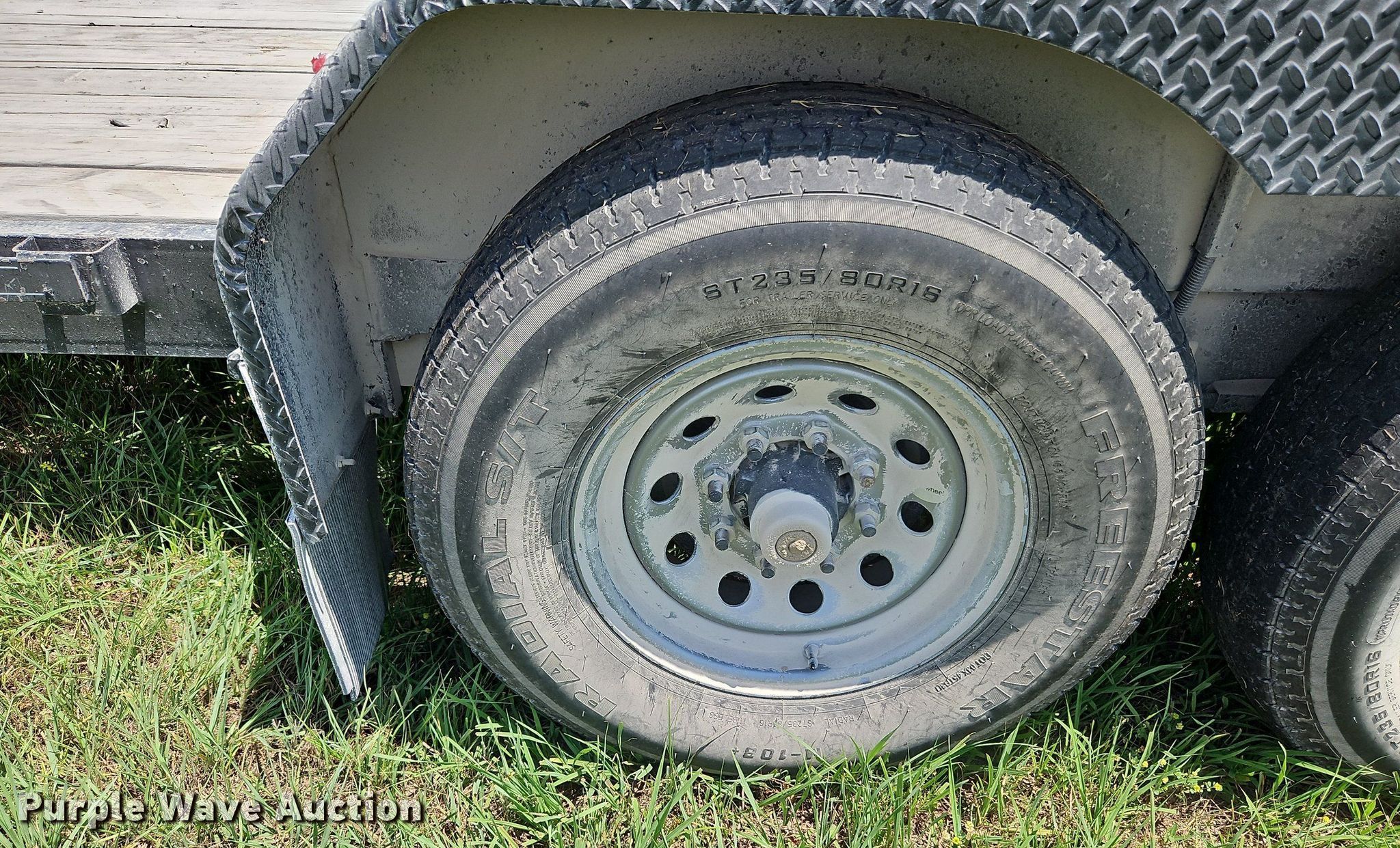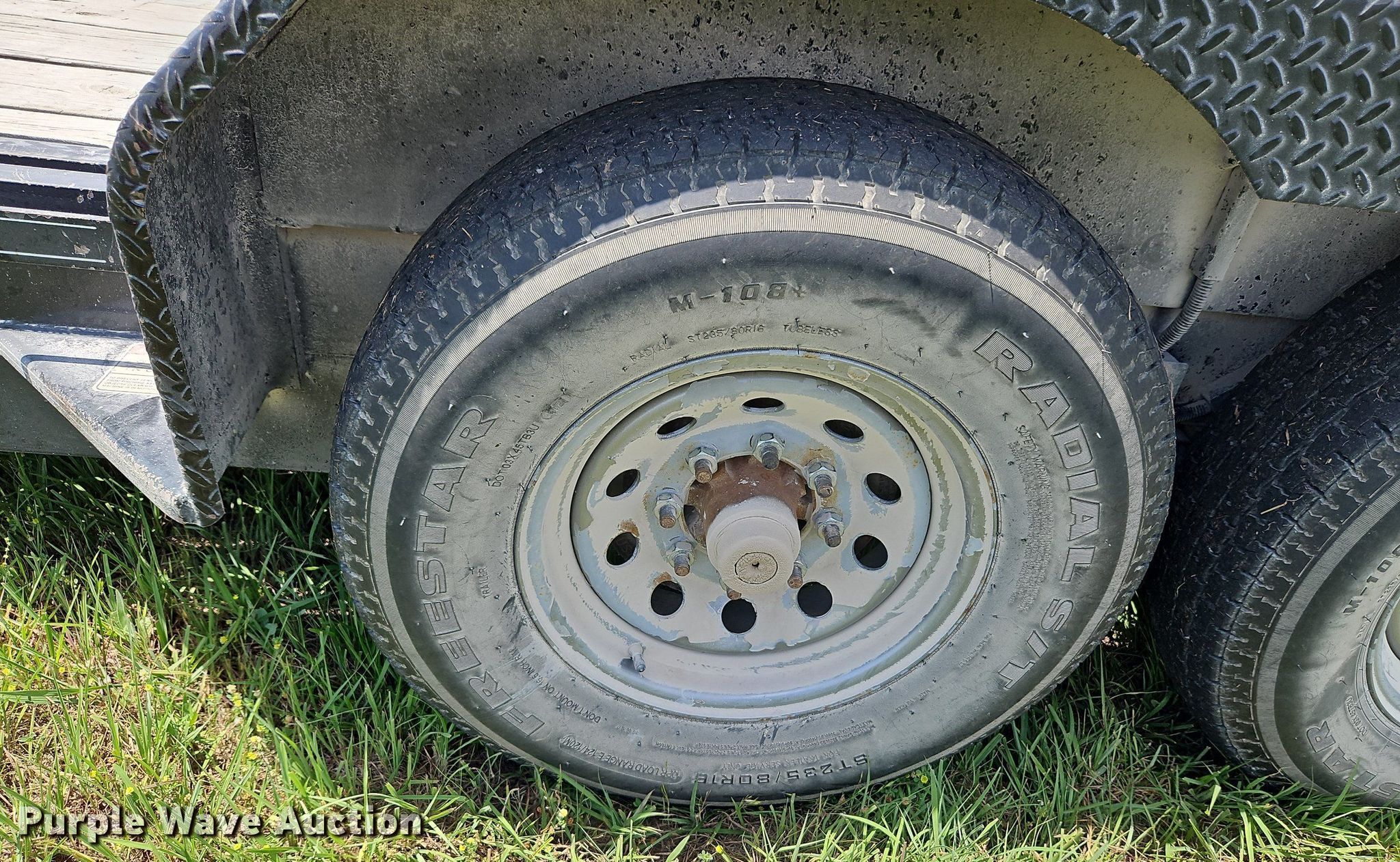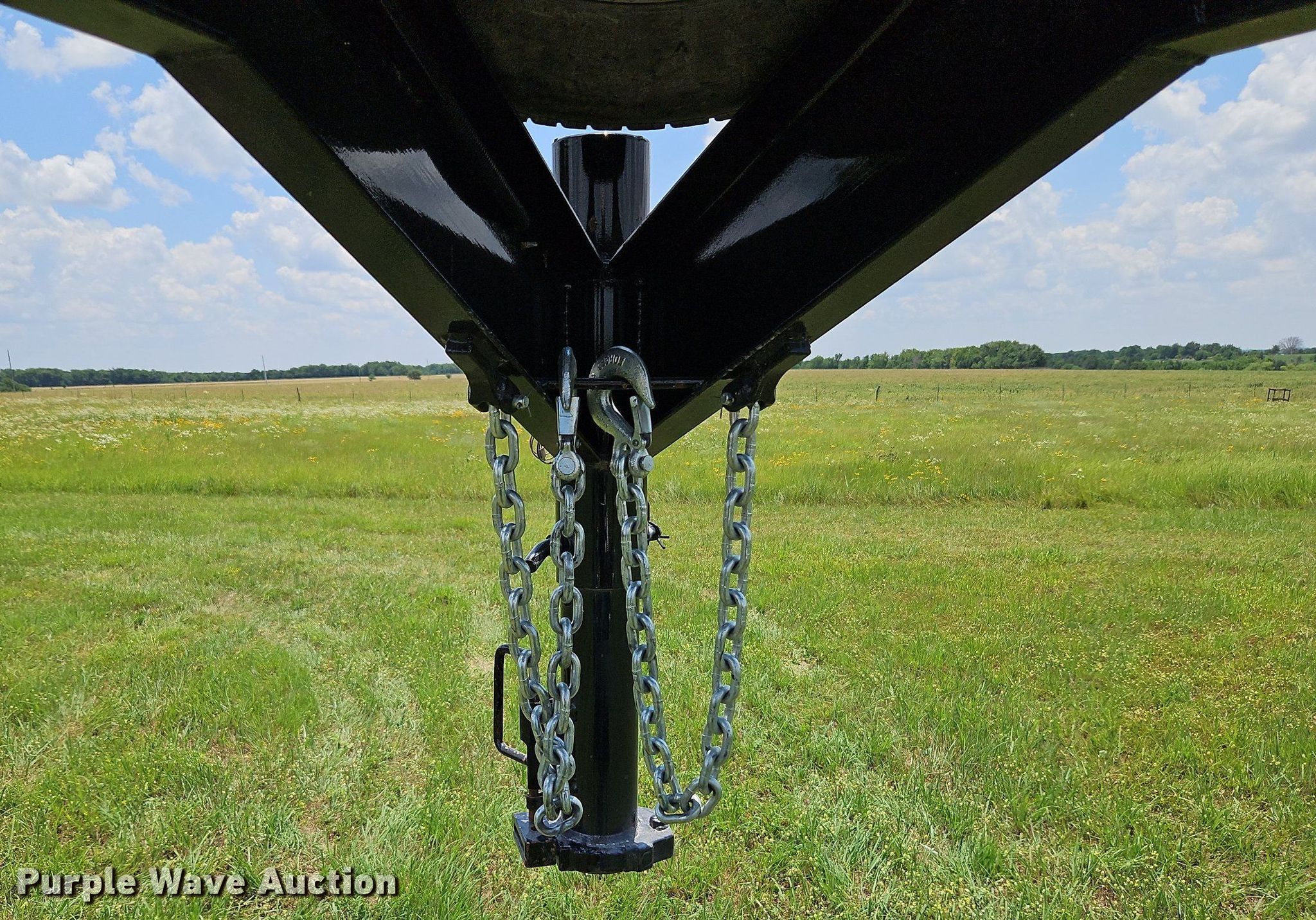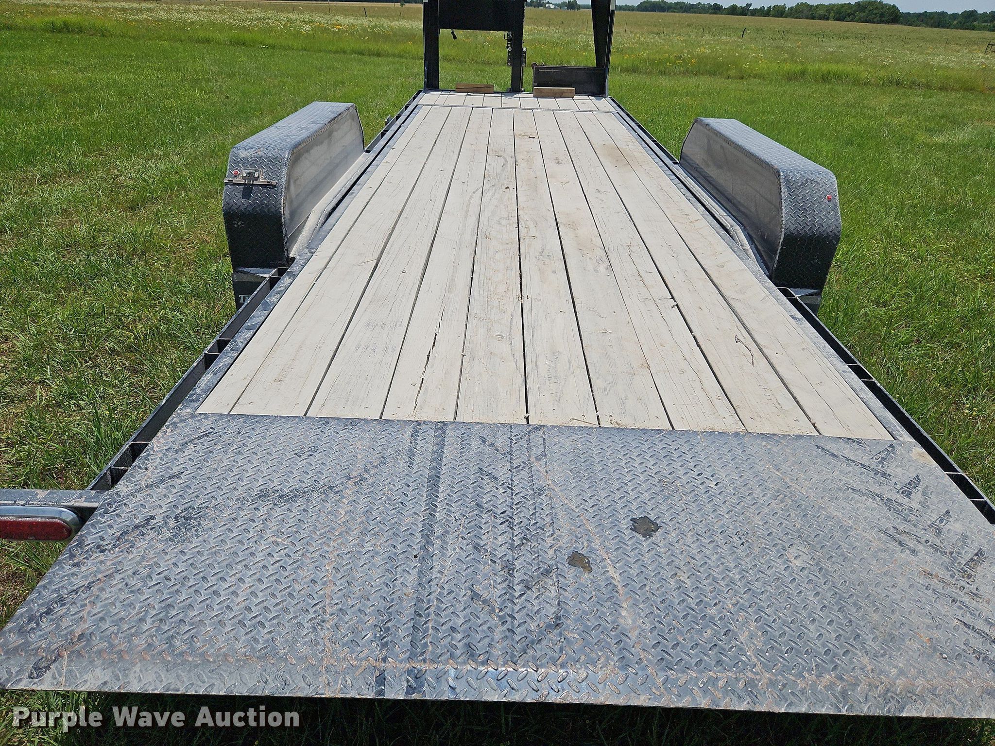 2018 Travalong tilt deck equipment trailer. VIN: 1R9FS2427J1784180. Dimensions Overall: 32' 4" L x 8' 6" W, Deck: 24' L x 7' W, Deck height: 22", Hydratail length: 20' 3". Features Deck type: Wood, Self-contained hydraulics, Hydraulic controls: Remote control. Chassis Hitch: Gooseneck, Landing gear: Single, Hydraulic, Suspension: Spring, Brakes: Electric, Axles: Tandem, GVWR: 14,000 lbs, GAWR: 7,000 lbs. Tires Steel wheels, Size: 235/80R16. Notes Winch not included. Kansas title. Title distribution may be delayed up to 14 days from verification of funds. Richmond, KS 66080