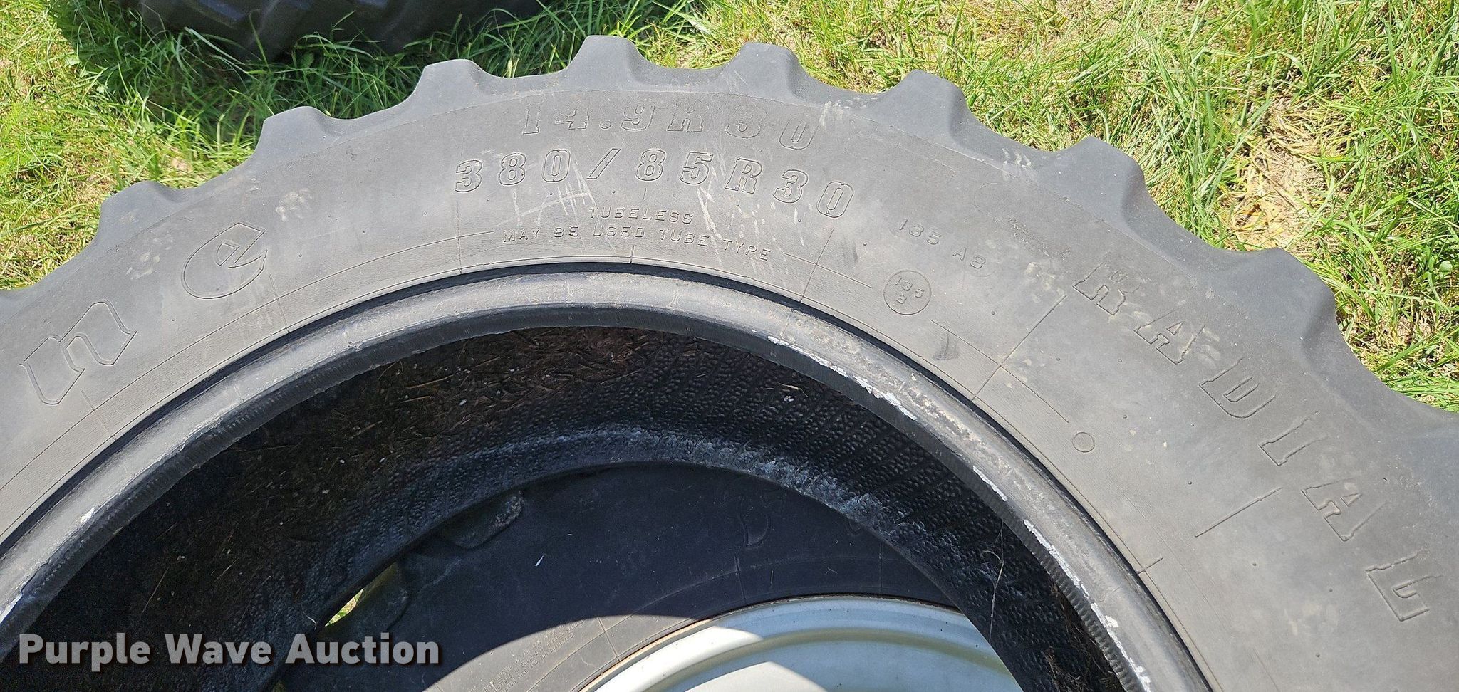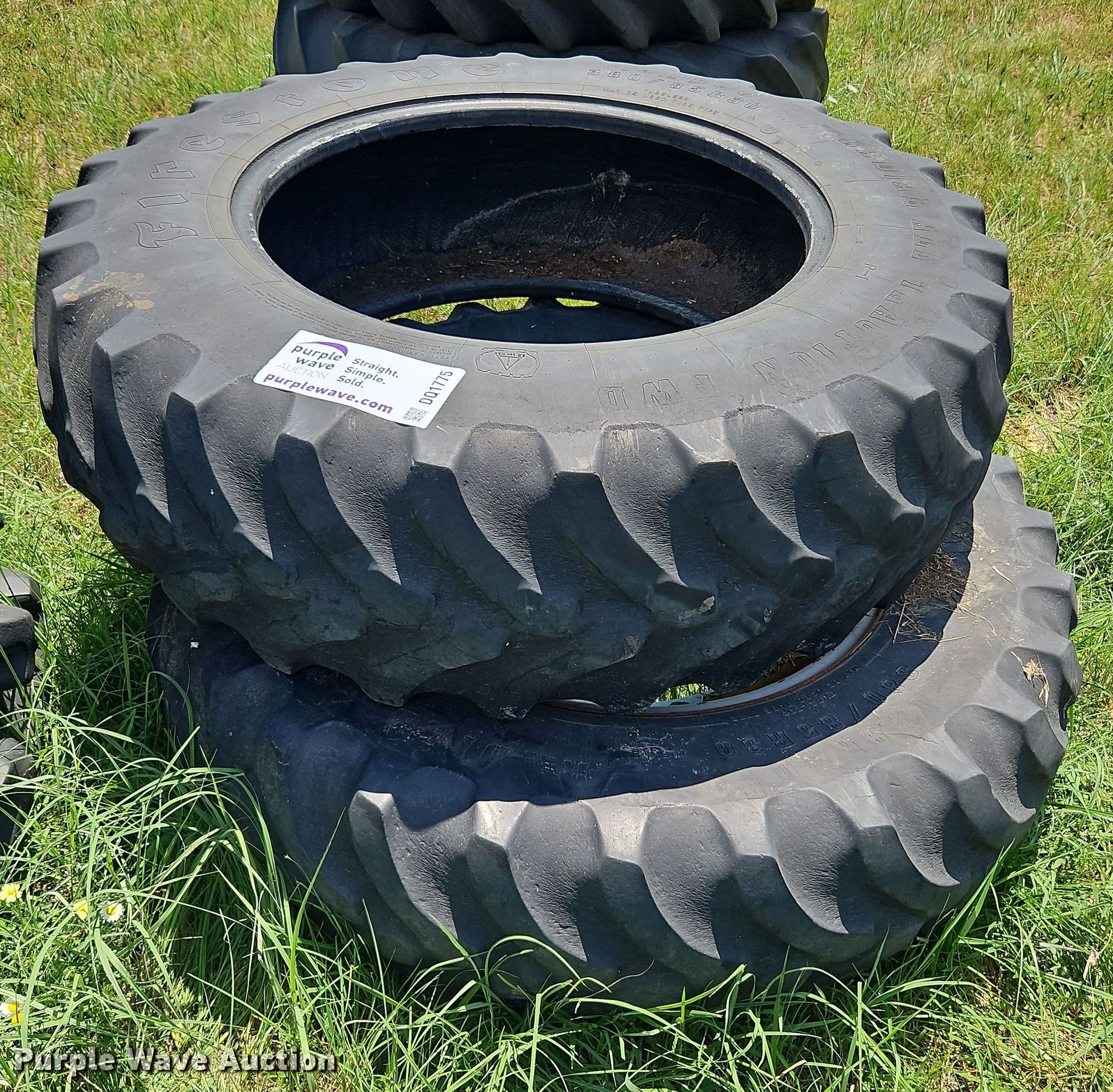 Purple Wave is selling a used Industrial Tires or Tracks in Kansas. This item is a (2) Firestone Radial All Traction FWD 14.9R30 tires with the following: Wheel