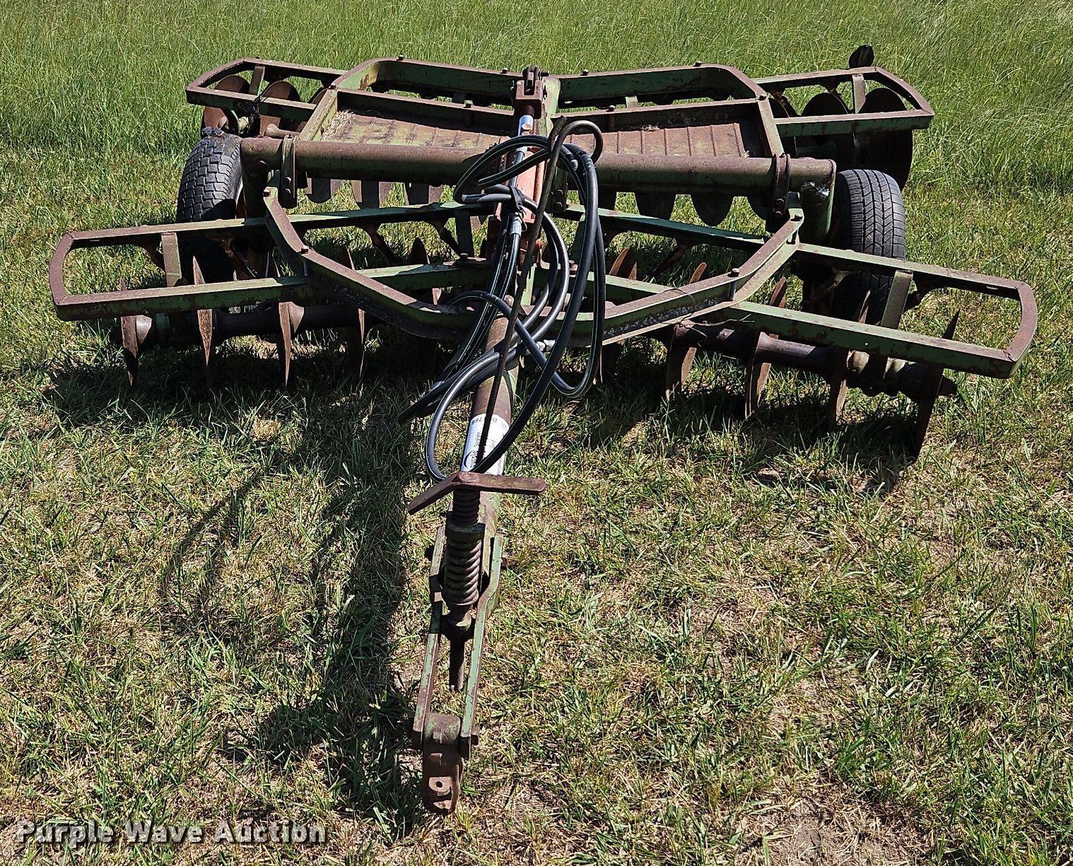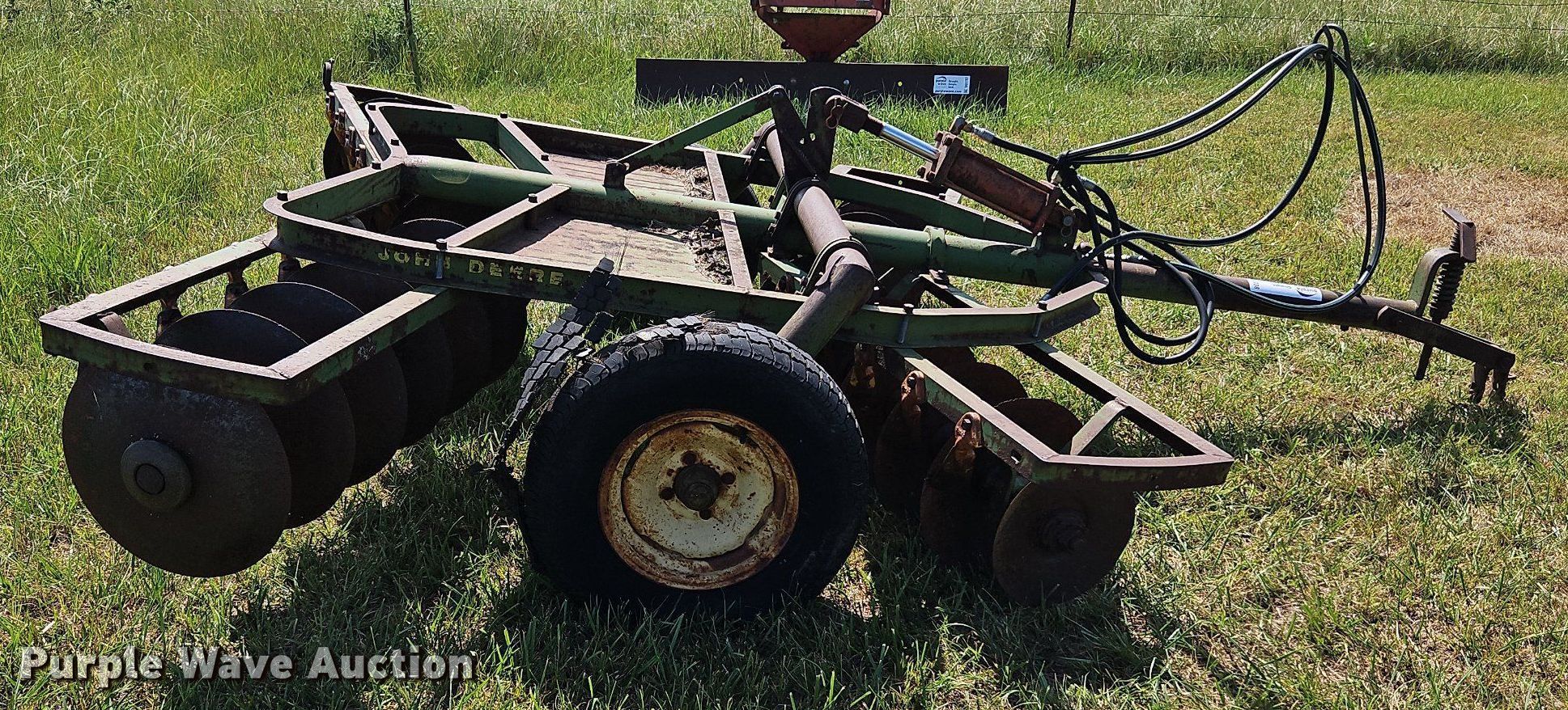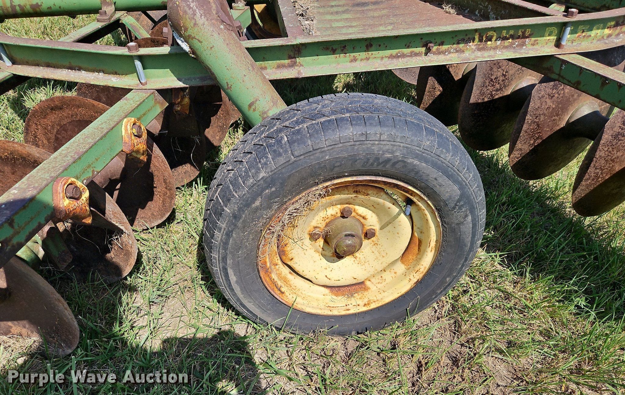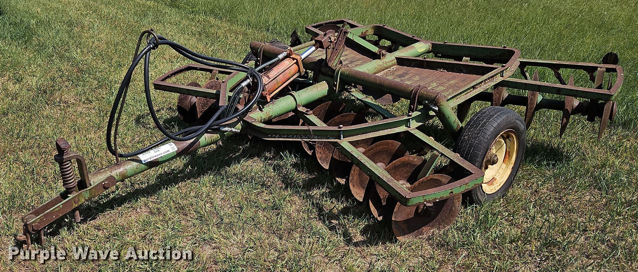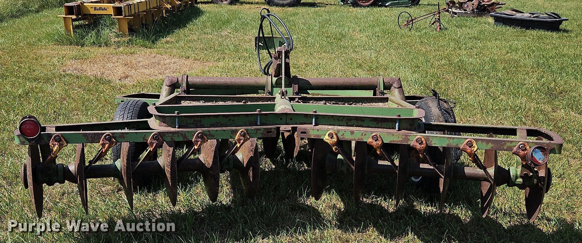Purple Wave is selling a used Disk in Kansas. This item is a John Deere tandem disk with the following: Overall width: 8' 5"