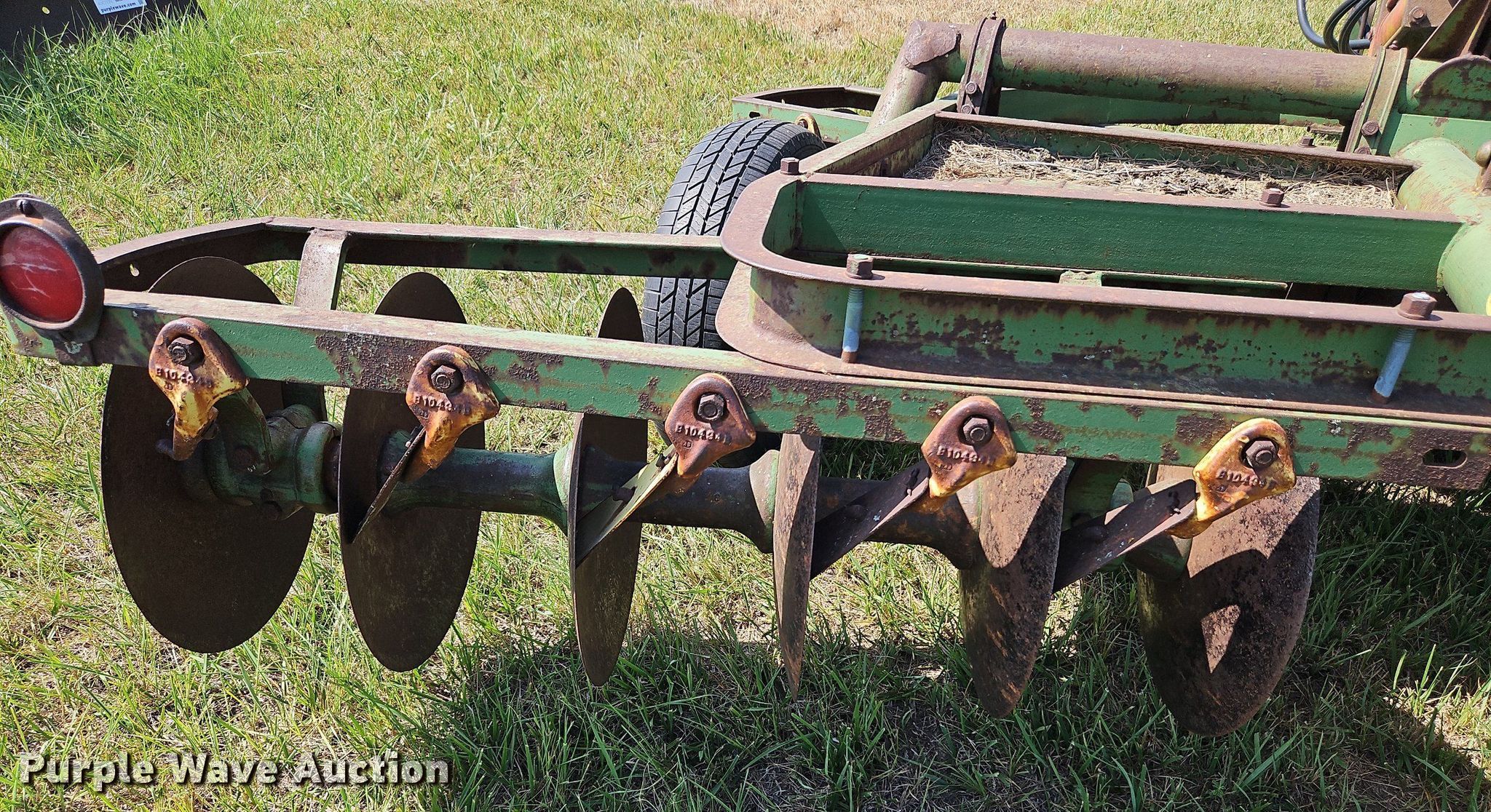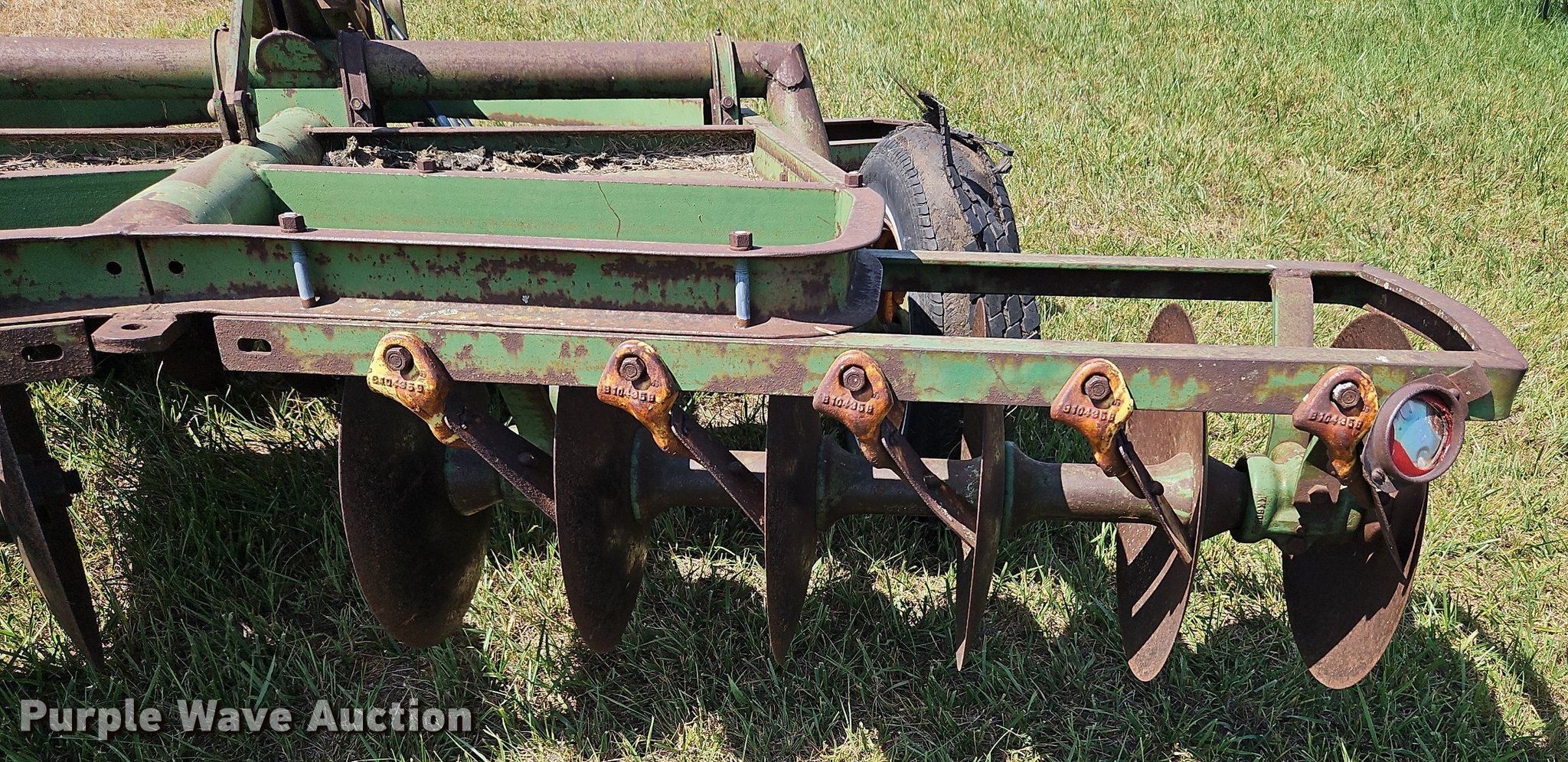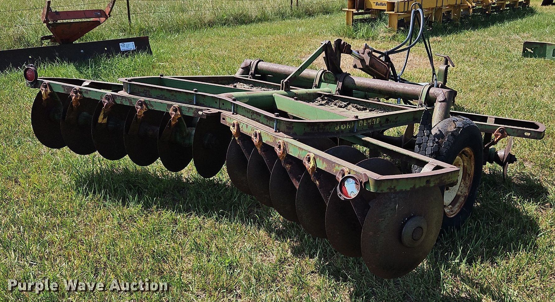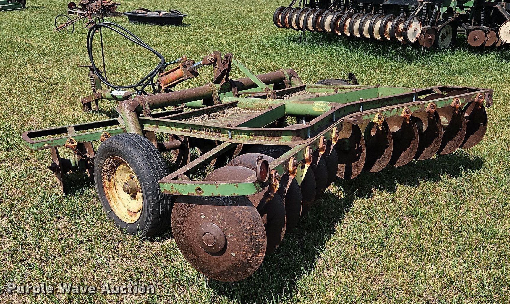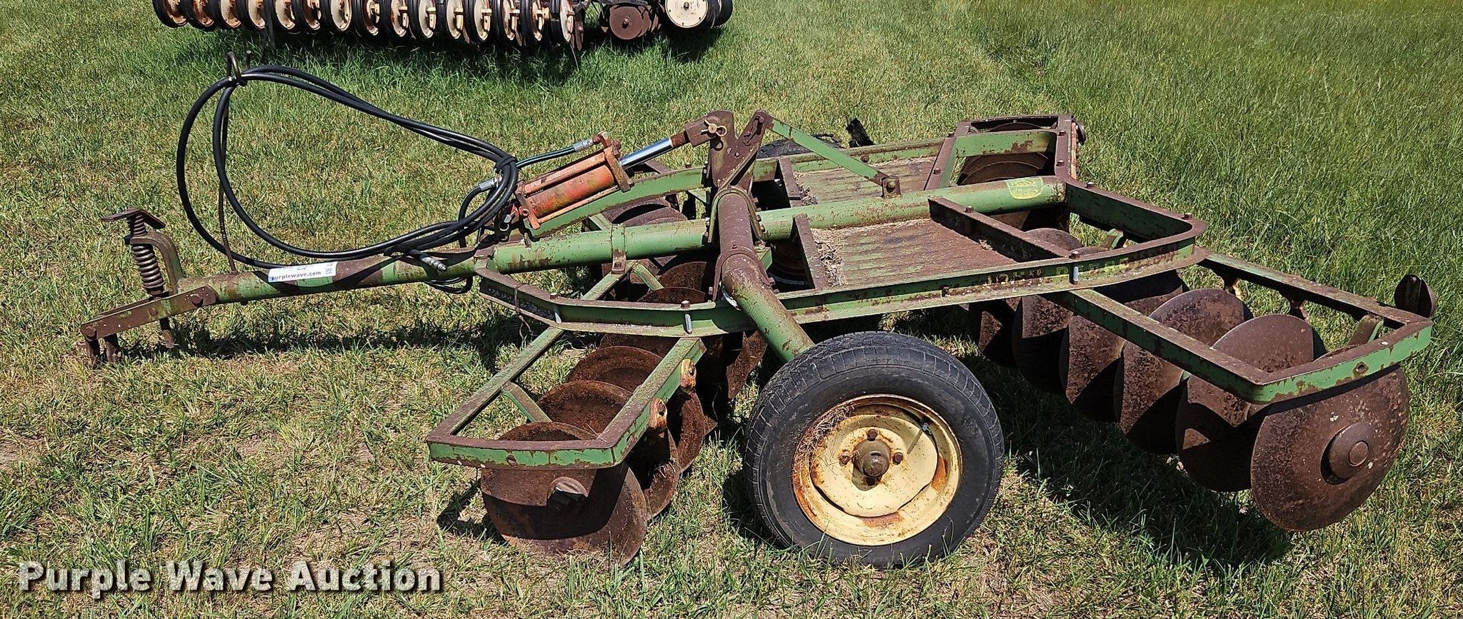 Purple Wave is selling a used Disk in Kansas. This item is a John Deere tandem disk with the following: Overall width: 8' 5"