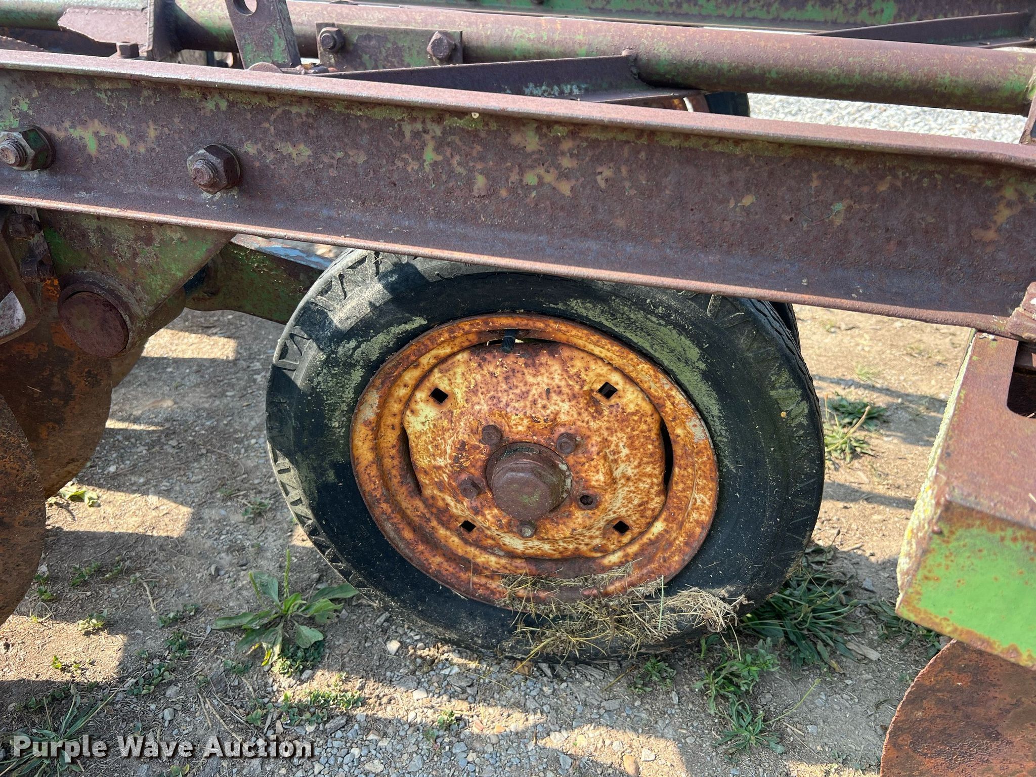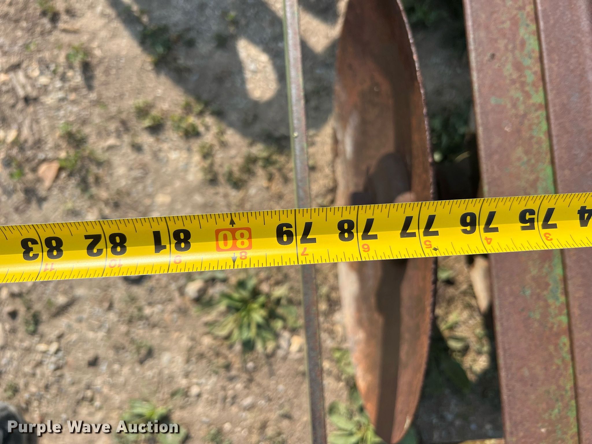John Deere 6XH-03 off-set disk. Overall width: 80", Serial: 6XH-03. Features Front blades Diameter: 20", Spacing: 9", Rear blades Diameter: 20", Spacing: 9", Disk scrapers. Tires Tire size: 4.80-12. T&R Equipment. 8267 Old Highway 54. New Bloomfield, MO 65063