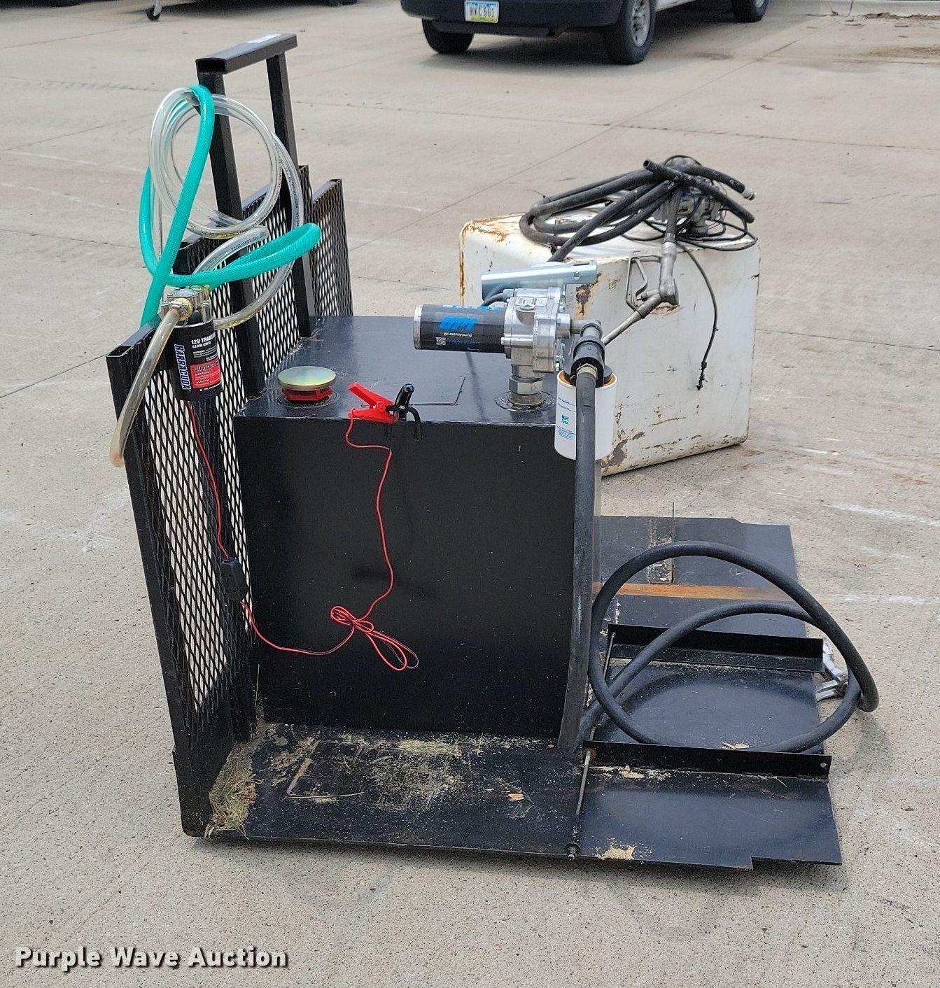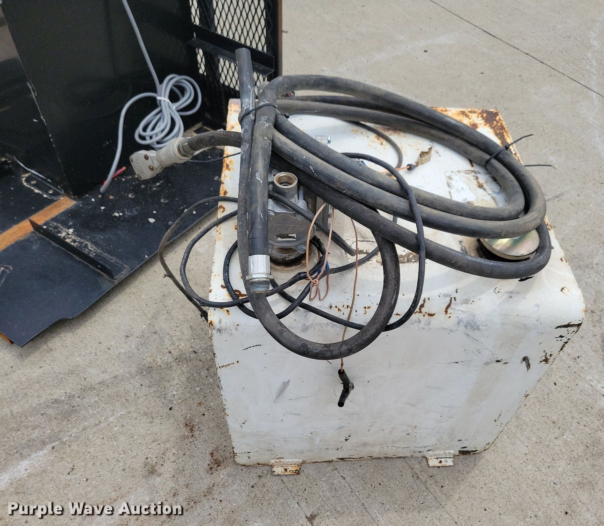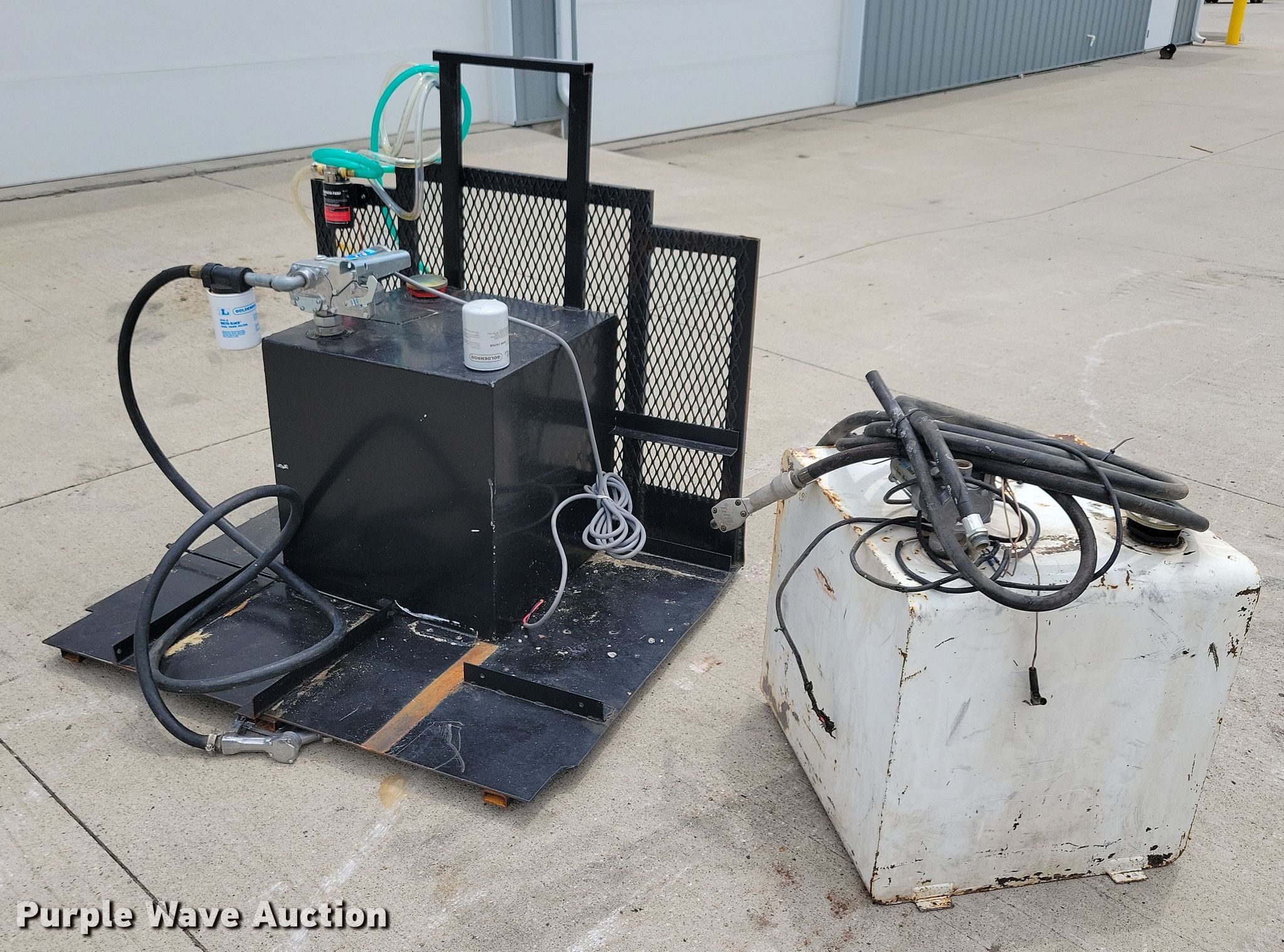 Purple Wave is selling a used Fuel and Lube in Iowa. This item is a (2) auxiliary fuel tanks with the following: Capacity: 50 gallons, GPI pump, Volts: 12, Hose, Nozzles, Additional filter