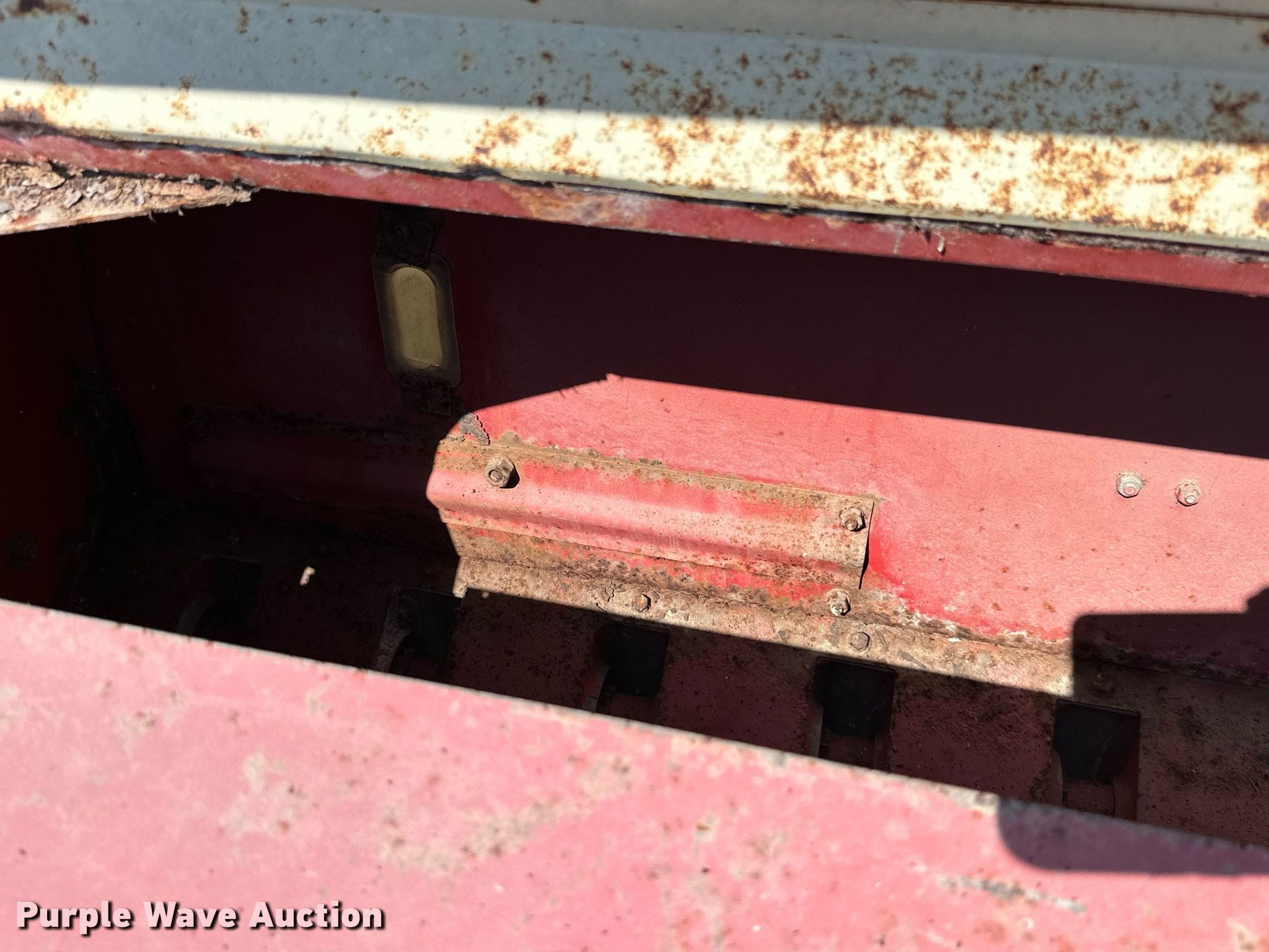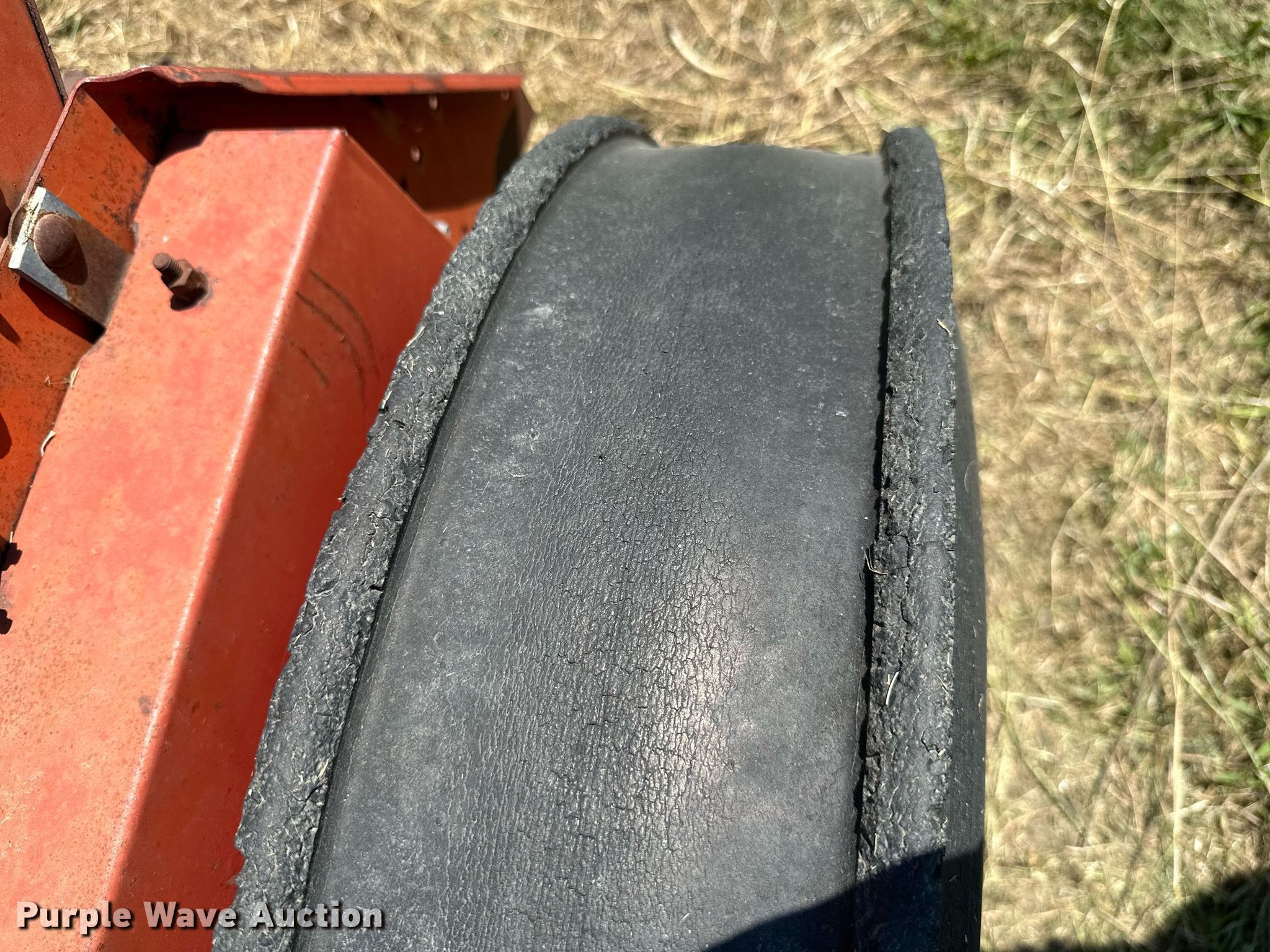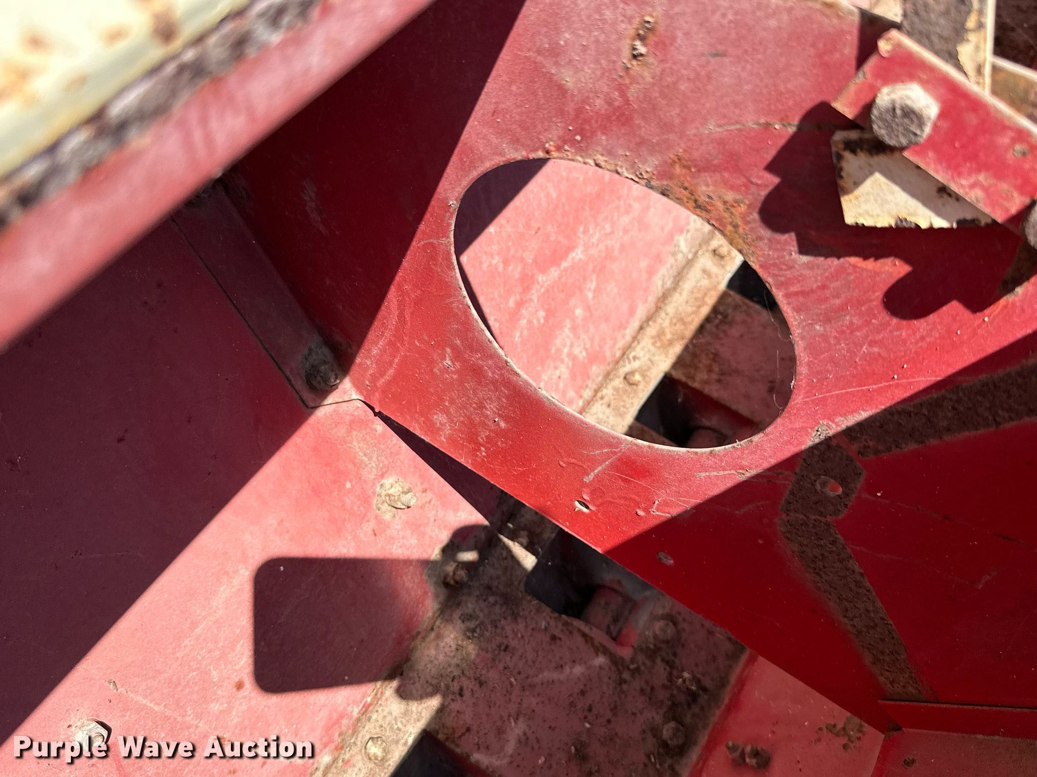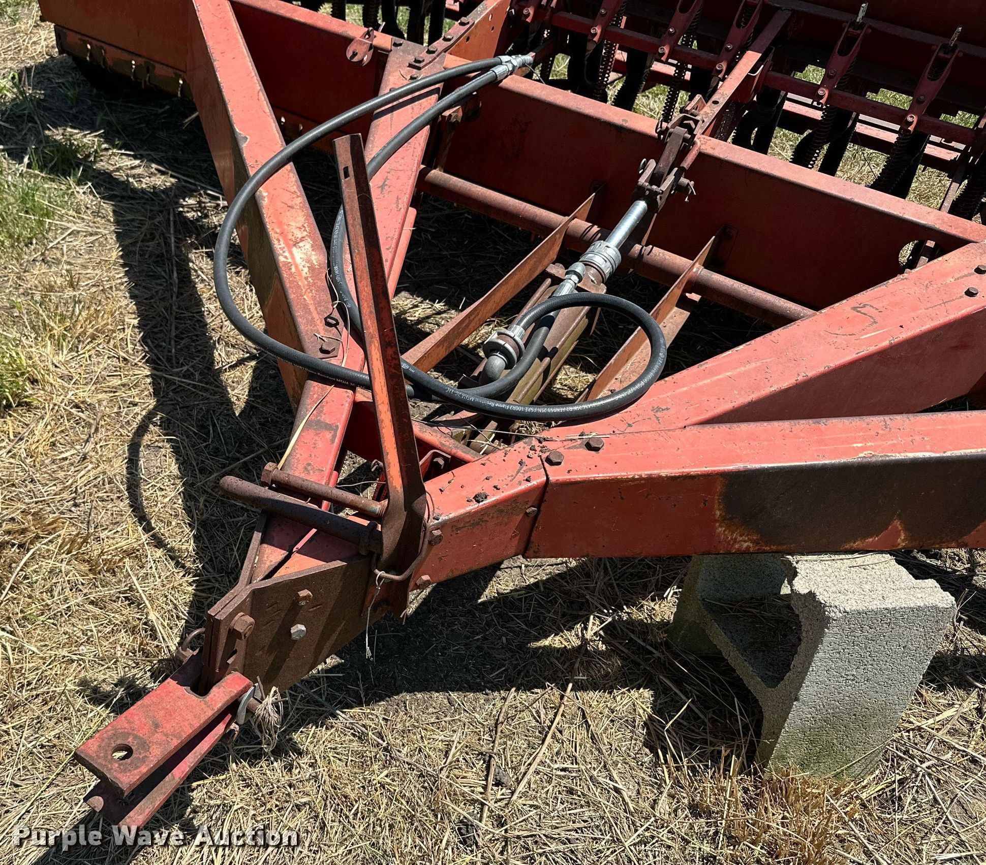International 510 grain drill. Width: 12', Row units: 21, Row spacing: 7", Serial: 510G1111. Features Seed delivery Bulk fill system, Row units Meter drive: Ground, Down pressure: Spring, Disk openers: Single. Tires Transport tire size: 7.50-20. Hughes Grain and Cattle Inc.. 8405 30th Road. Galesburg, KS 66740