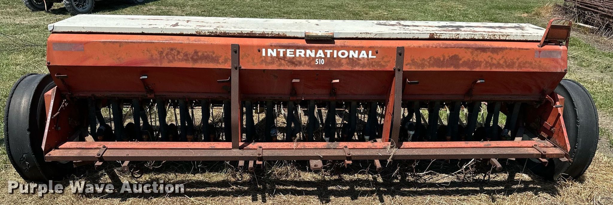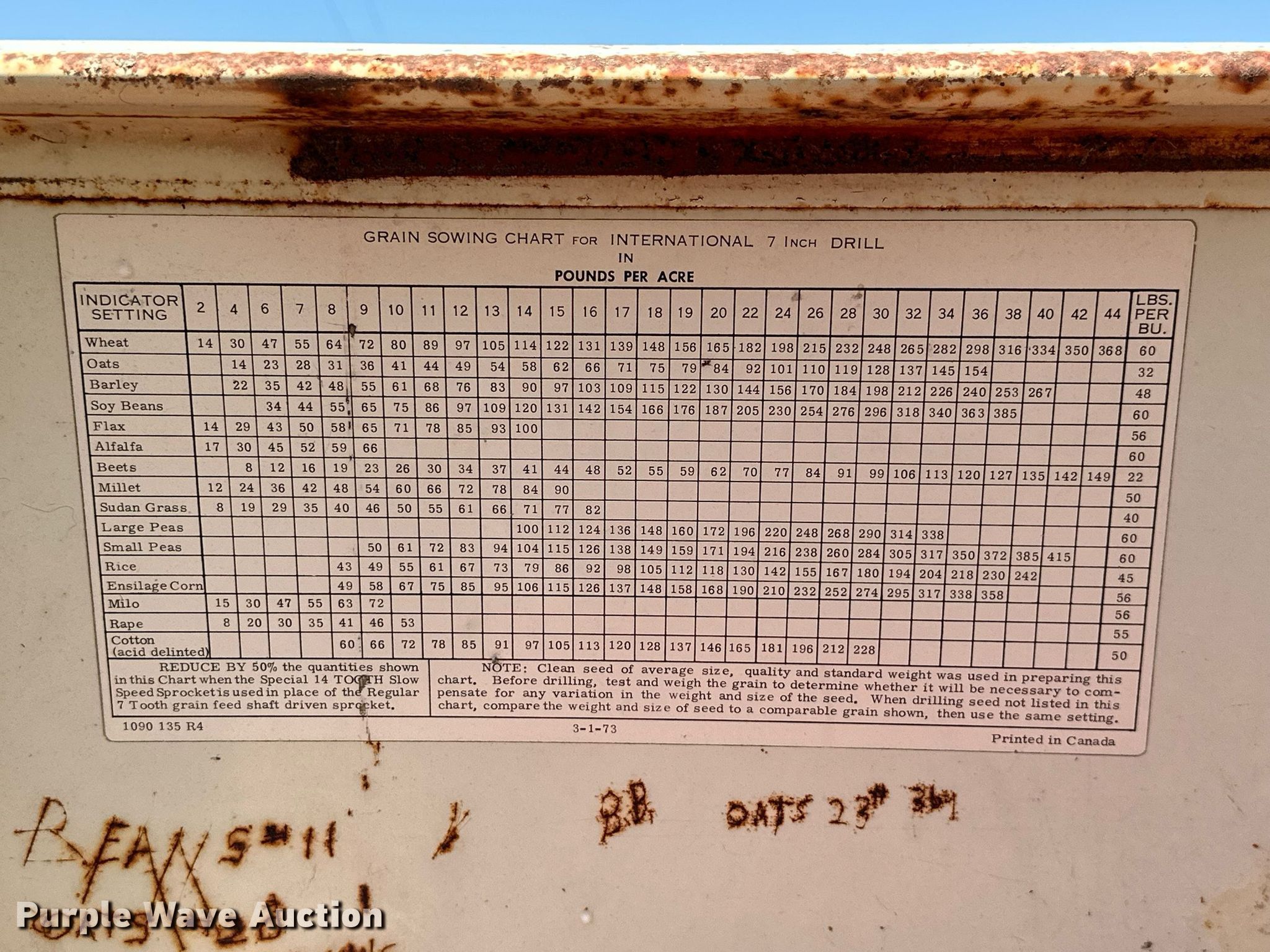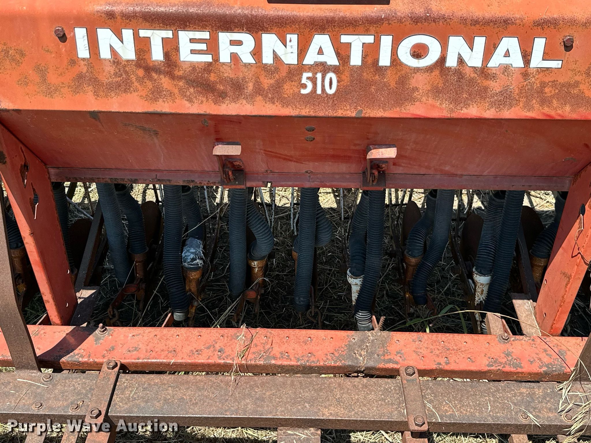 Purple Wave is selling a used Grain Drill or Seeder in Kansas. This item is a International 510 grain drill with the following: Width: 12', Row units: 21, Row spacing: 7", Serial: 510G1111